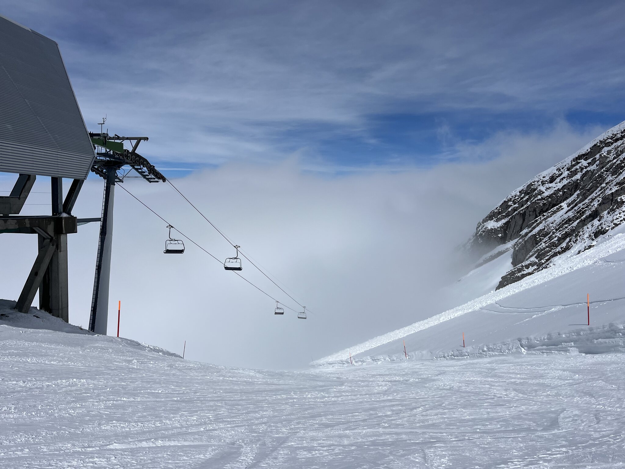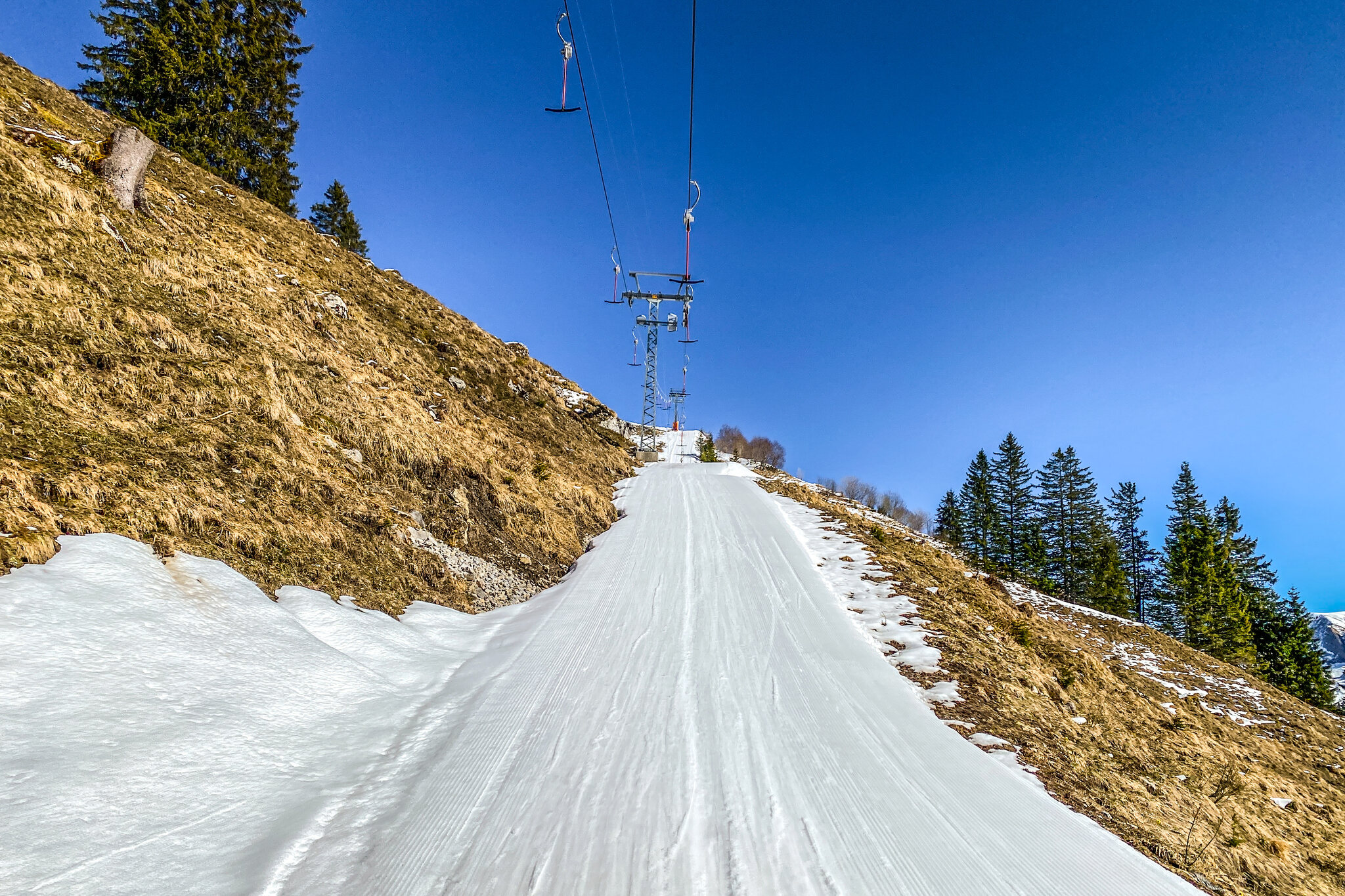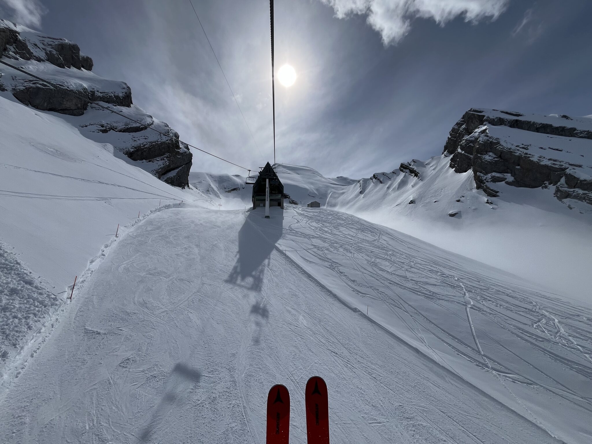 Man würde es anhand der Bilder kaum denken, aber insbesondere am Klewenstock macht es sehr viel Spass! Bin gleich 10x gefahren. Und auch die Chälen geht gut. Kurz drückte sogar die Sonne durch. Das war ein wider Erwarten guter Saisonschluss. Generell war das ein sehr guter Winter hier. Und im Gegensatz zum letzten Winter ohne Unterbruch und mit genügend Schnee bis zum Schluss. Bild vom 15.3.24: