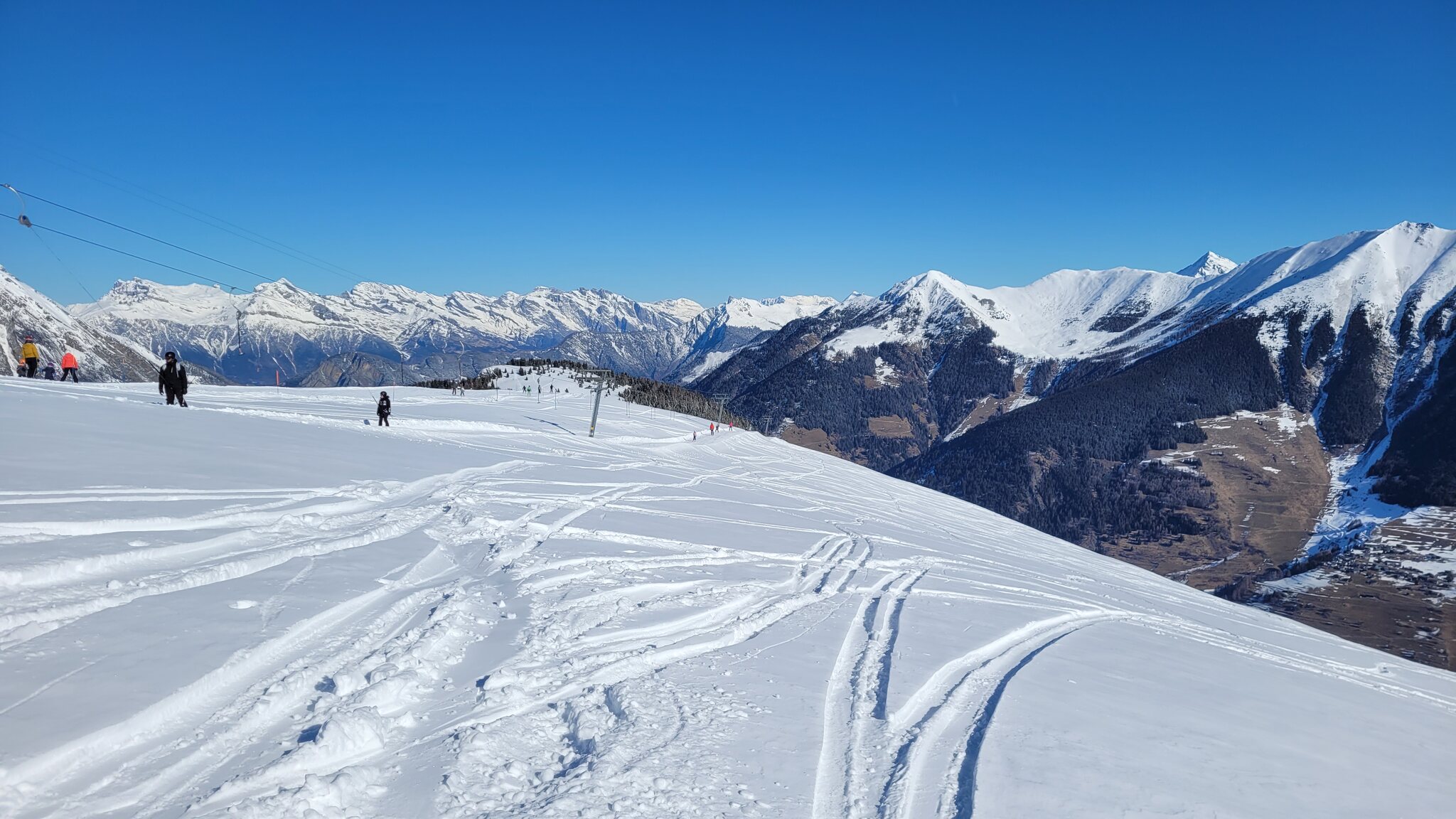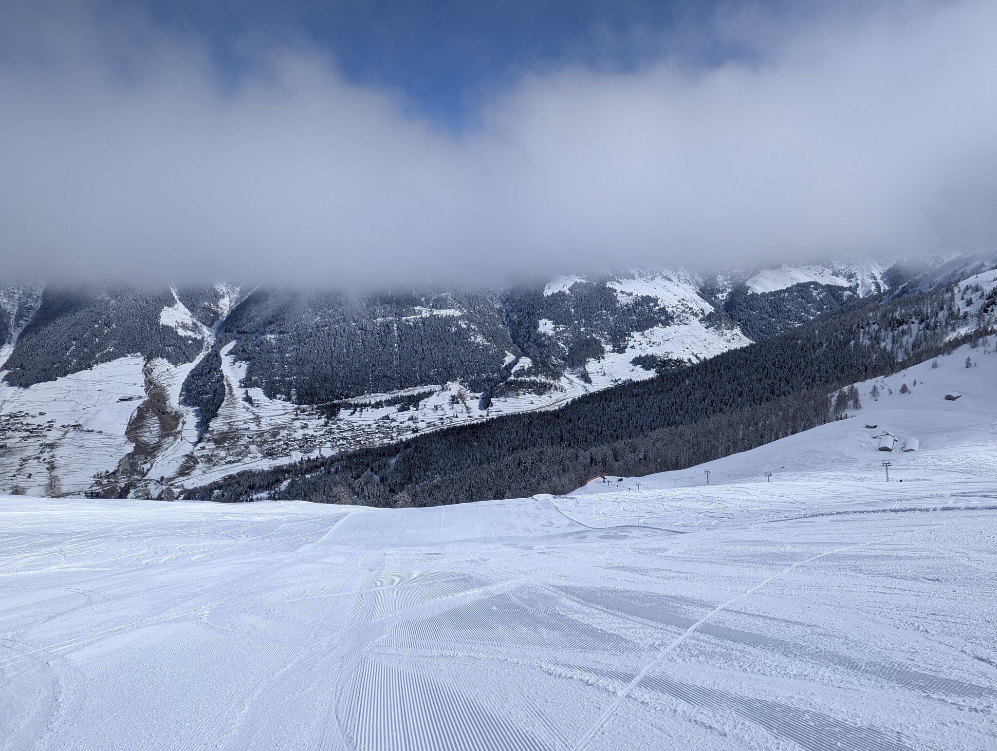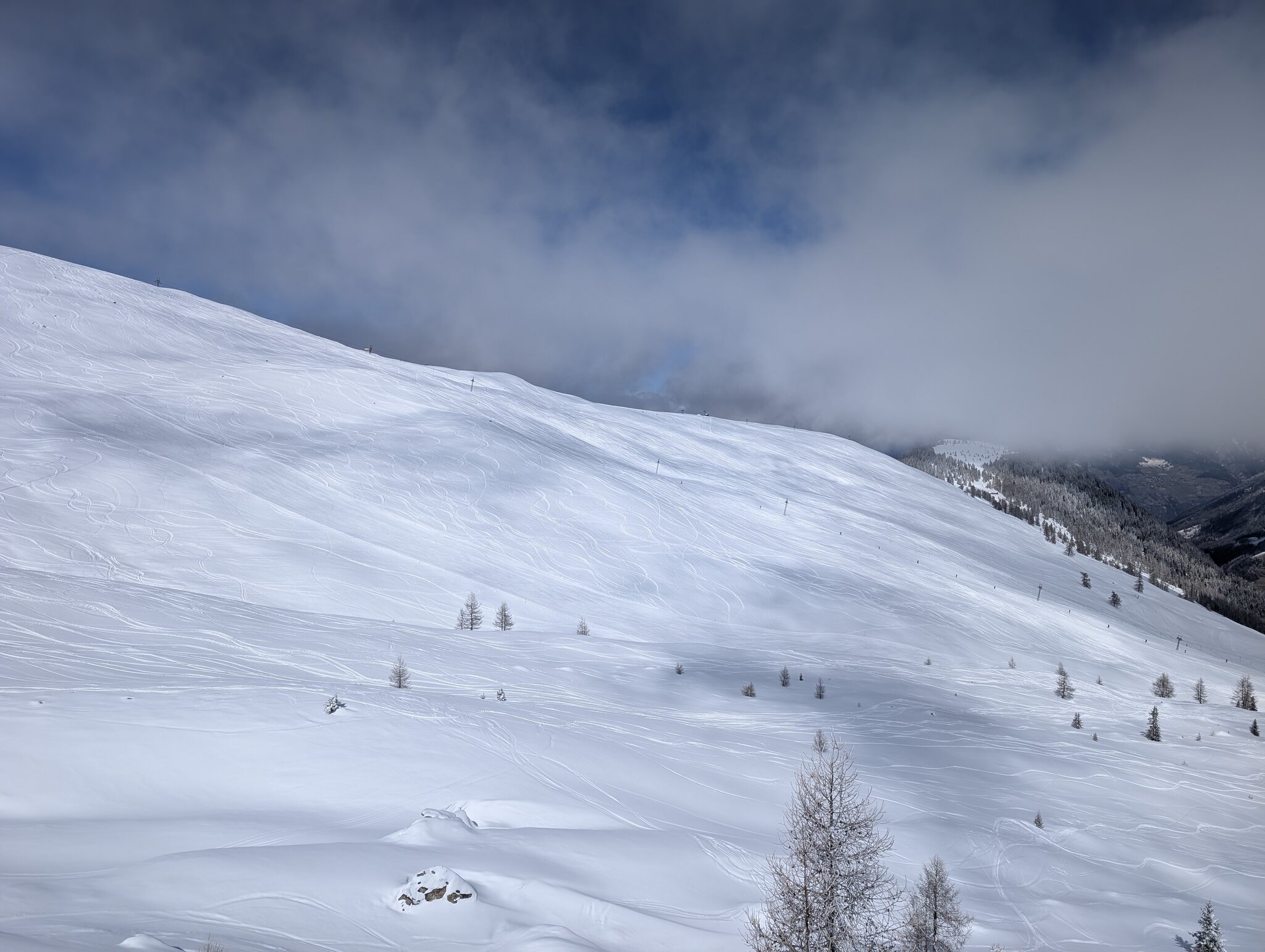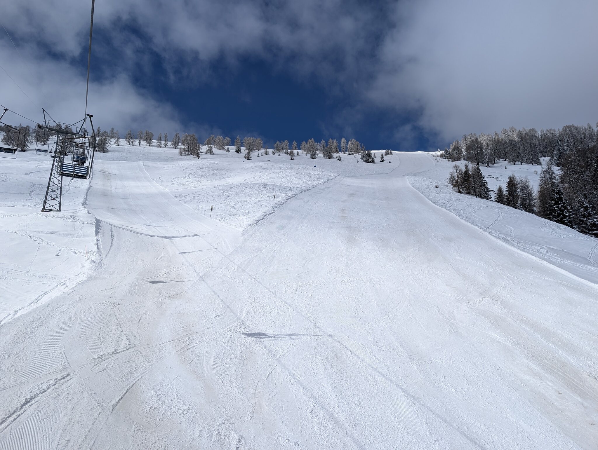 Wir sind aktuell in Liddes-Vichères. Das Gebiet ist der Hammer, Schnee und Pisten sind top. Einzig dass es bewölkt ist, ist nicht so toll. Die Sicht ist wenigstens gut, nur das zählt.