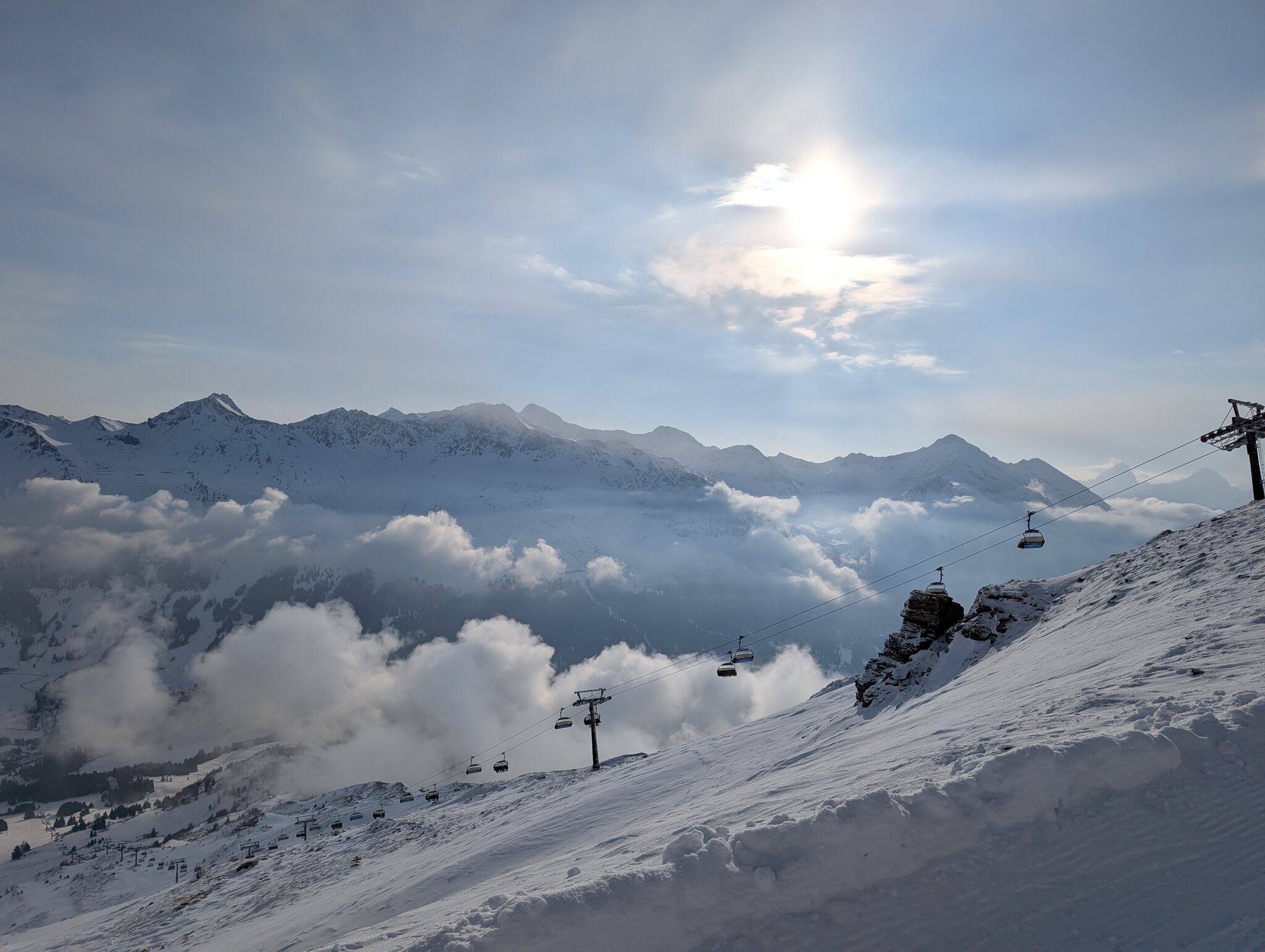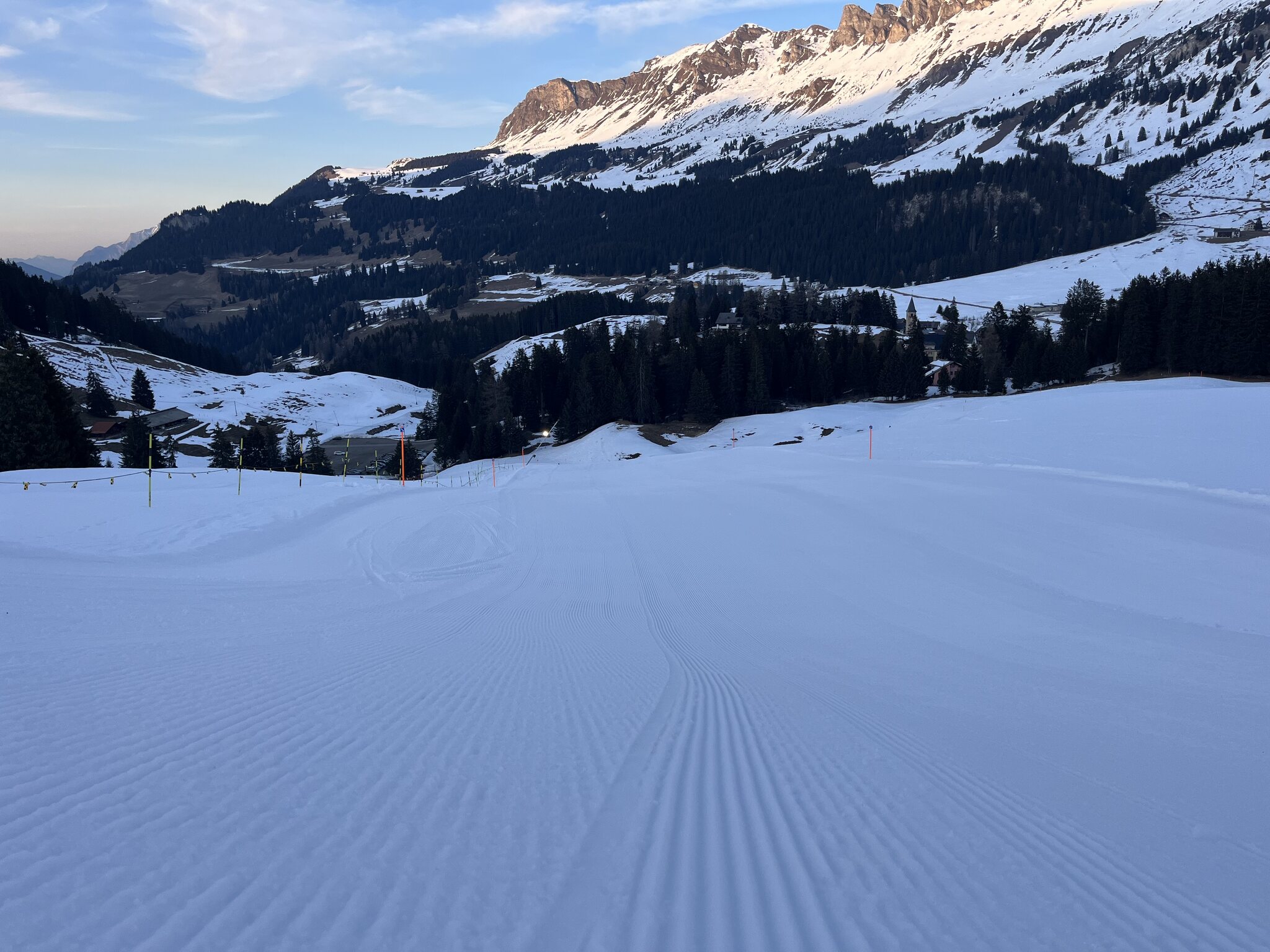 Ich war gestern ebenfalls auf der Lenzerheide. Einstieg um 8:30 Uhr in Churwalden, Schluss um 15:15 Uhr mit knapp 12'000 Höhenmeter wieder am gleichen Ort. Die Pisten auf der Westseite waren ziemlich gut, auf der Ostseite war ohne frisch geschliffene Kanten wenig zu holen. Andrang war insgesamt überraschenderweise überschaubar. Allerdings teilweise etwas ungleichmässig verteilt, je nach Lage der Wolken. Eine grössere Wartezeit (ca. 5-10min) gab es einzig um 10 Uhr am Pedra Grossa. Fotos kann ich angesichst kalter Hände nur ein einziges liefern: