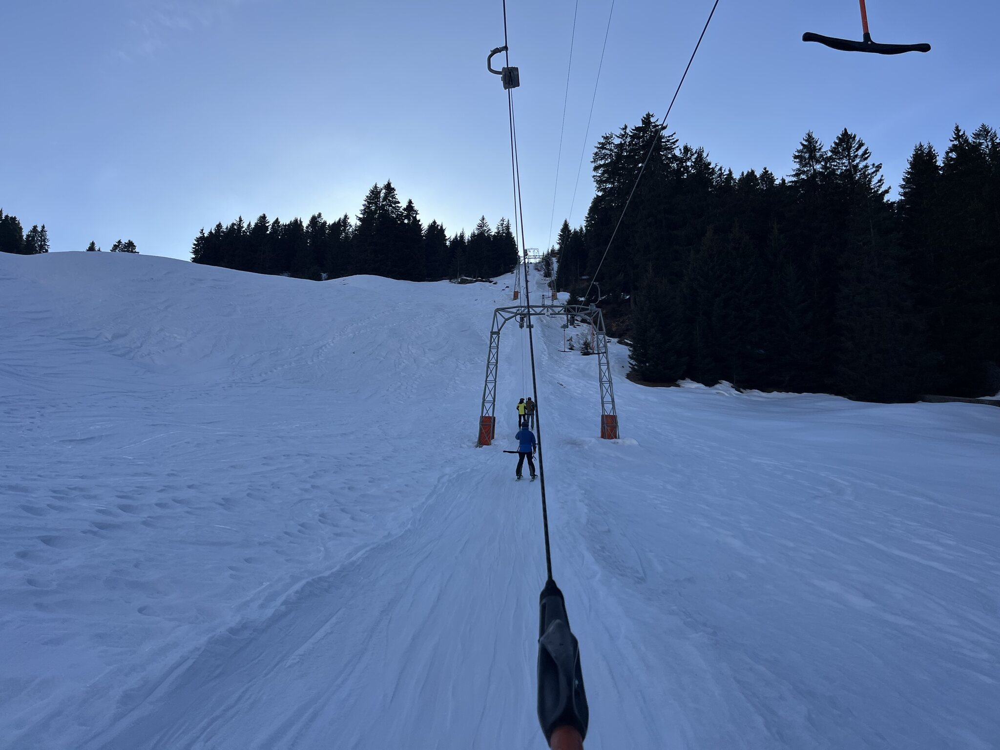 Heute kein Livebericht aus der Lenzerheide, war mir zu kalt. Auf der Westseite waren die Pisten heute deutlich eisiger als gestern. Und ob des schönen Wetters kommen alle auf die Westseite. Wir sind auf die Ostseite geflüchtet. Am Heimberg sind die meisten Sessel leer.