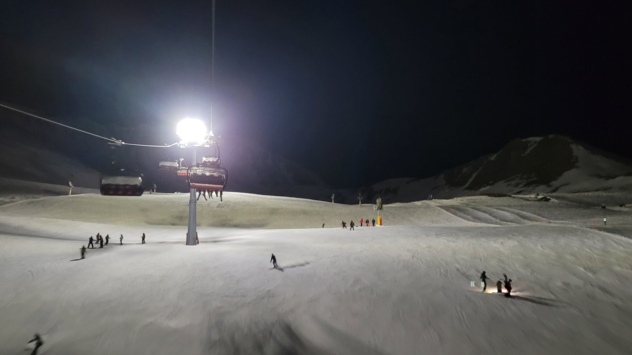 Die Stätzertäli-Piste ist supergut, erstaunlich pulvrig. Zu Beginn, bei Resttageslicht, ist allerdings die Sicht nicht so gut. Das bessert aber bei jeder Fahrt. Störend sind aber die erneut vielen Leute. Die Wartezeit am Lift ist nicht das Problem, aber der Füllegrad auf der Piste. Deshalb mach ich nach 10 KSB-Fahrten um 19.45 Uhr schon Schluss.