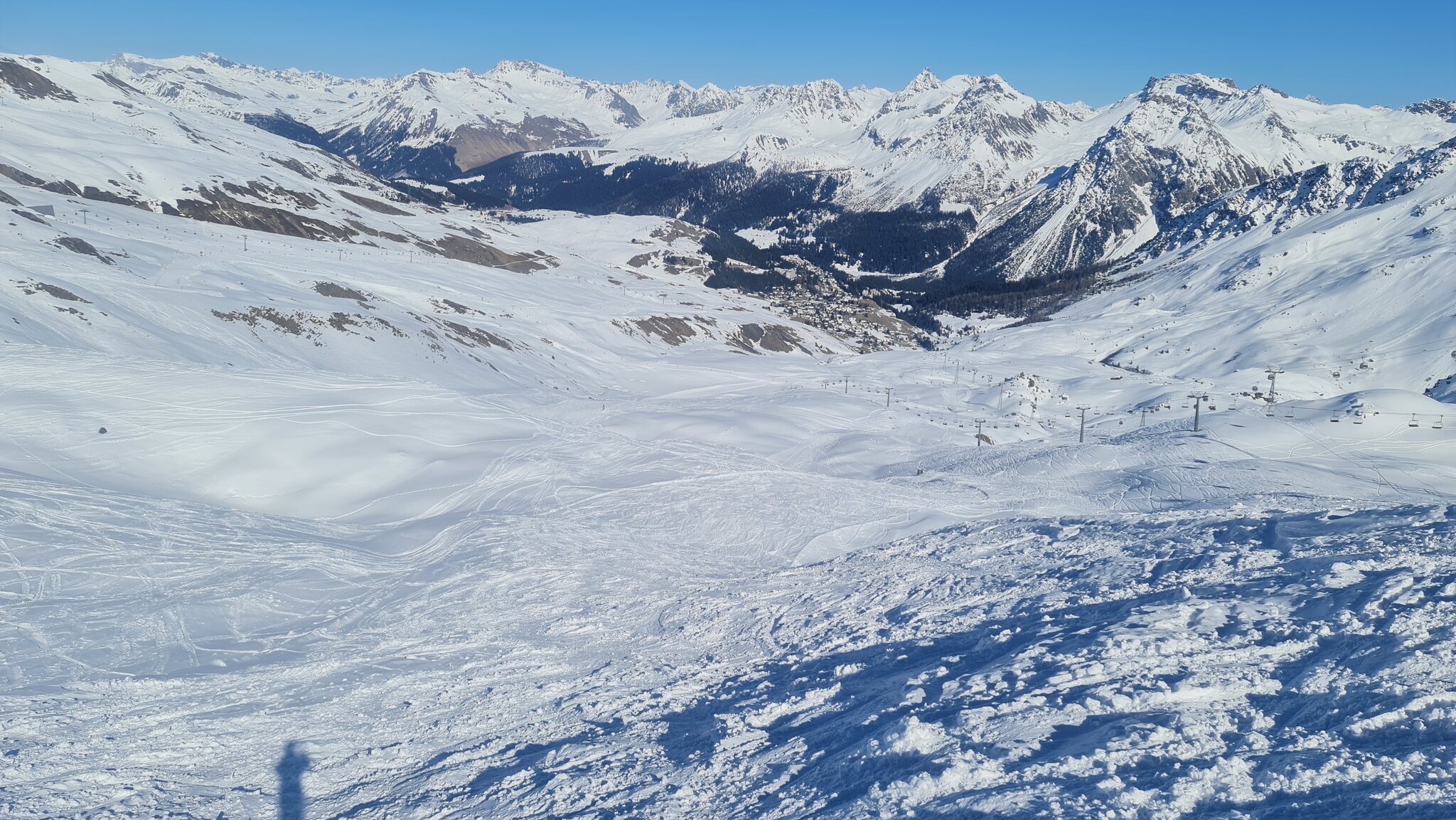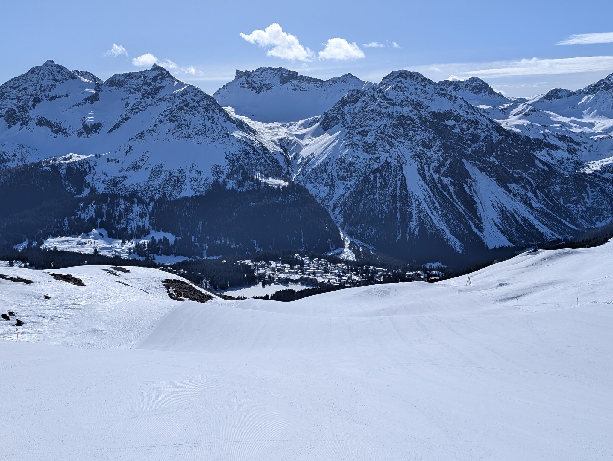 Kurzes Fazit vom Wochenende: beide Tage waren sehr schön, die Pisten heute auf der Ostseite von oben bis unten top, eine glatte 10. Und kein einziger technischer Ausfall oder längerer Stillstand. Wenn ich aber sehe wie wenig Schnee es auf der Westseite und in Arosa hat bin ich mal gespannt wieviele Pisten sie noch offen halten können bei den angesagten warmen Temperaturen.