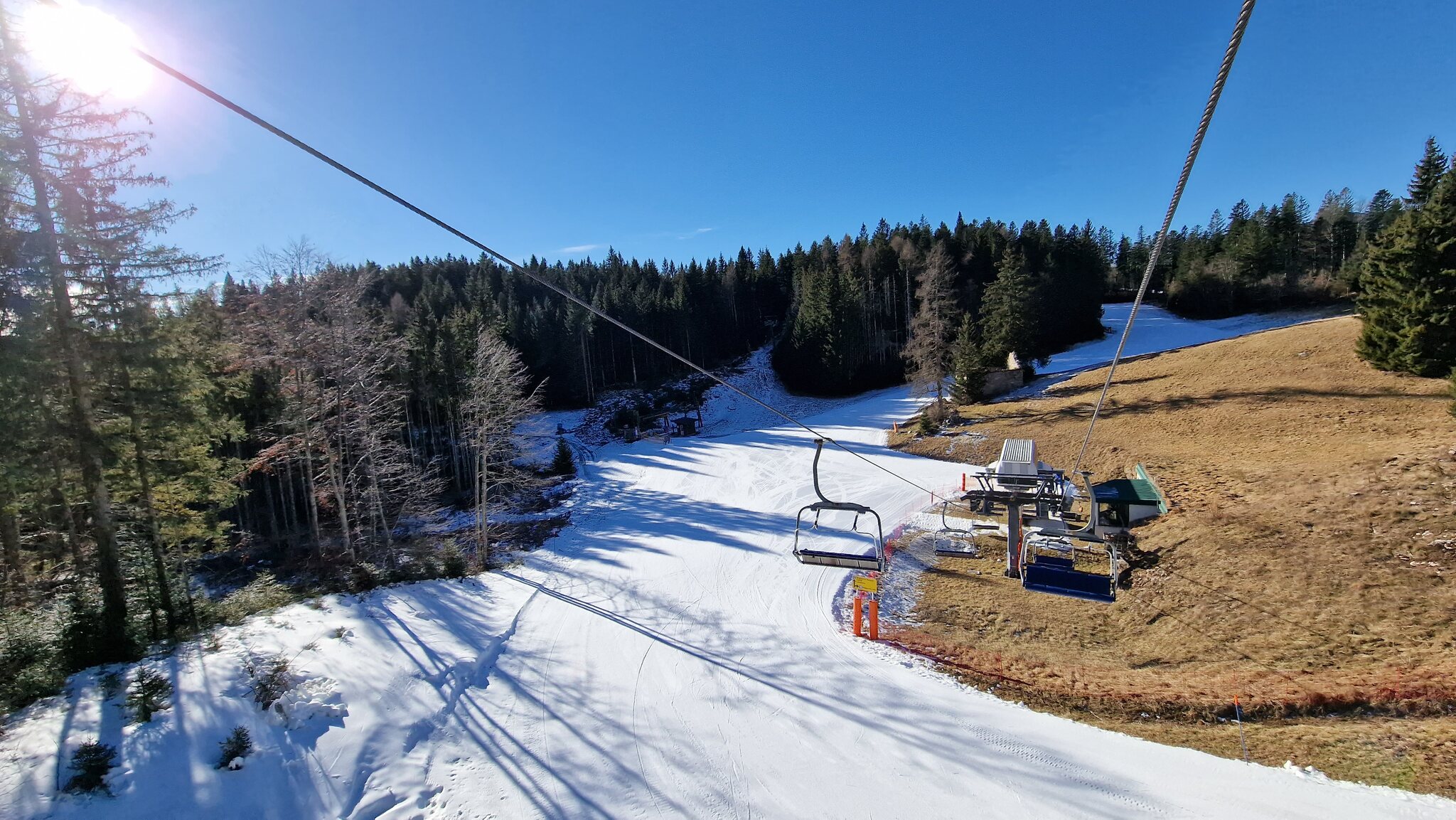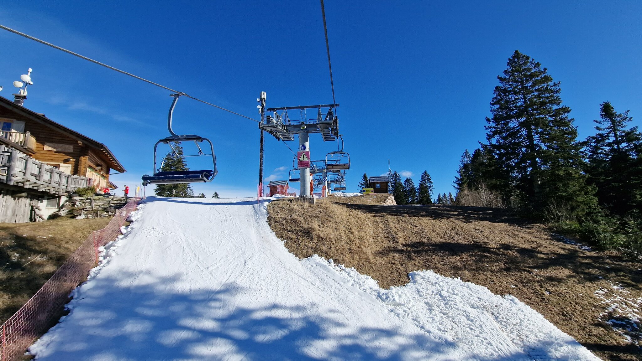 Die ersten Blicke auf die Pisten bestätigten die leisen Befürchtungen. Schnee gab es nur dort, wo er technisch aufgetragen worden war. Der Rest der Landschaft zeigte sich in herbstlichen Brauntönen. Man hätte fast meinen können, die Pisten und Lifte seien auf einer Landkarte verschoben worden – mitten in eine Region, die scheinbar vergessen hatte, dass es Winter werden sollte. Dennoch war der Wille, das Beste aus der Situation zu machen, deutlich spürbar. Laut Liftstatus herrschte tatsächlich Vollbetrieb, auch wenn die Realität unter den Anlagen und neben den Abfahrten ein anderes Bild zeigte.