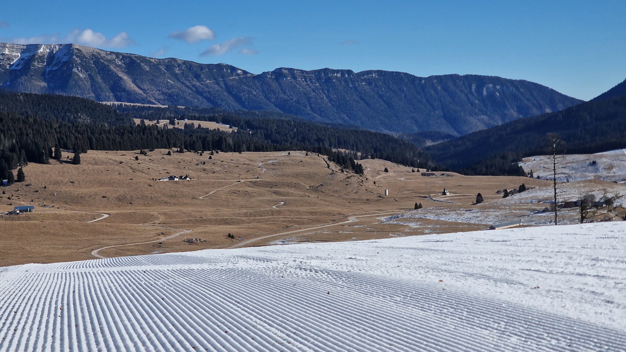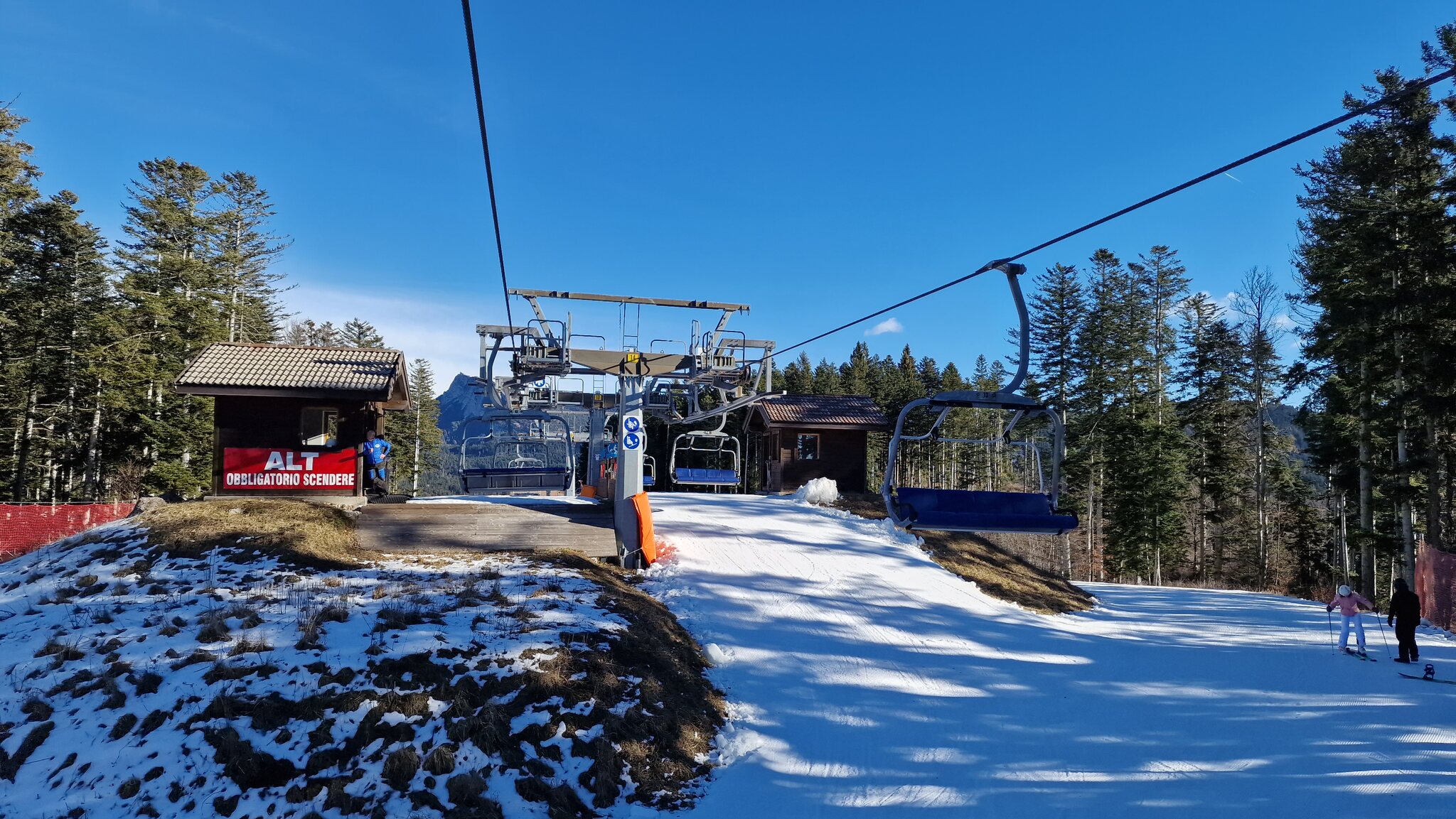 Dass sich ein ungeplanter Skitag in Lavarone ergab, war der launischen Natur zu verdanken. Der Wind legte die Anlagen in Lagorai lahm, und so wurde Lavarone zur spontanen Alternative. Schon bei der Anfahrt wollte keine rechte Vorfreude aufkommen. Die Sonne brannte unbarmherzig durch die Frontscheibe, während draussen ein laues Lüftchen wehte. Die Sitzheizung blieb aus, und der Parkplatz vor dem Lift lag trocken und verlassen da. Alles wirkte eher wie ein milder Oktobertag als wie der Beginn eines Skitags.