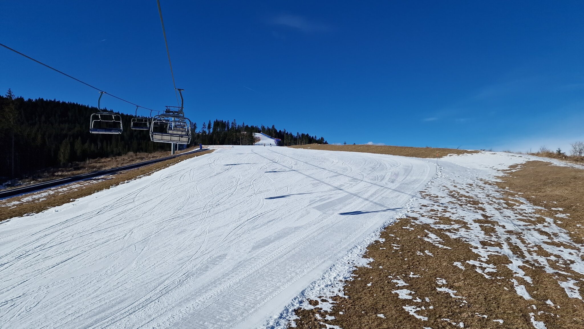 Das Gebiet präsentierte sich in diesem Zustand eher bescheiden. Es erinnerte an ein kleines Pendant zu Winterberg mit kurzen Hügeln, einigen Ziehwegen und wenigen Pistenstreifen, die die Lifte miteinander verbanden. Die Betreiber hatten alles darangesetzt, möglichst viele Anlagen in Betrieb zu nehmen, doch für die anspruchsvolleren Abfahrten reichten die Ressourcen nicht aus. Die dünne Schneedecke erlaubte nur ein minimales Angebot.