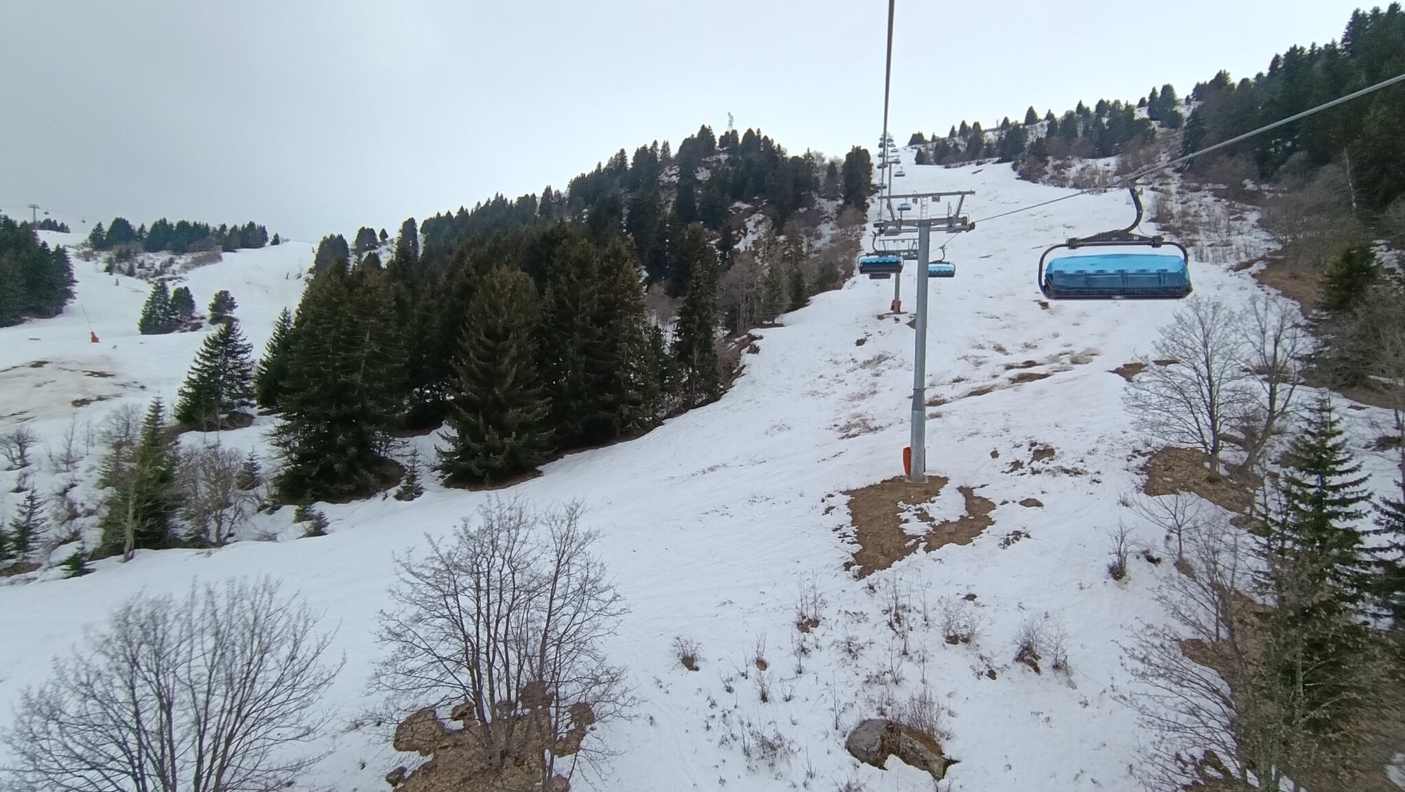 Sehr wenig Schnee.. Um nach Doucy zurück zu kommen, werden wir den Sessellift brauchen.