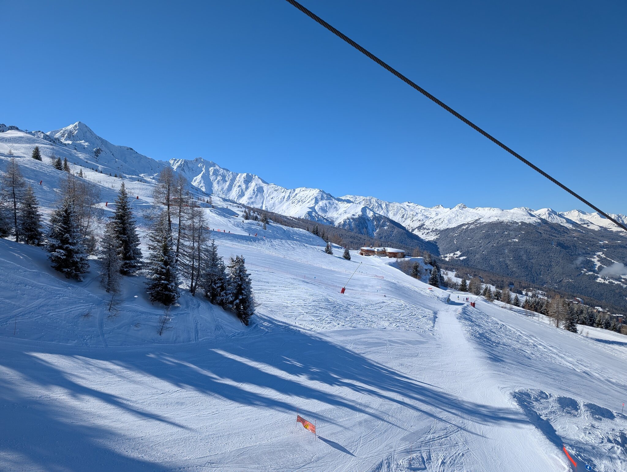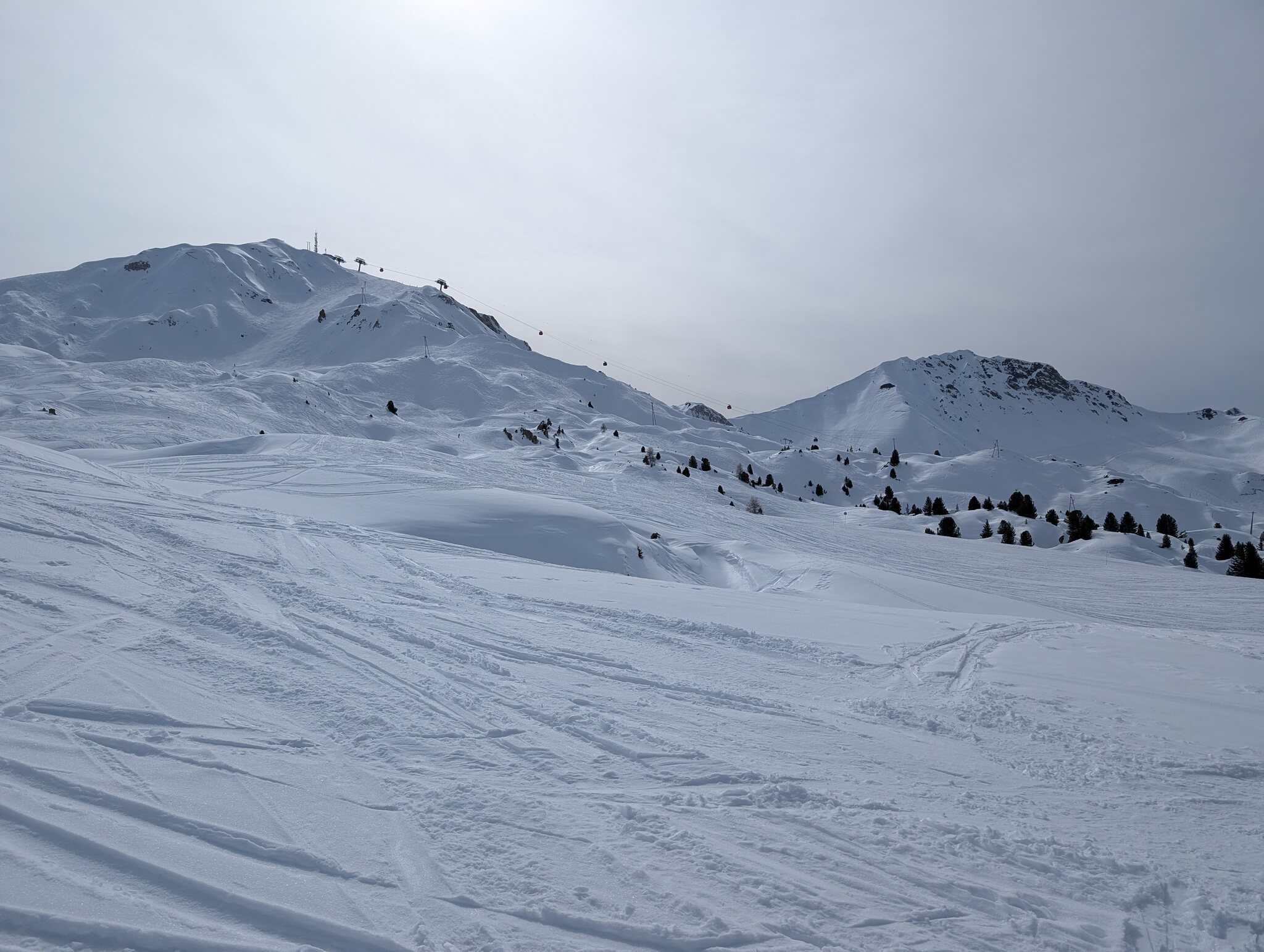 Zurück nach Vallandry und Arc 1800, wo es deutlich weniger Leute hat. Einige tolle Abfahrten hier.
