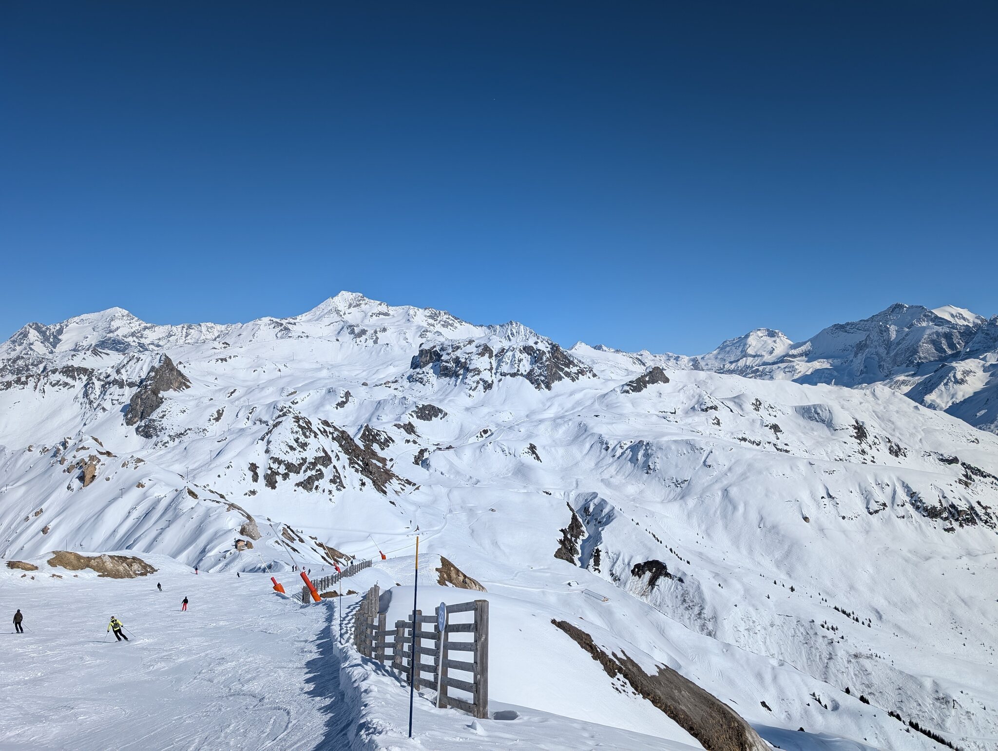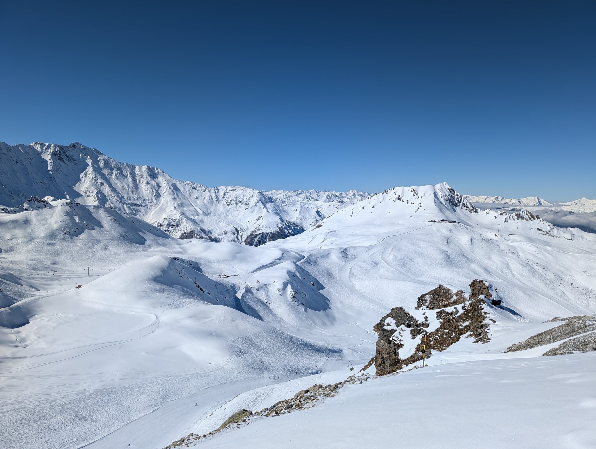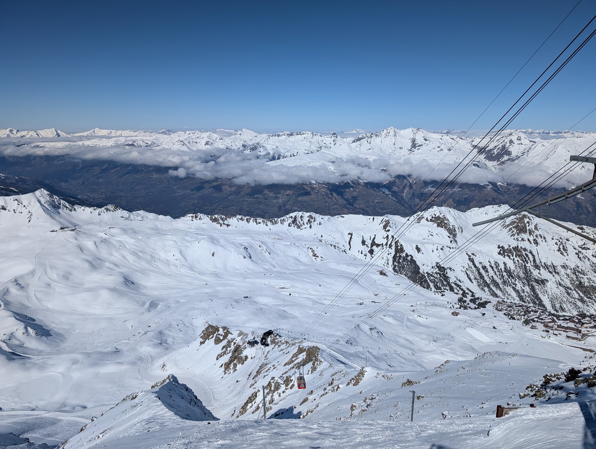 Heute sind wir vor unserem Transfer nach Val d‘Isère nochmals die ganze Breite des Gebiets abgefahren. Und noch von gestern, wo sich bis Mittag eine hartnäckige Nebeldecke hielt: Und das war’s dann für dieses Gebiet. Toller Tag, versöhnlicher Abschluss. Au revoir.