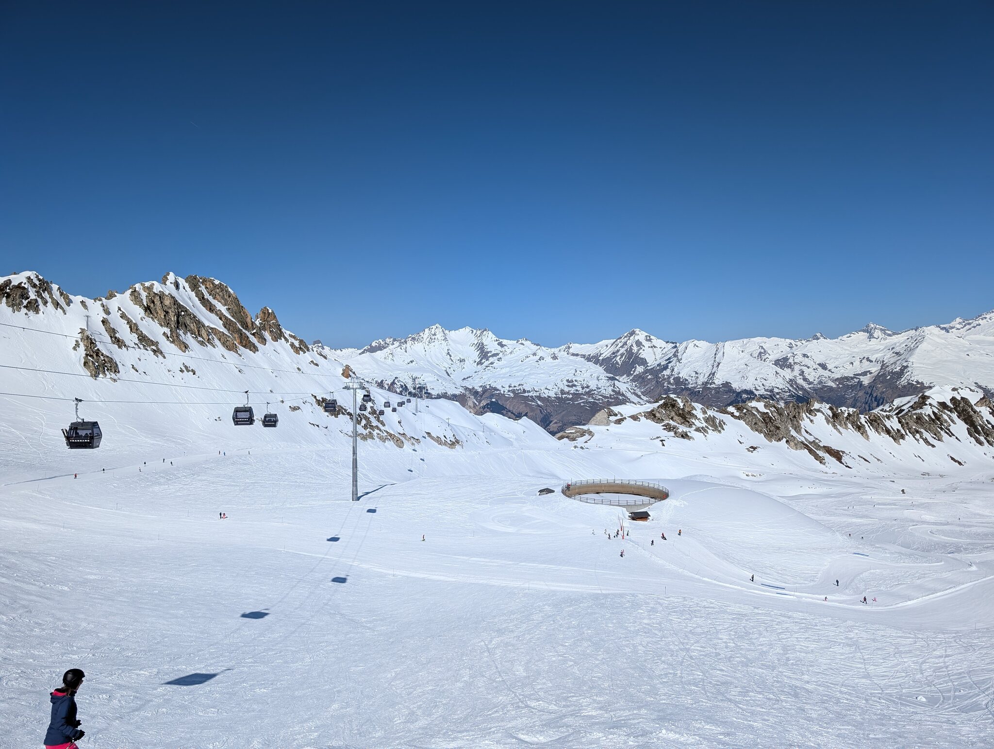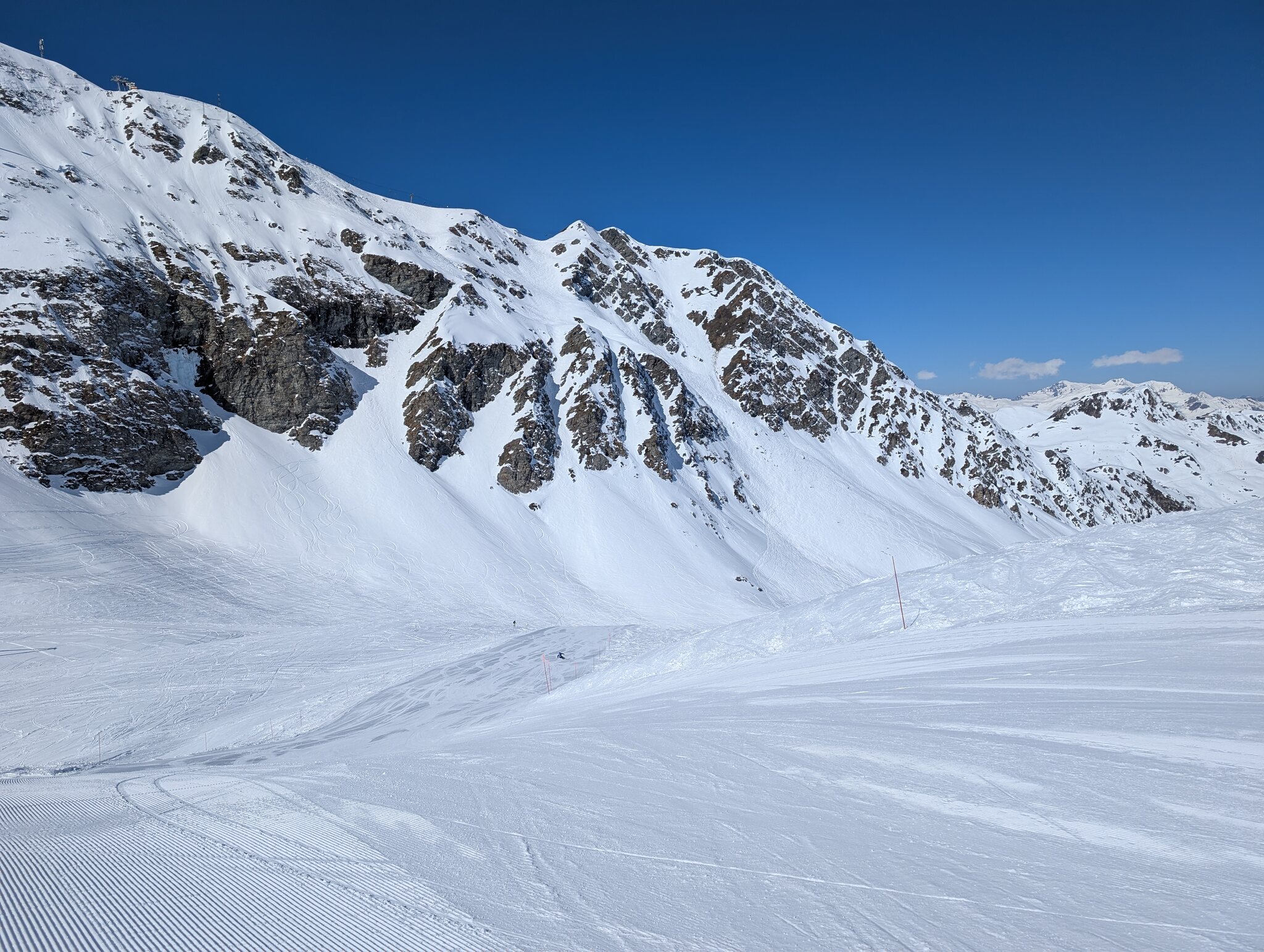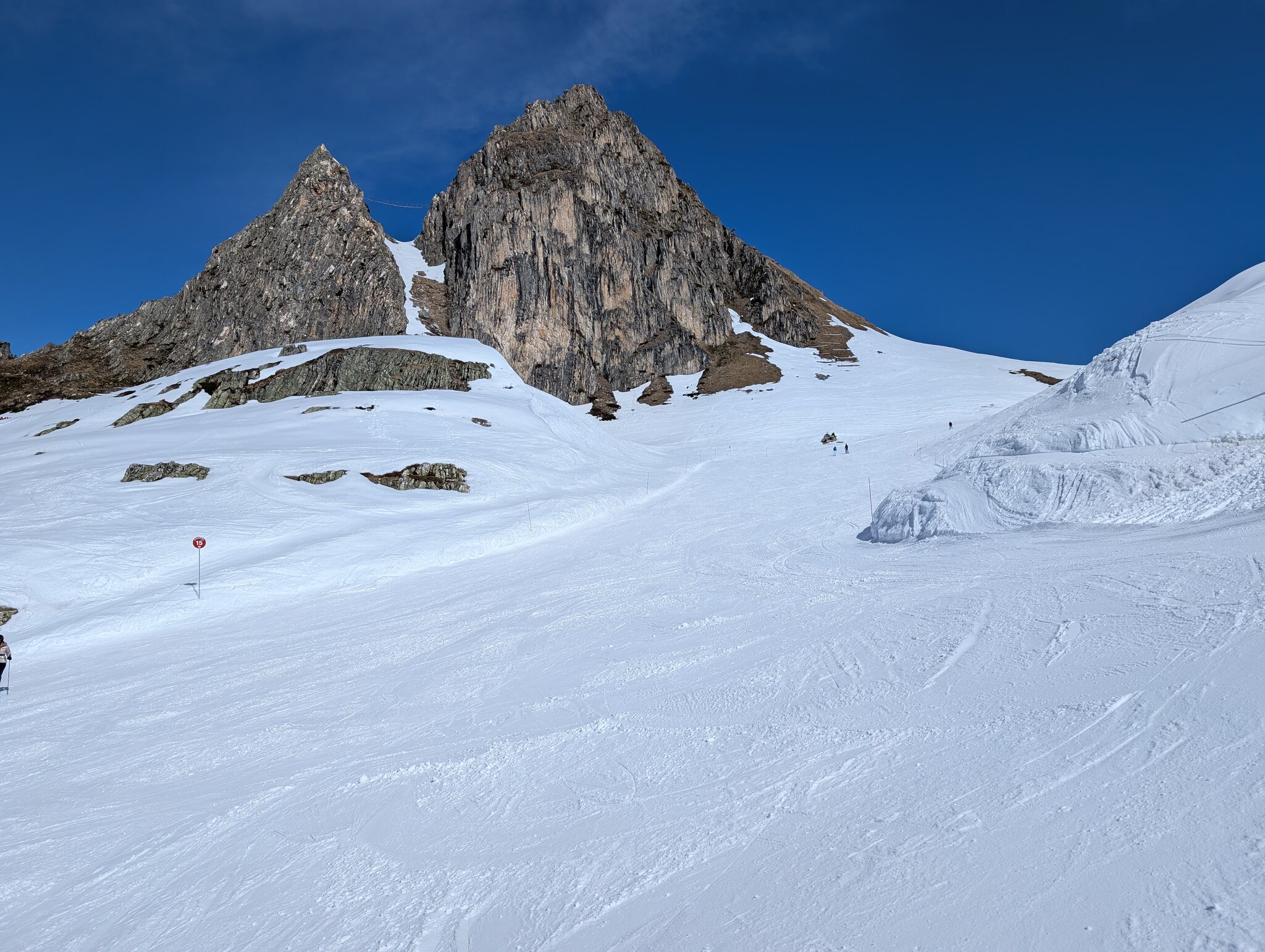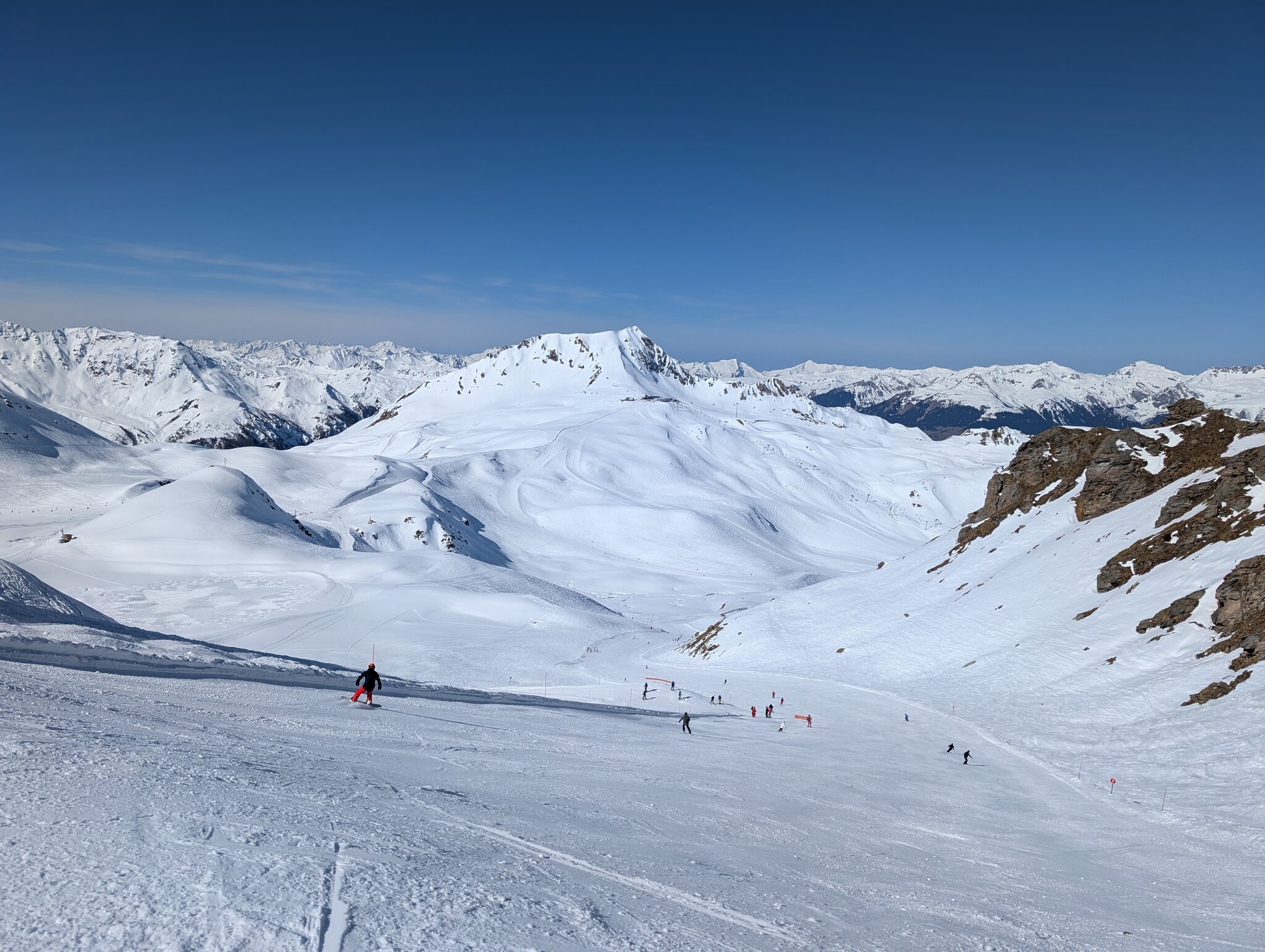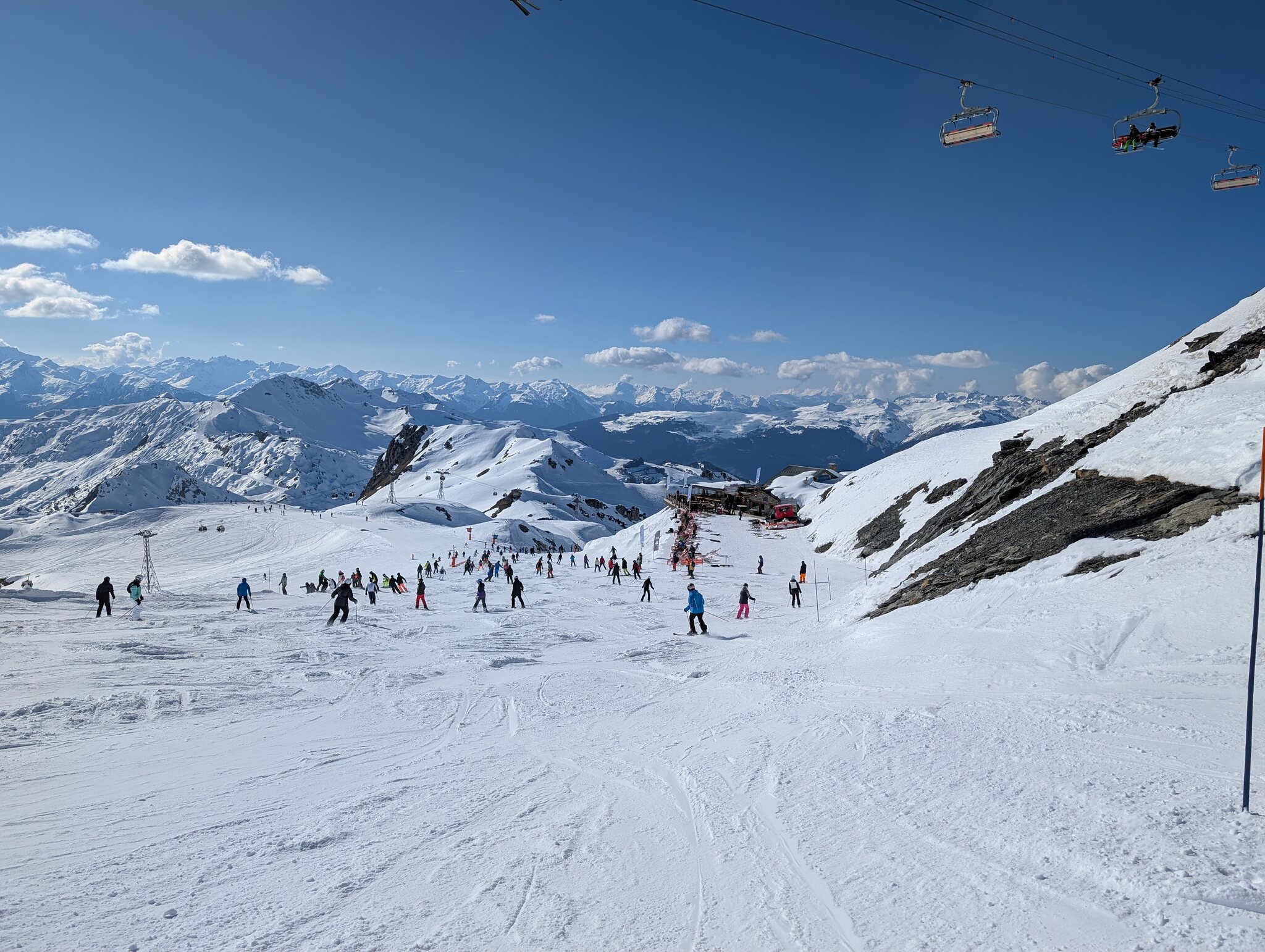 Trotzdem eine schöne Abwechslung, immer Verbier wird auch langweilig. Aber wenn ich schon soweit fahre dann das nächste Mal wieder Menuieres. Das ist dann schon eine andere Hausnummer, gefühlt jeder Lisft 1000hm. Hier liegt der Schnitt wohl eher bei 500hm, insbesondere in La Plagne. Was mich sehr enttäuscht hat ist der Gletscher Bellcote. War da zuletzt vor 24 Jahren, an Ostern, Pulverschnee, tolle steile Abfahrt. Dieses Jahr wenig Schnee, und selbst in der Höhe sehr sulzig und teils Steine. Wer da den Klimawandel leugnet dem ist nicht mehr zu helfen.