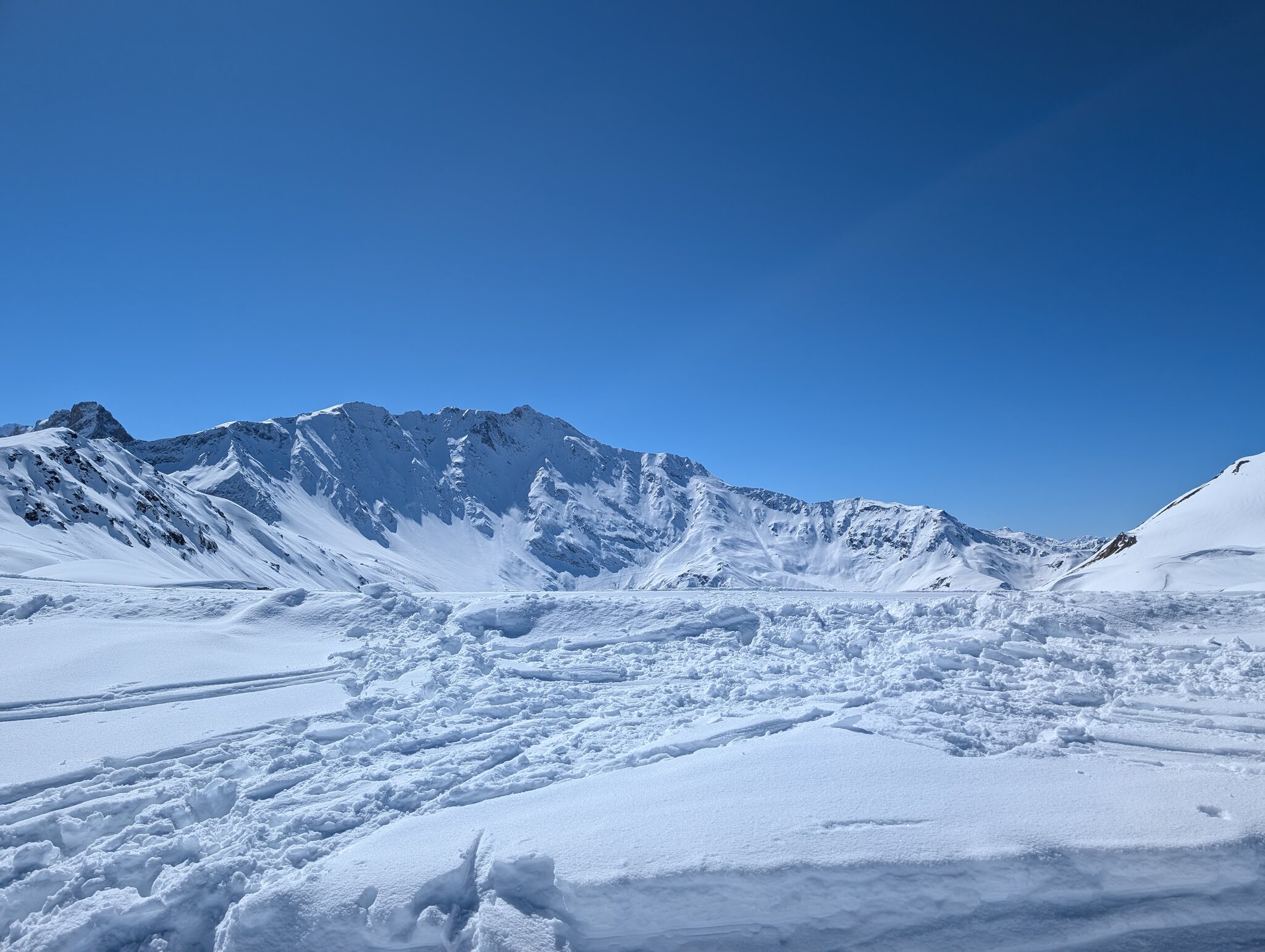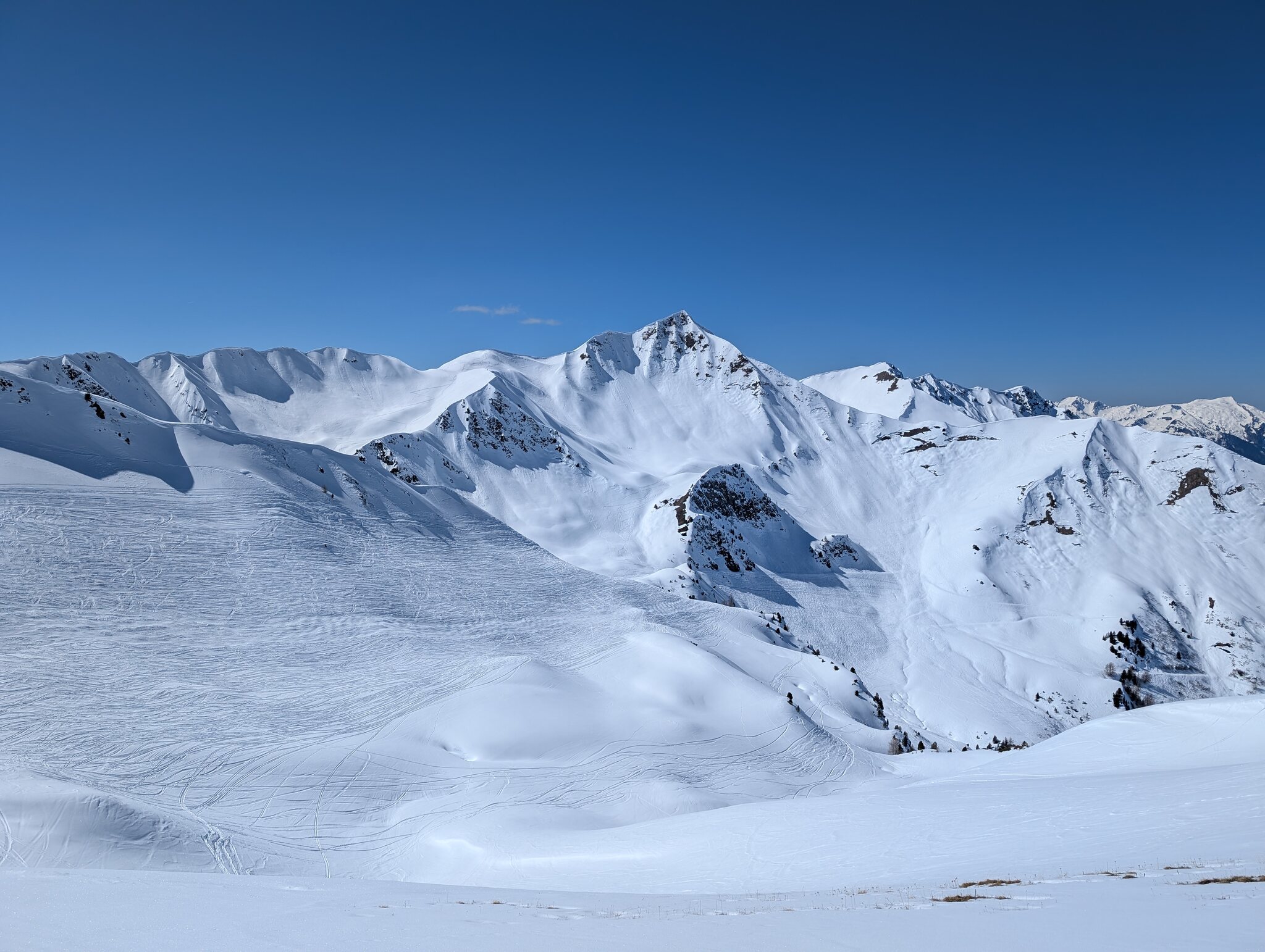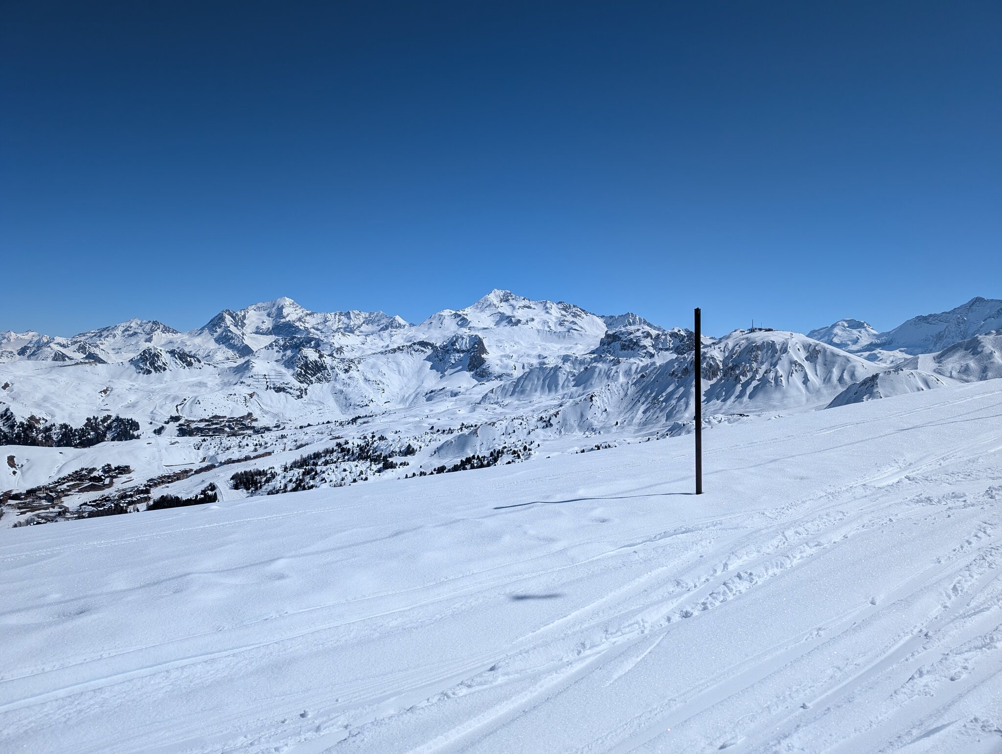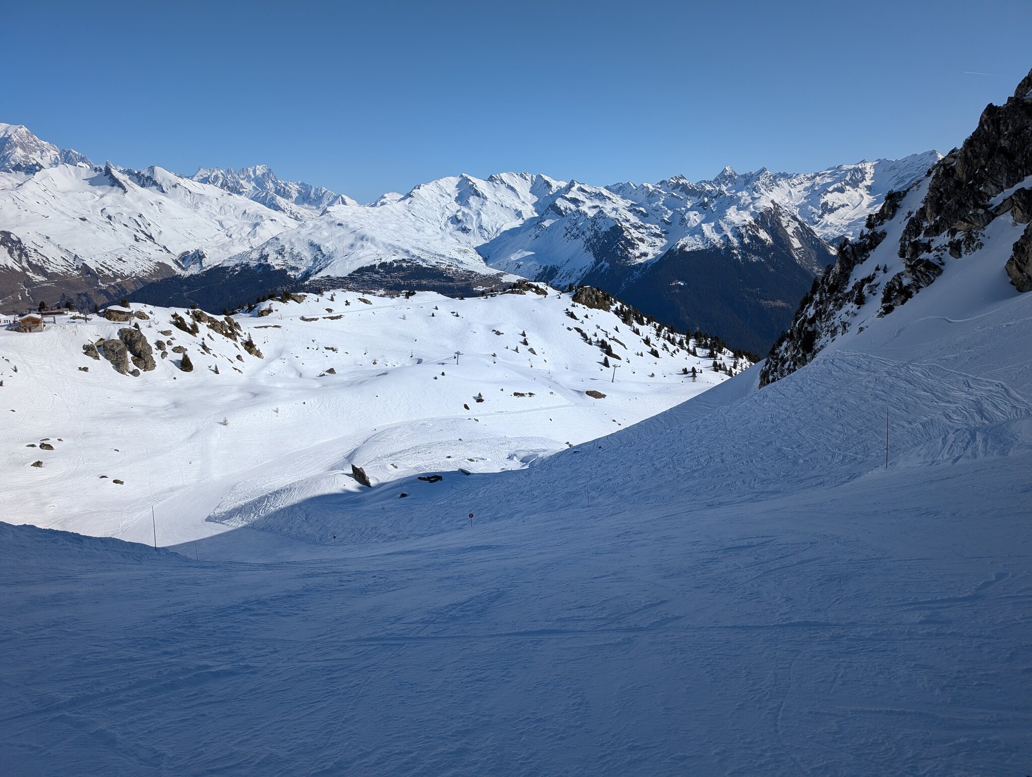 Trotzdem eine schöne Abwechslung, immer Verbier wird auch langweilig. Aber wenn ich schon soweit fahre dann das nächste Mal wieder Menuieres. Das ist dann schon eine andere Hausnummer, gefühlt jeder Lisft 1000hm. Hier liegt der Schnitt wohl eher bei 500hm, insbesondere in La Plagne. Was mich sehr enttäuscht hat ist der Gletscher Bellcote. War da zuletzt vor 24 Jahren, an Ostern, Pulverschnee, tolle steile Abfahrt. Dieses Jahr wenig Schnee, und selbst in der Höhe sehr sulzig und teils Steine. Wer da den Klimawandel leugnet dem ist nicht mehr zu helfen.