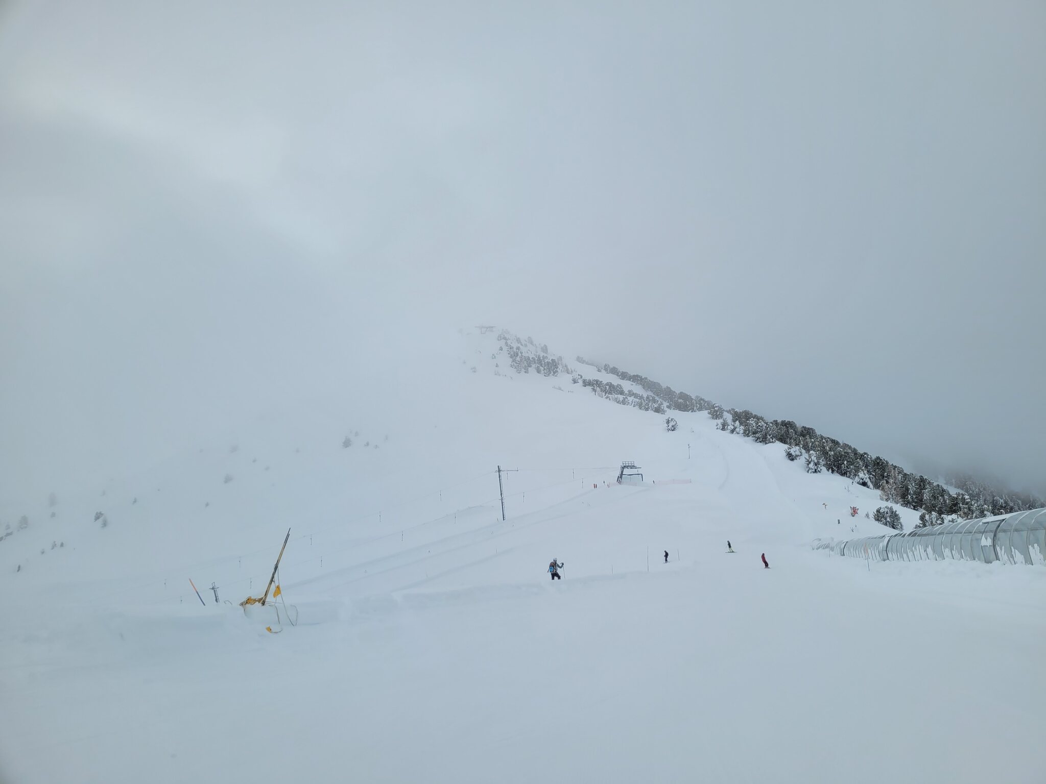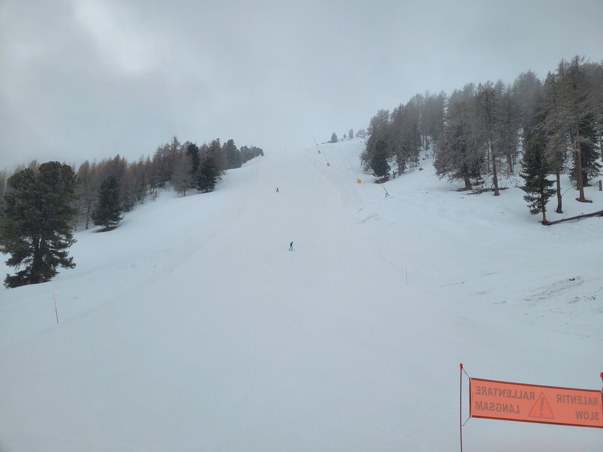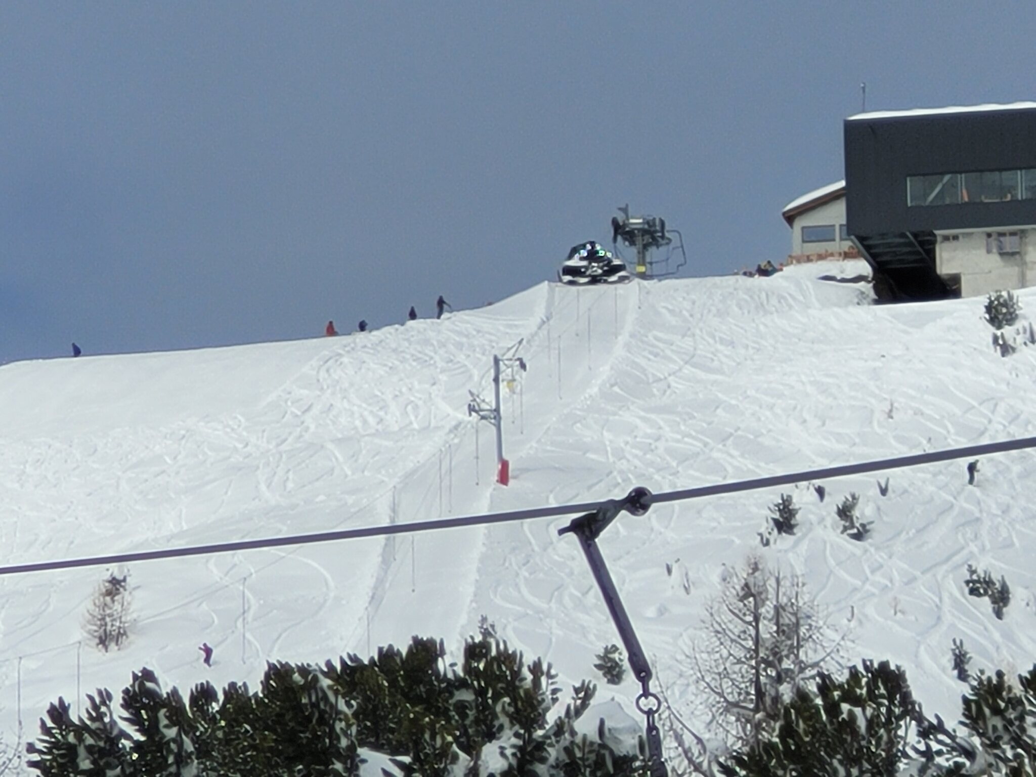 Heute hatten wir großes Glück mit Tracui. Wir standen geduldig in der Schlange für den SL Mont Major, und als wir oben ankamen, waren wir gerade noch rechtzeitig für die Öffnung der KSB-Pisten, bevor jemand über die KSB ankam.