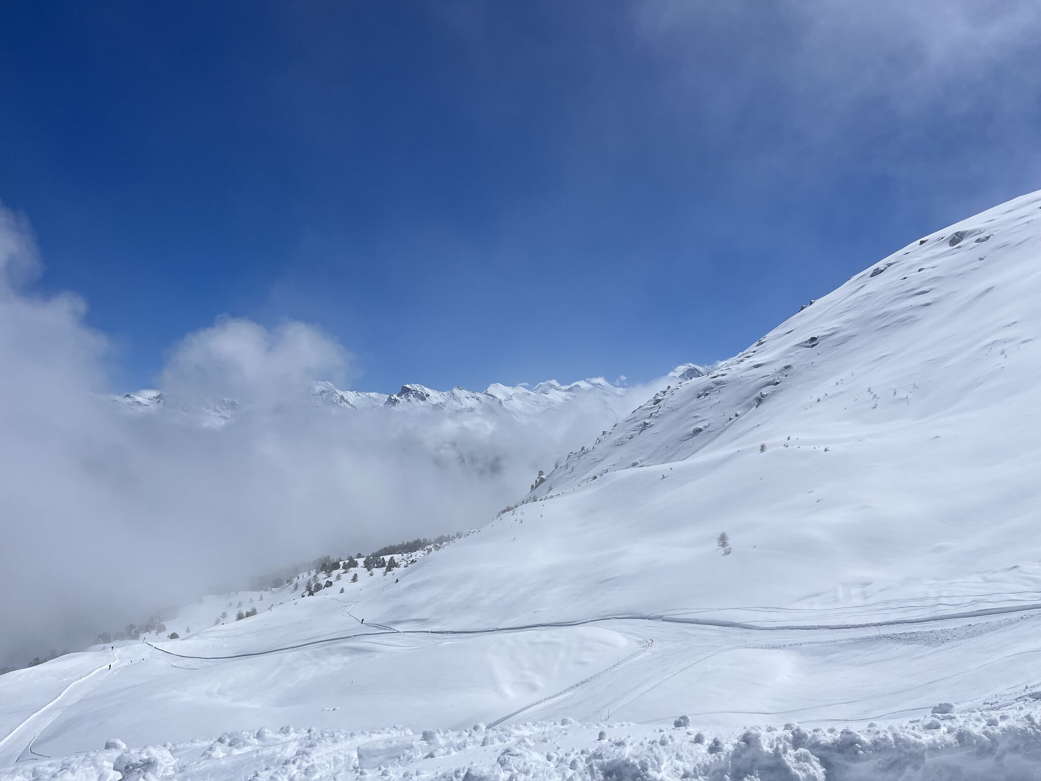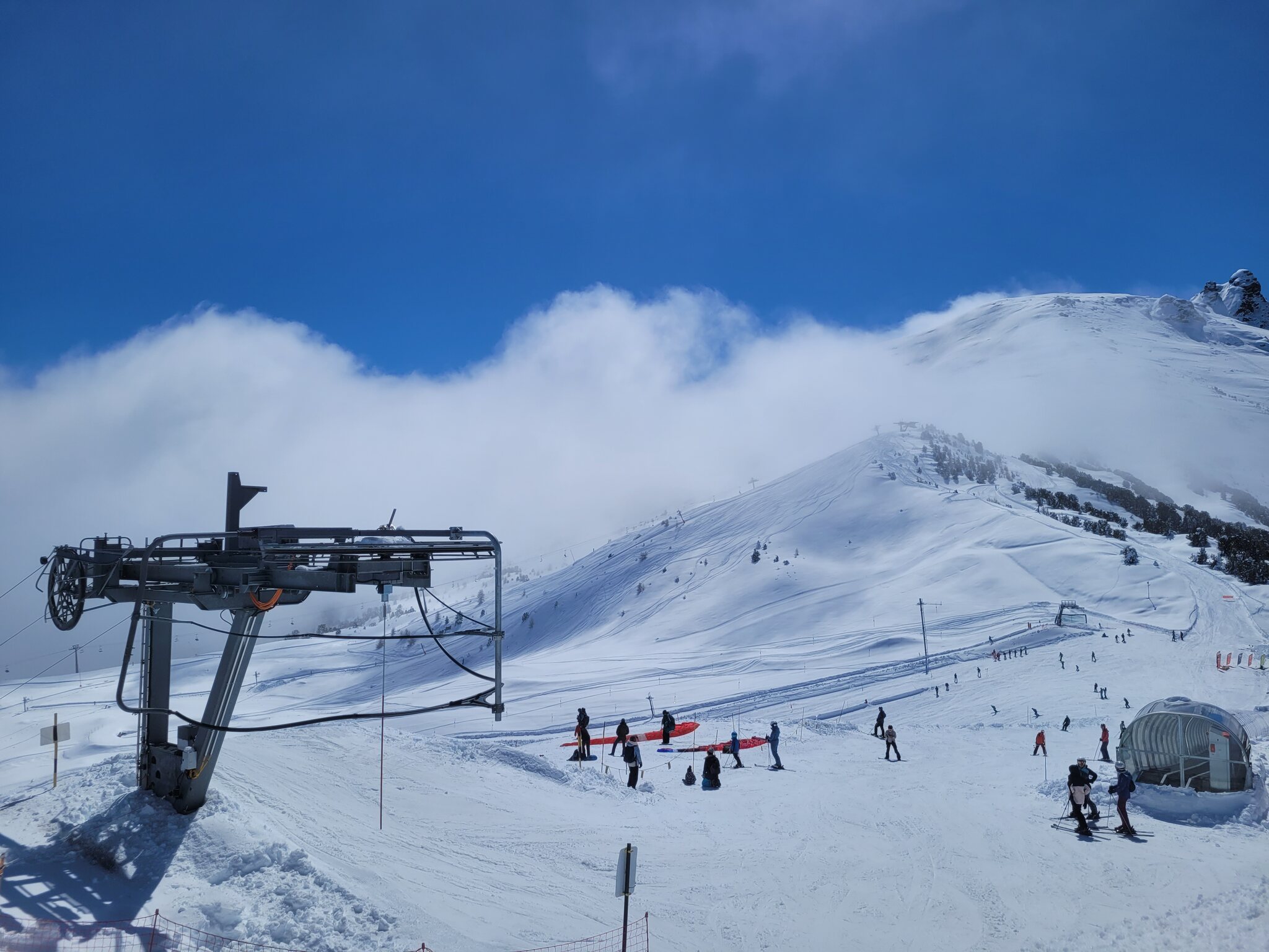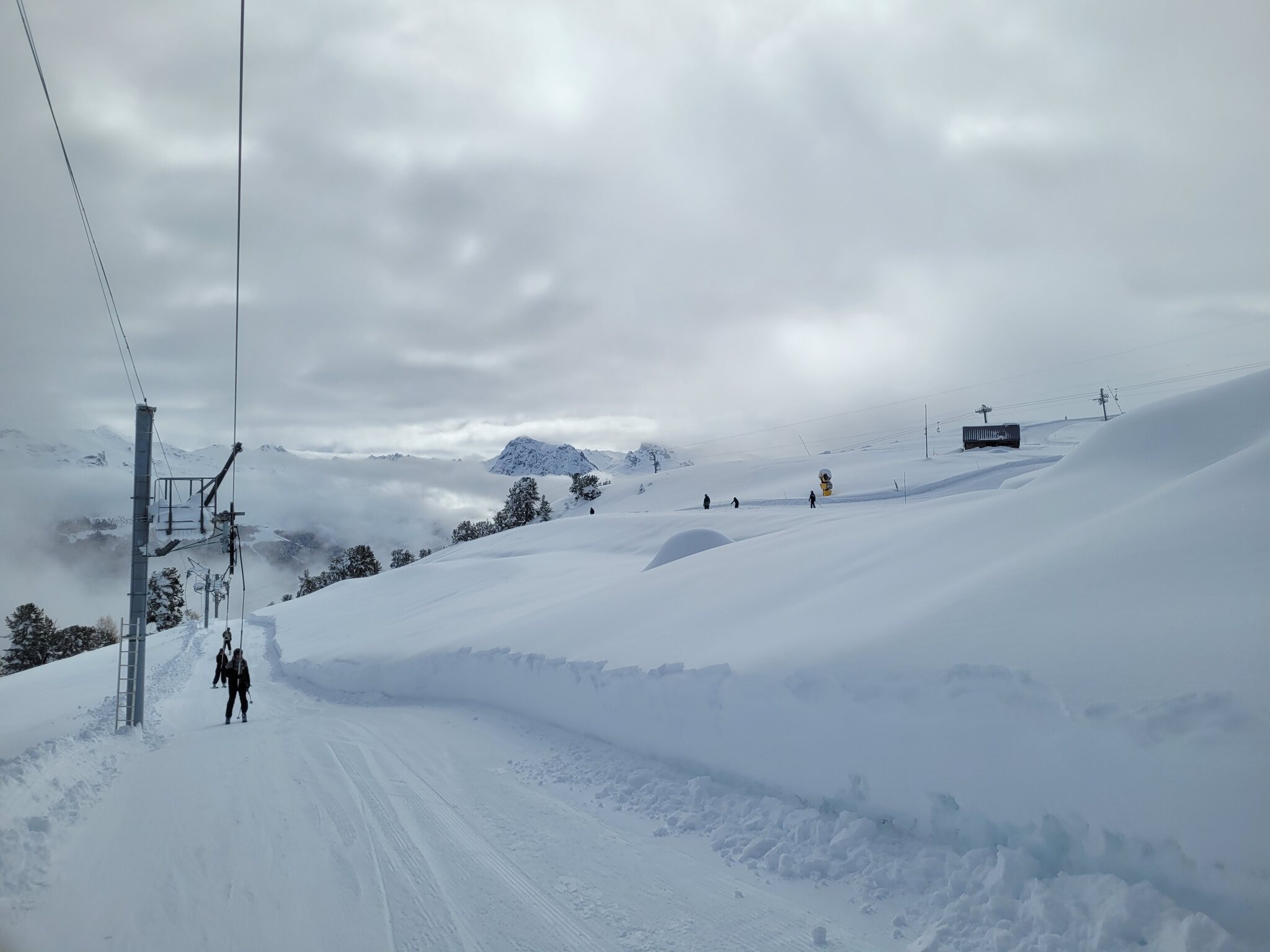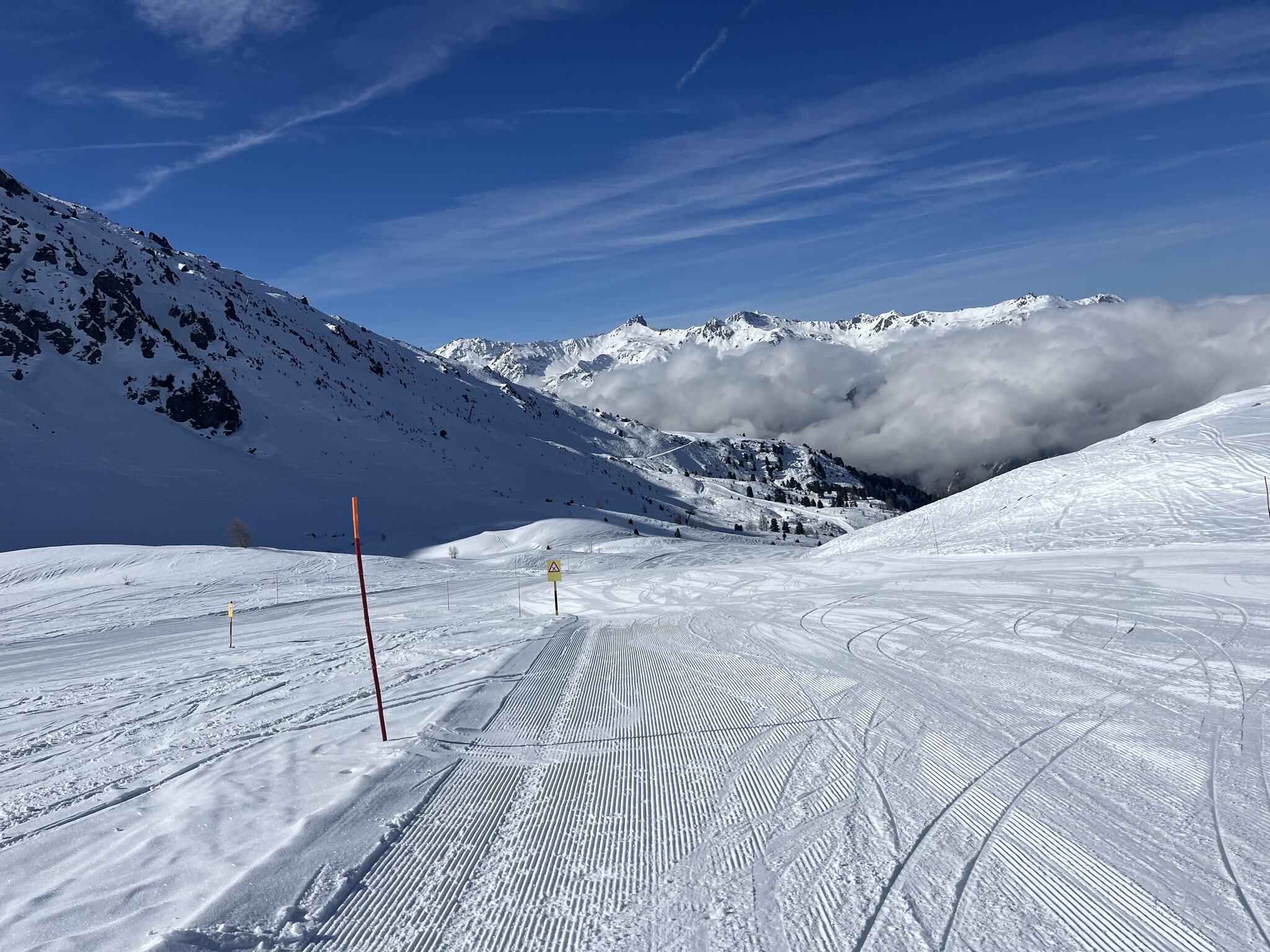 Heute hatten wir großes Glück mit Tracui. Wir standen geduldig in der Schlange für den SL Mont Major, und als wir oben ankamen, waren wir gerade noch rechtzeitig für die Öffnung der KSB-Pisten, bevor jemand über die KSB ankam.