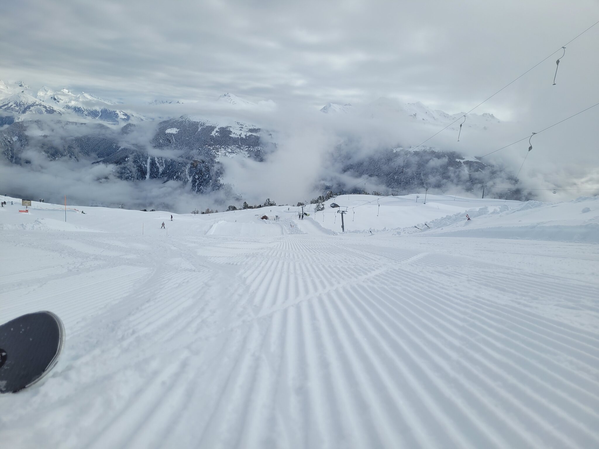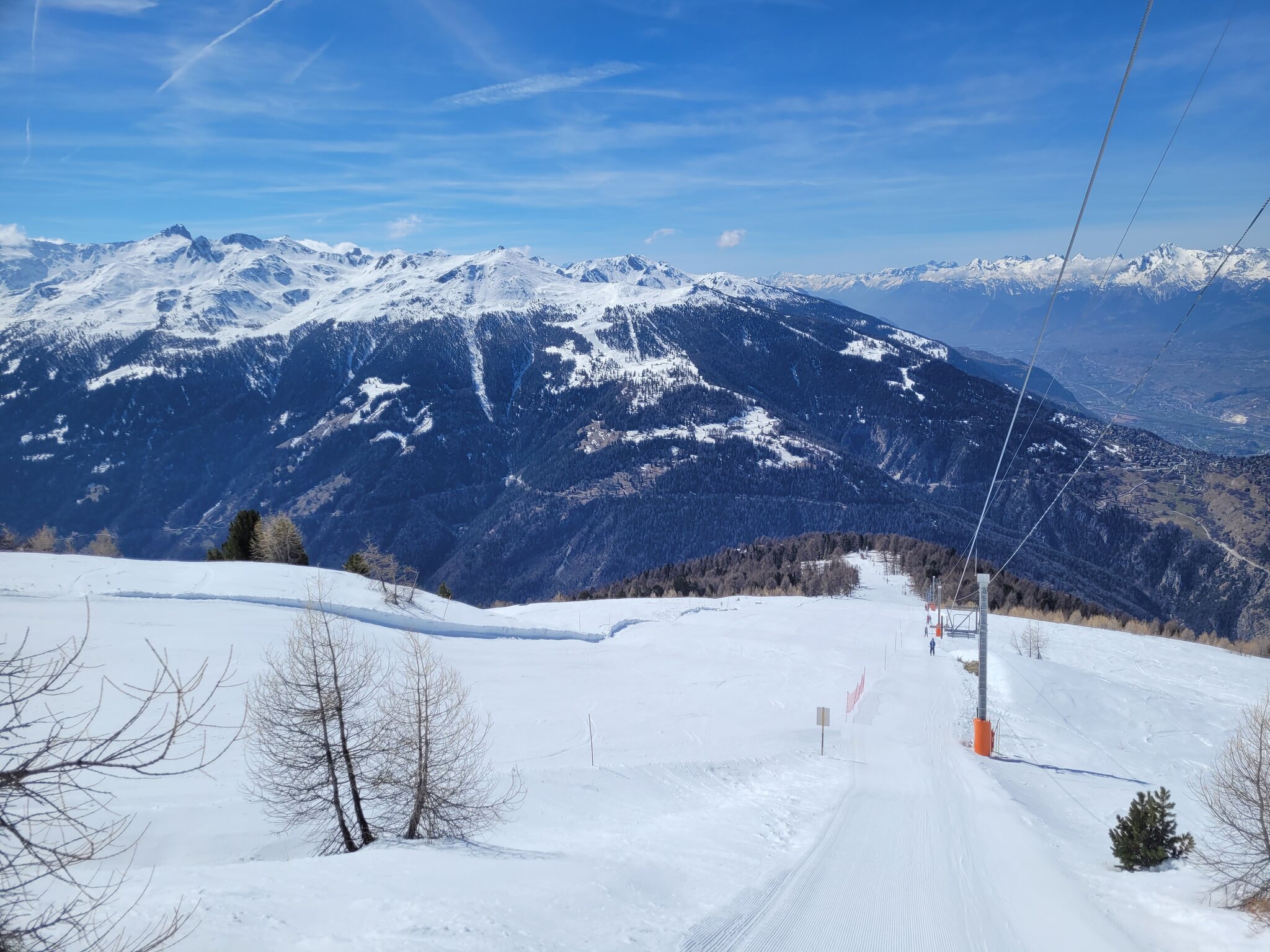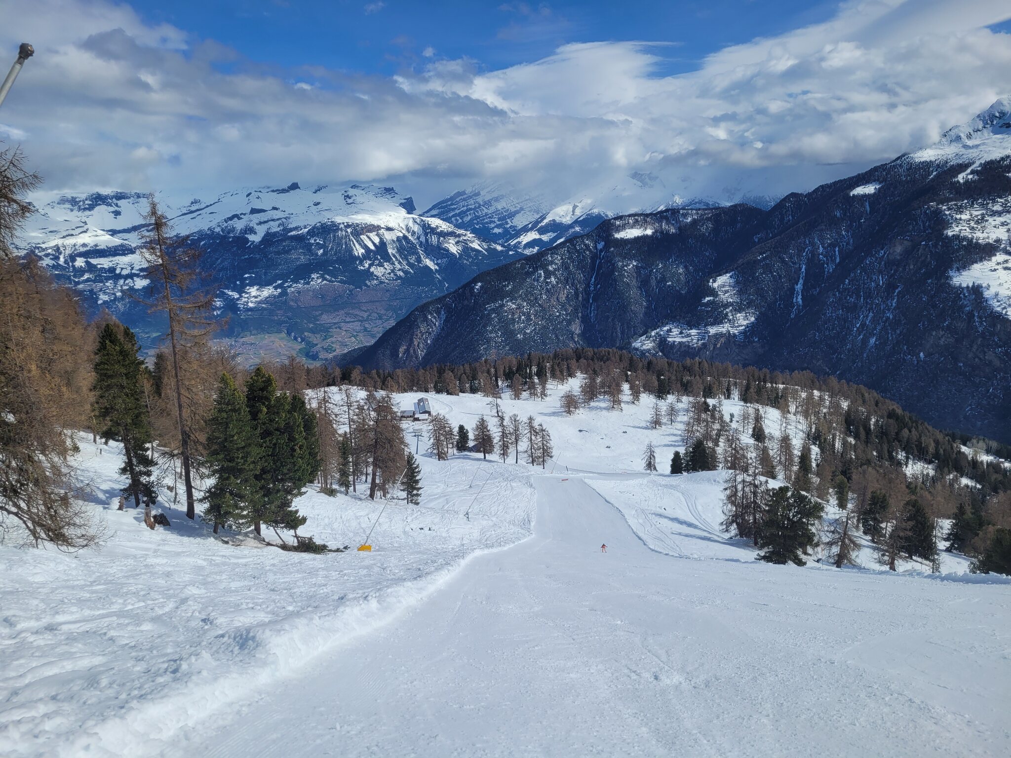 Der Plan für heute war, nach Saas-Fee zu fahren, aber die Sperrung der Straße am Morgen hat meine Pläne geändert. Daher entschied ich mich für Saint-Luc - Chandolin, was sich als gute Wahl herausstellte. Es waren nur wenige Leute unterwegs, alles war frisch präpariert und der Schnee war sehr gut. Am Morgen nicht zu hart, dann ab 10:30 Uhr weicher, aber immer noch sehr gut, und am Nachmittag dann ein wenig nass. Bis auf einige gelbe Routen war alles offen. Ein sehr schöner Tag!