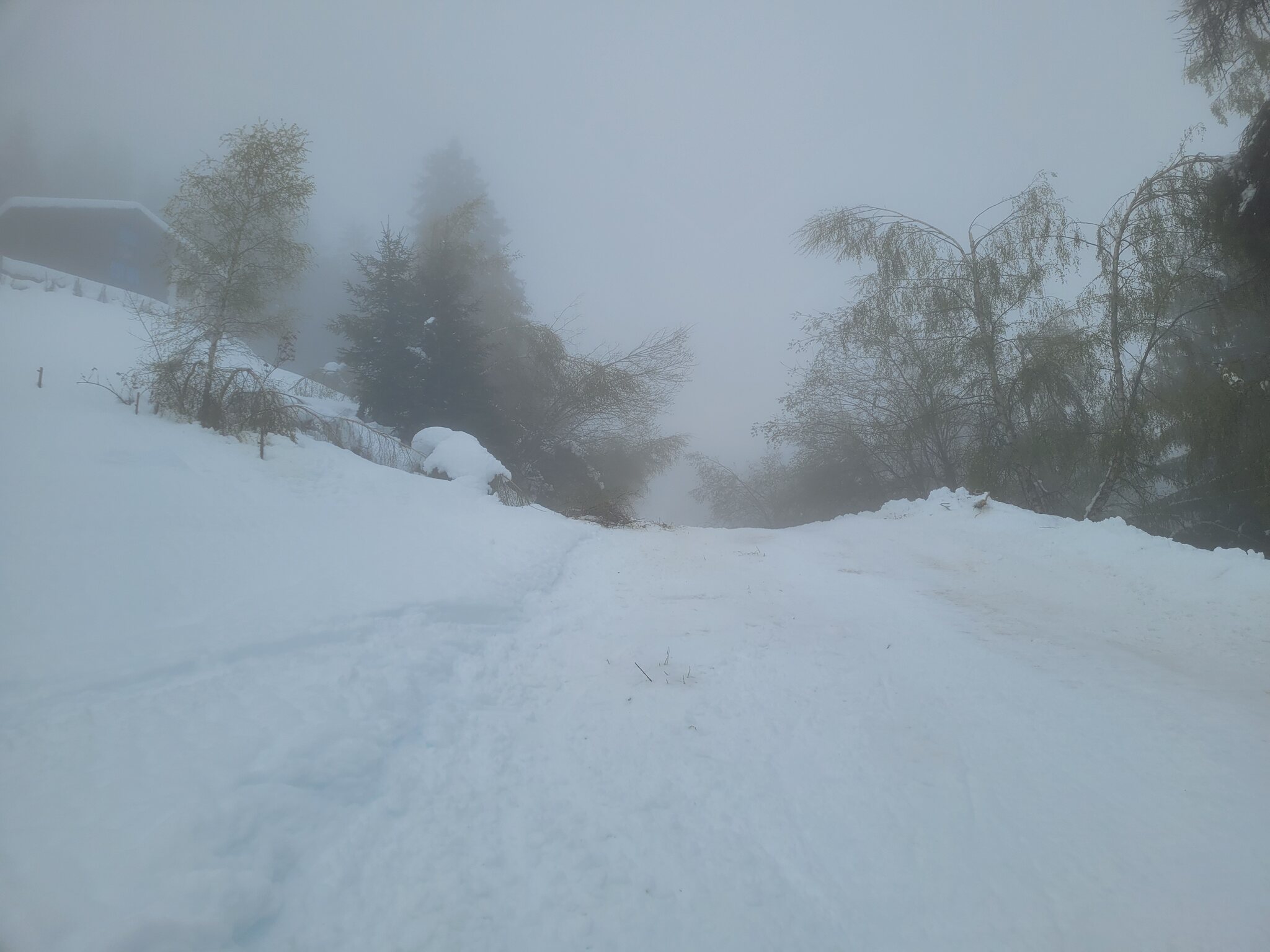 Innerhalb der ersten 10 Minuten gab es folgendes Wetter: Schnee, Regen, Nebel, bewölkt windig und windstill und sonnig.