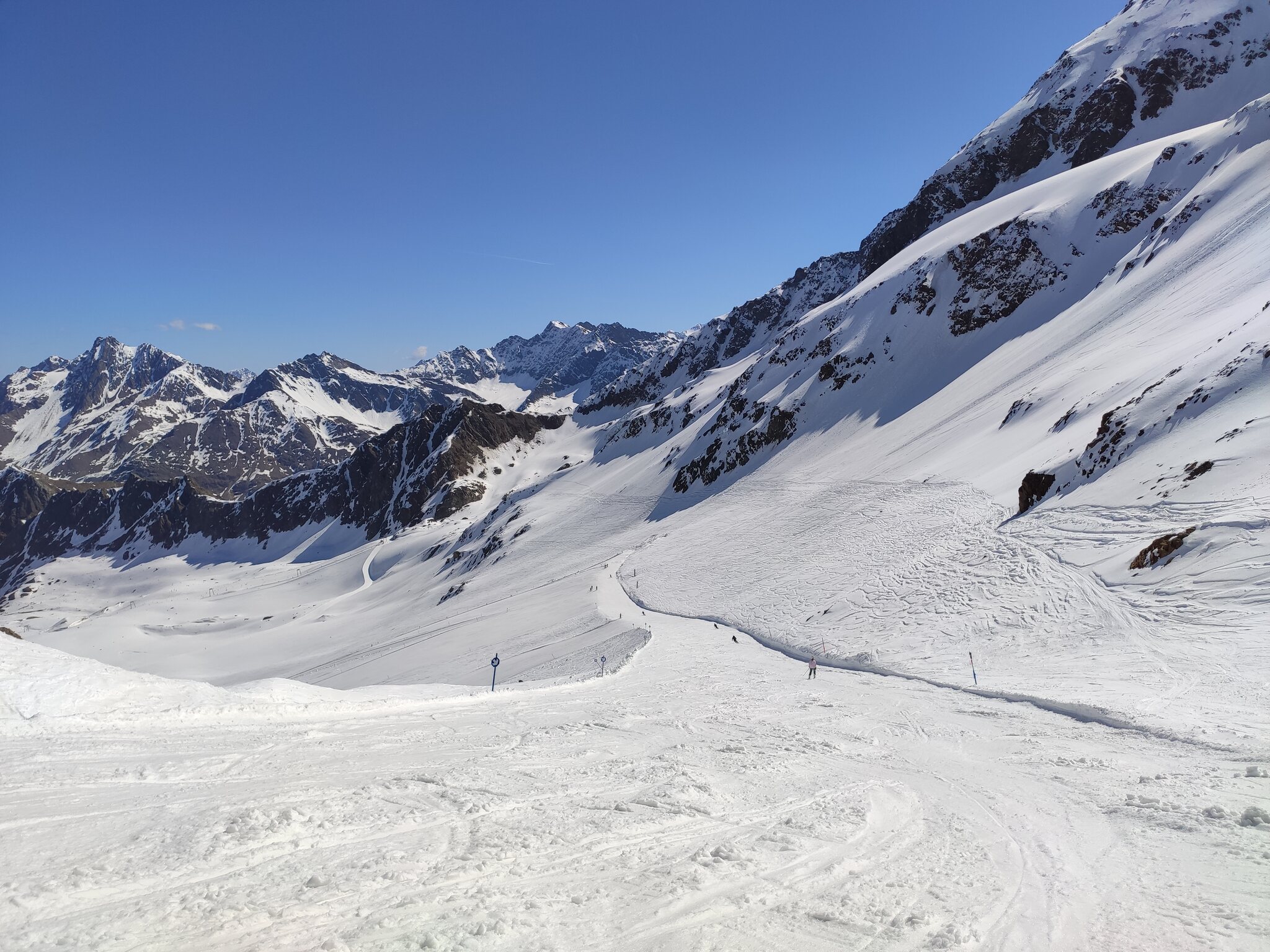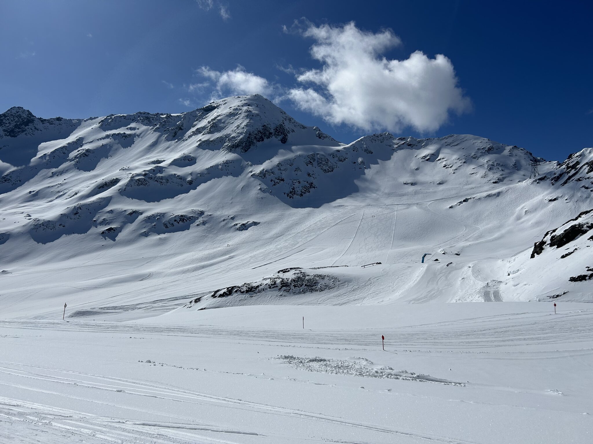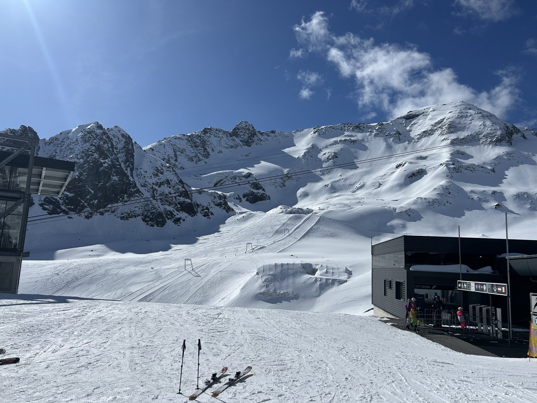 Ja, im Vergleich zu Ostern bekommt man schon deutlich weniger geboten zum gleichen Preis. Pitztaler wäre noch eine Alternative gewesen, aber bei dem warmen Wetter heute macht sowieso nur der Morgen Sinn und dafür reicht das Angebot am Kauni auch.