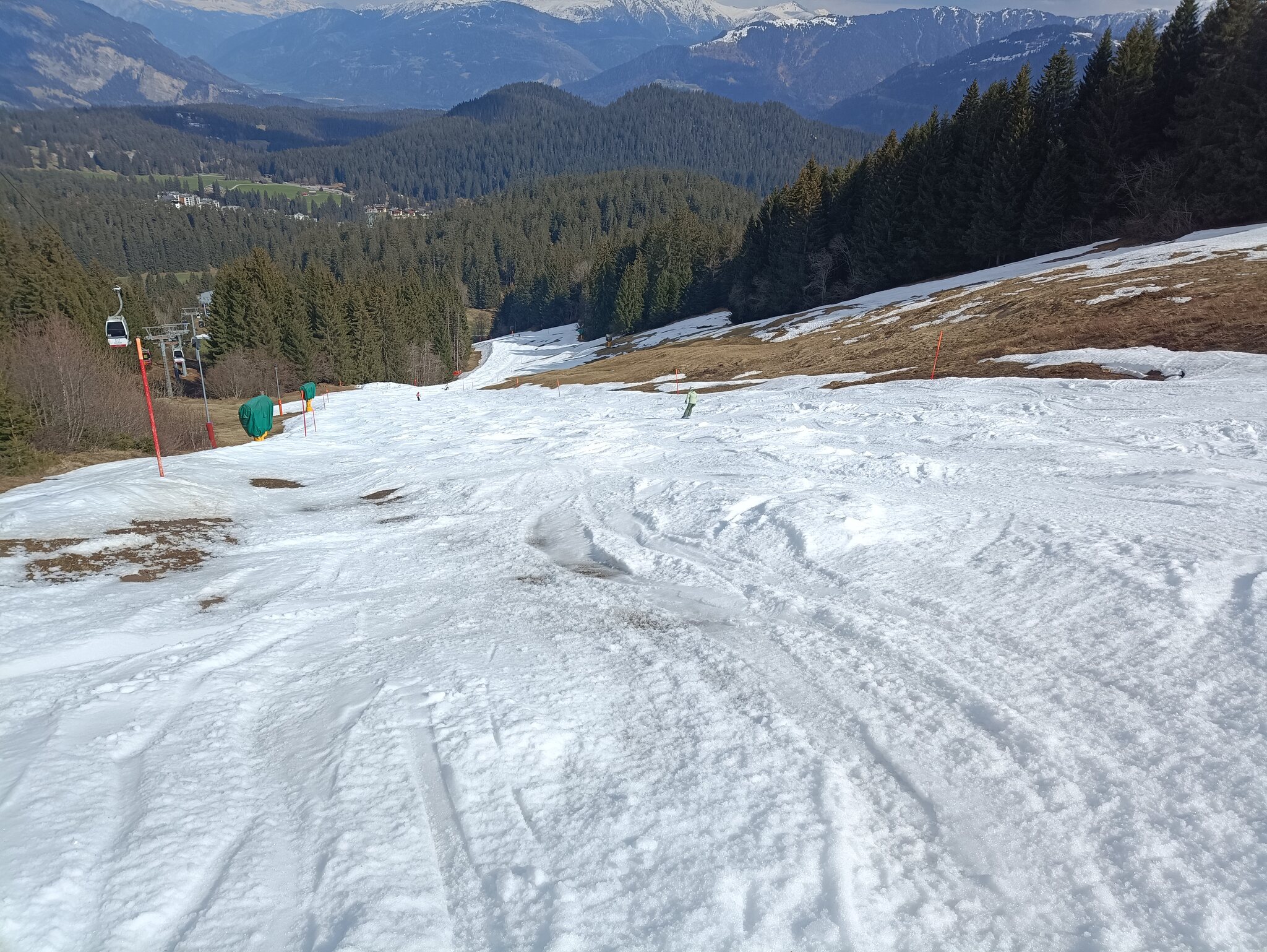 Kurz nach 12 wurde La Siala geschlossen wegen Wind. Grundsätzlich nachvollziehbar aber auch eine nachmittägliche Spargelegenheit - die Gondeln waren bereits am Morgen spärlich besucht.
