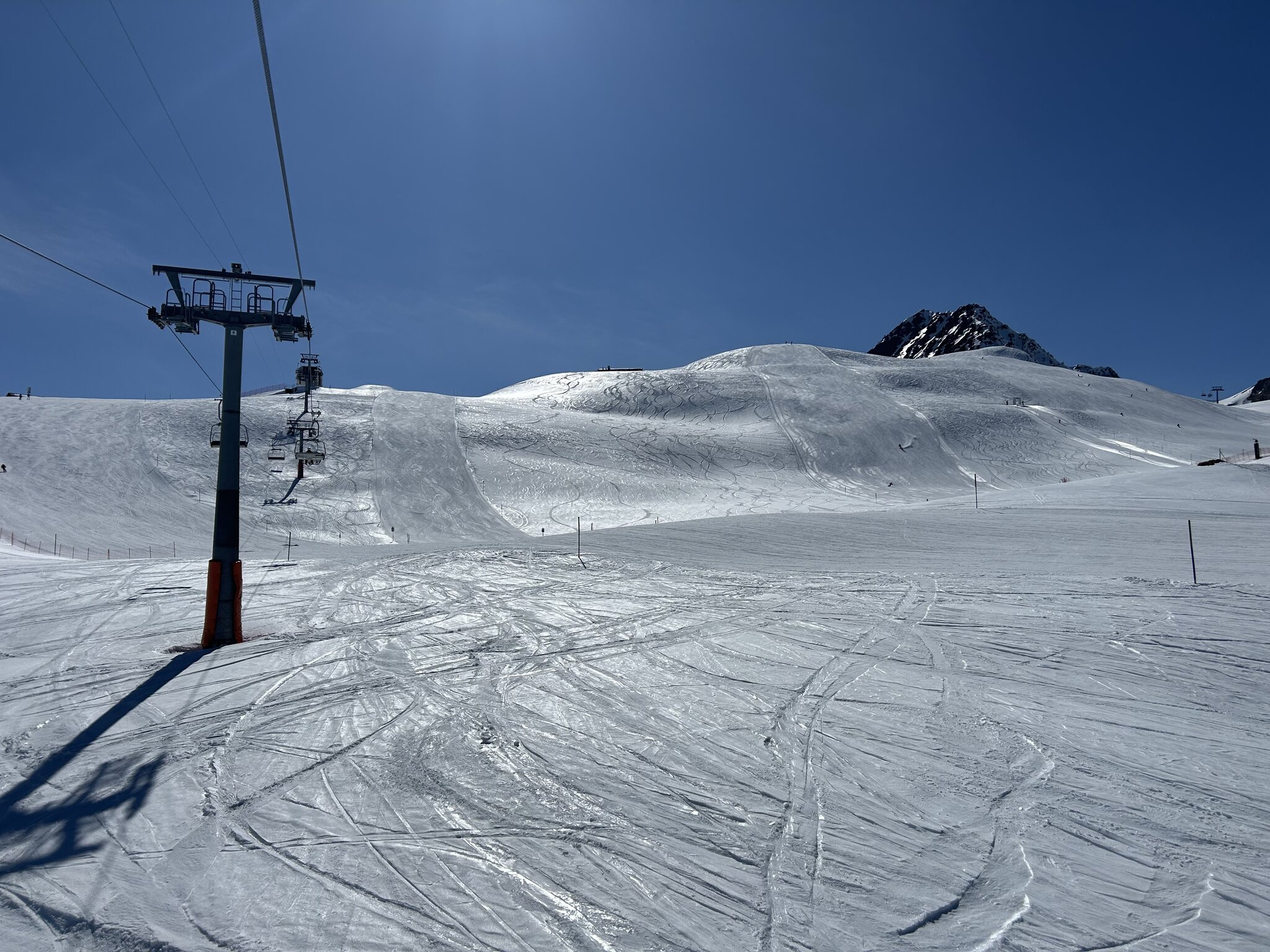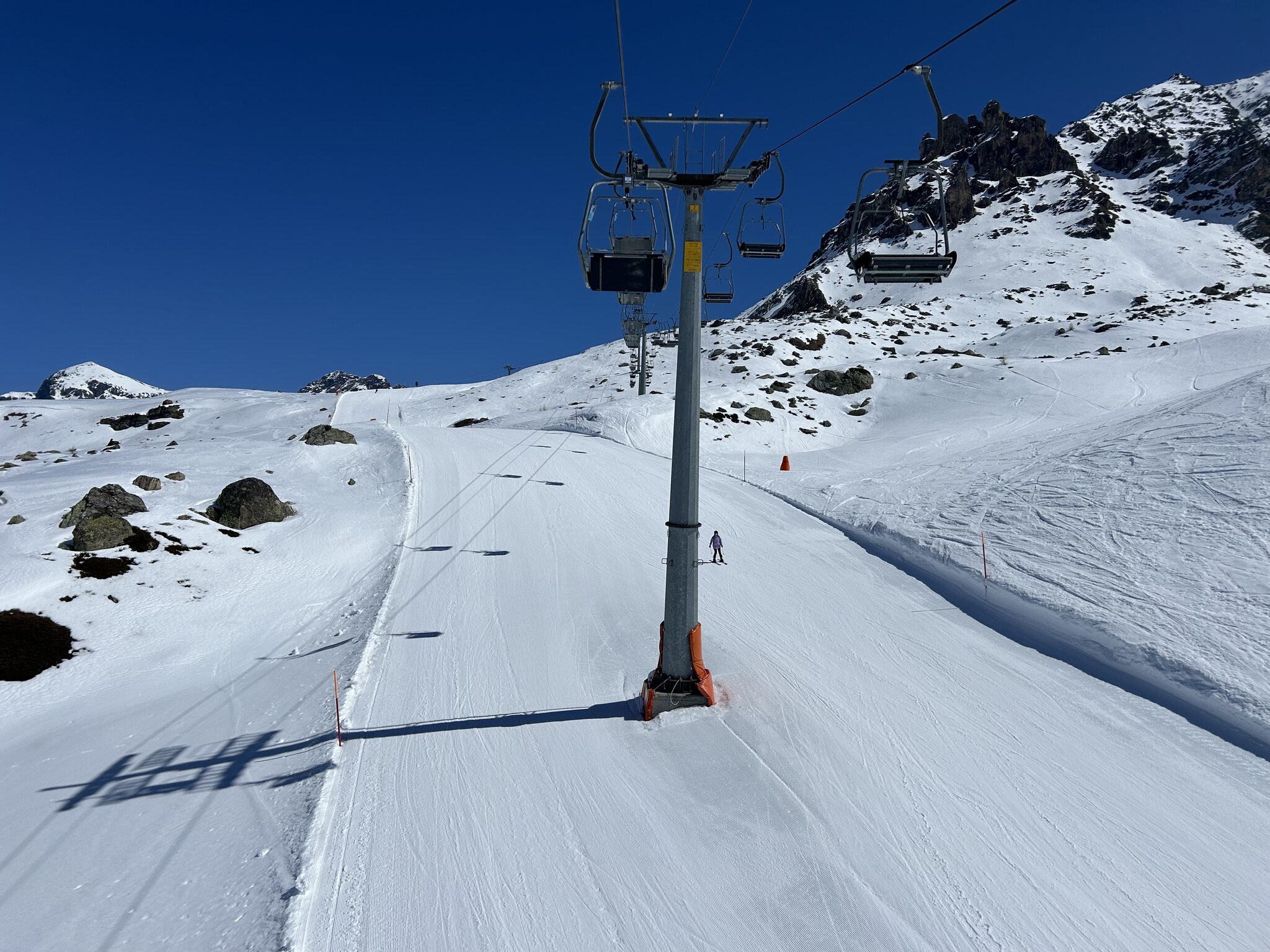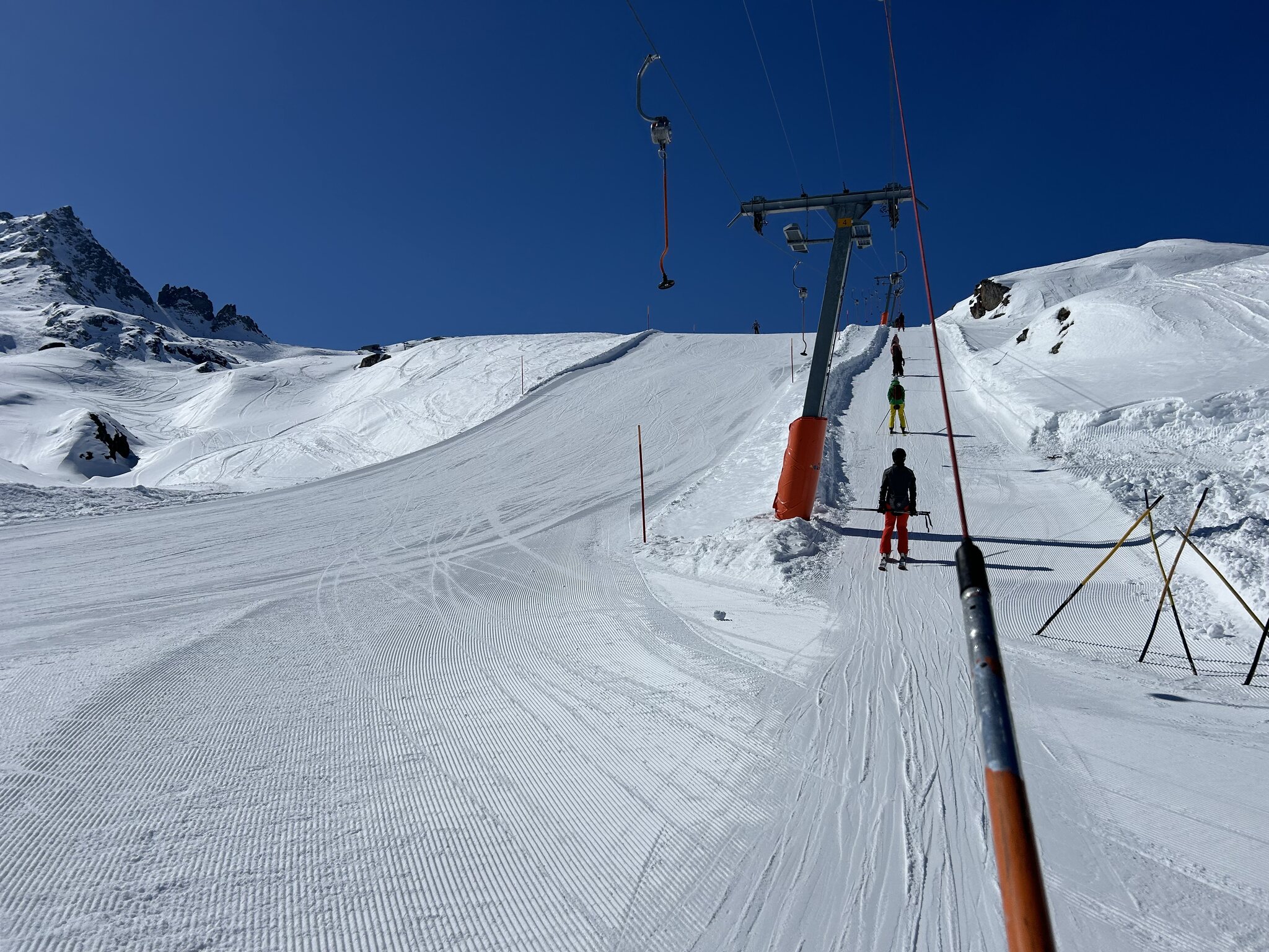 Die Pisten an der 4-KSB Alp Surlej waren morgens etwas hart aber tauten dann an