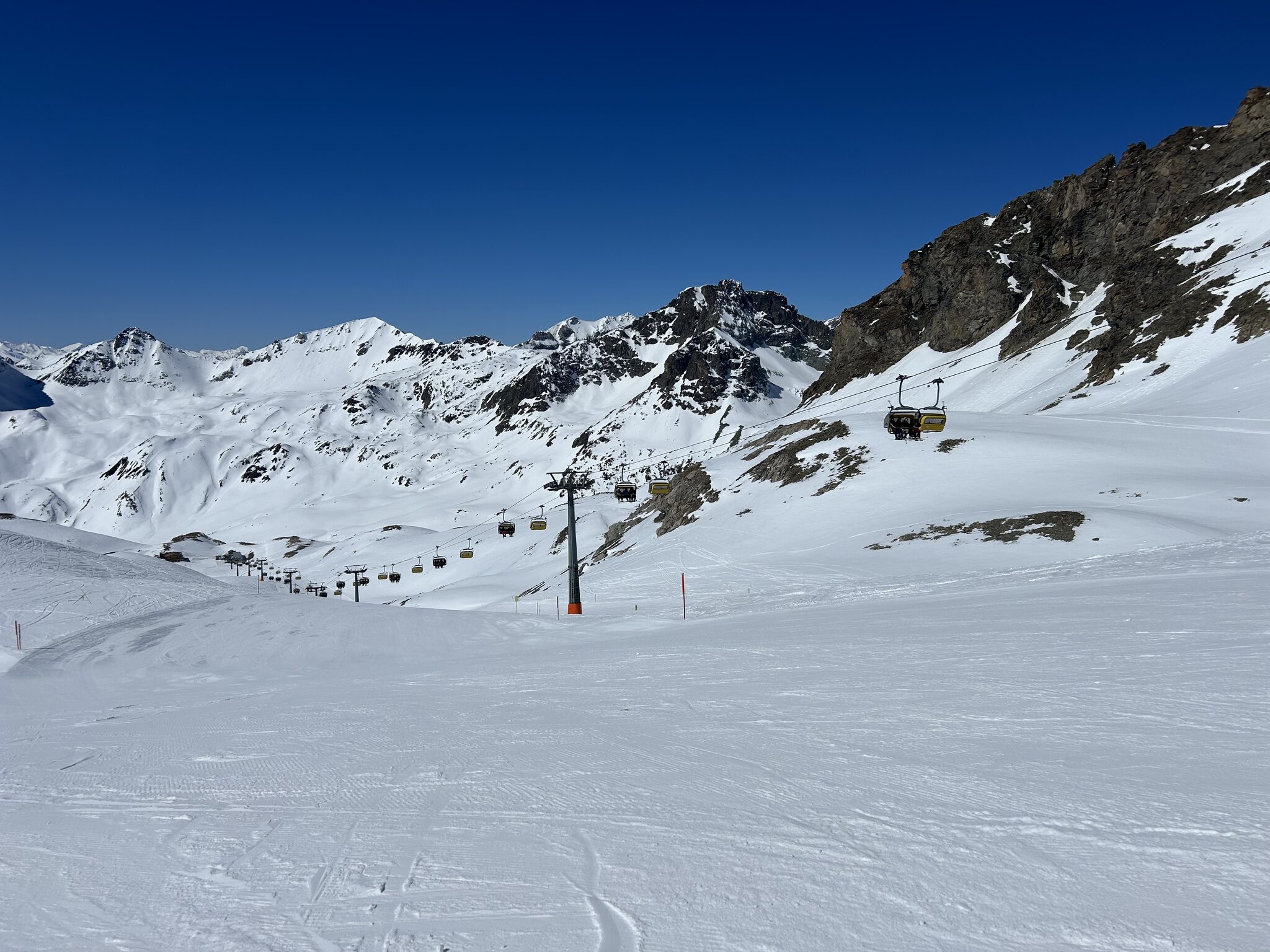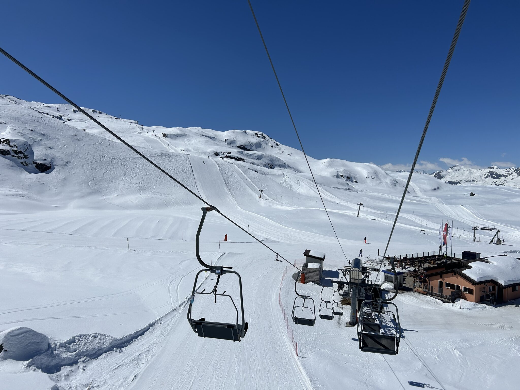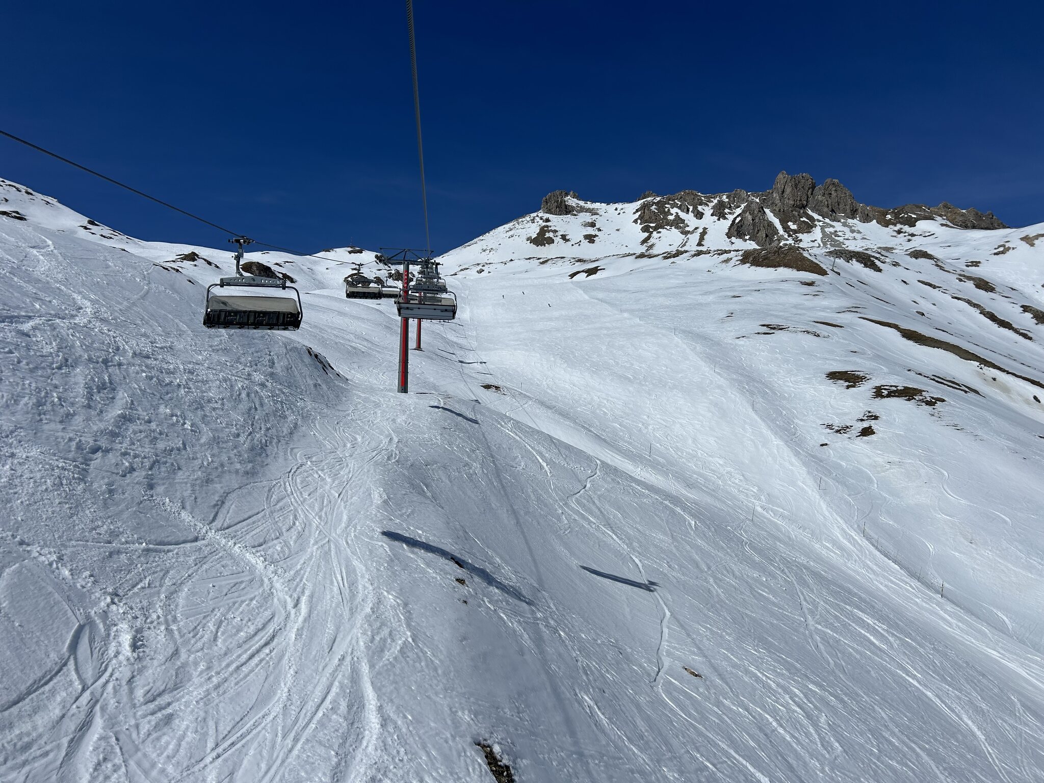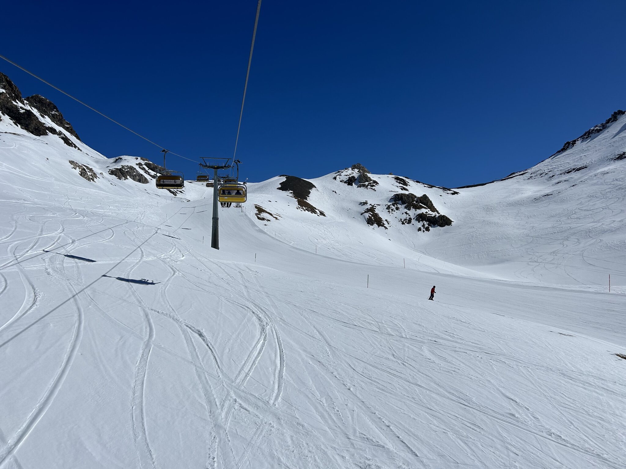 Die Pisten an der 4-KSB Alp Surlej waren morgens etwas hart aber tauten dann an