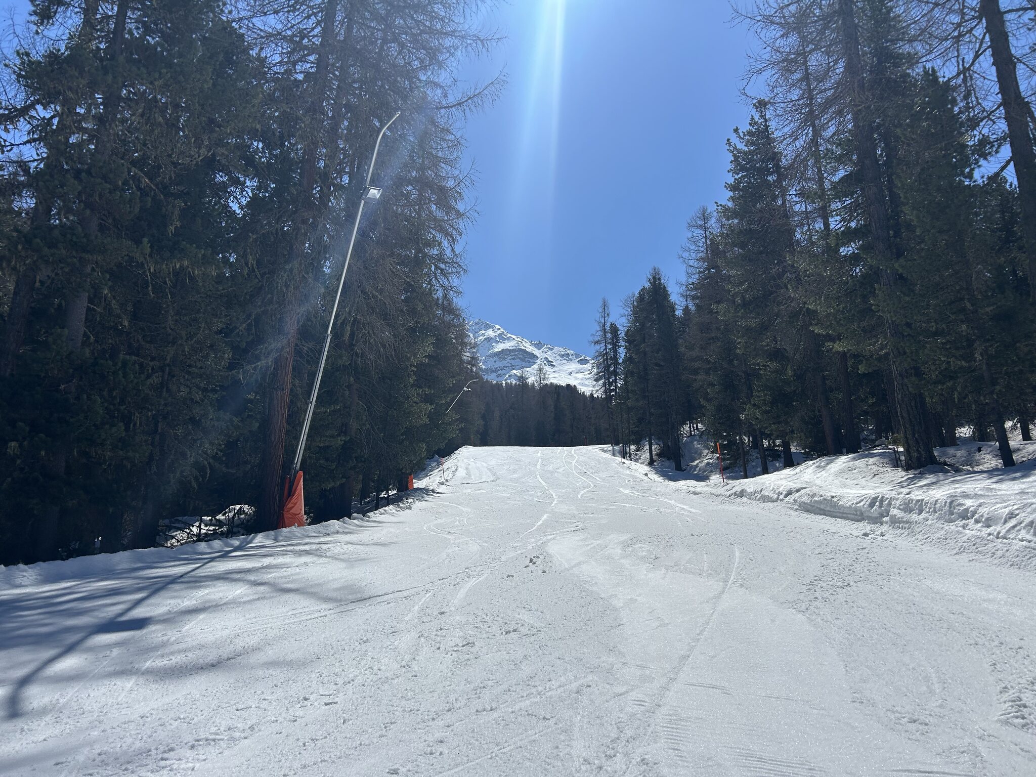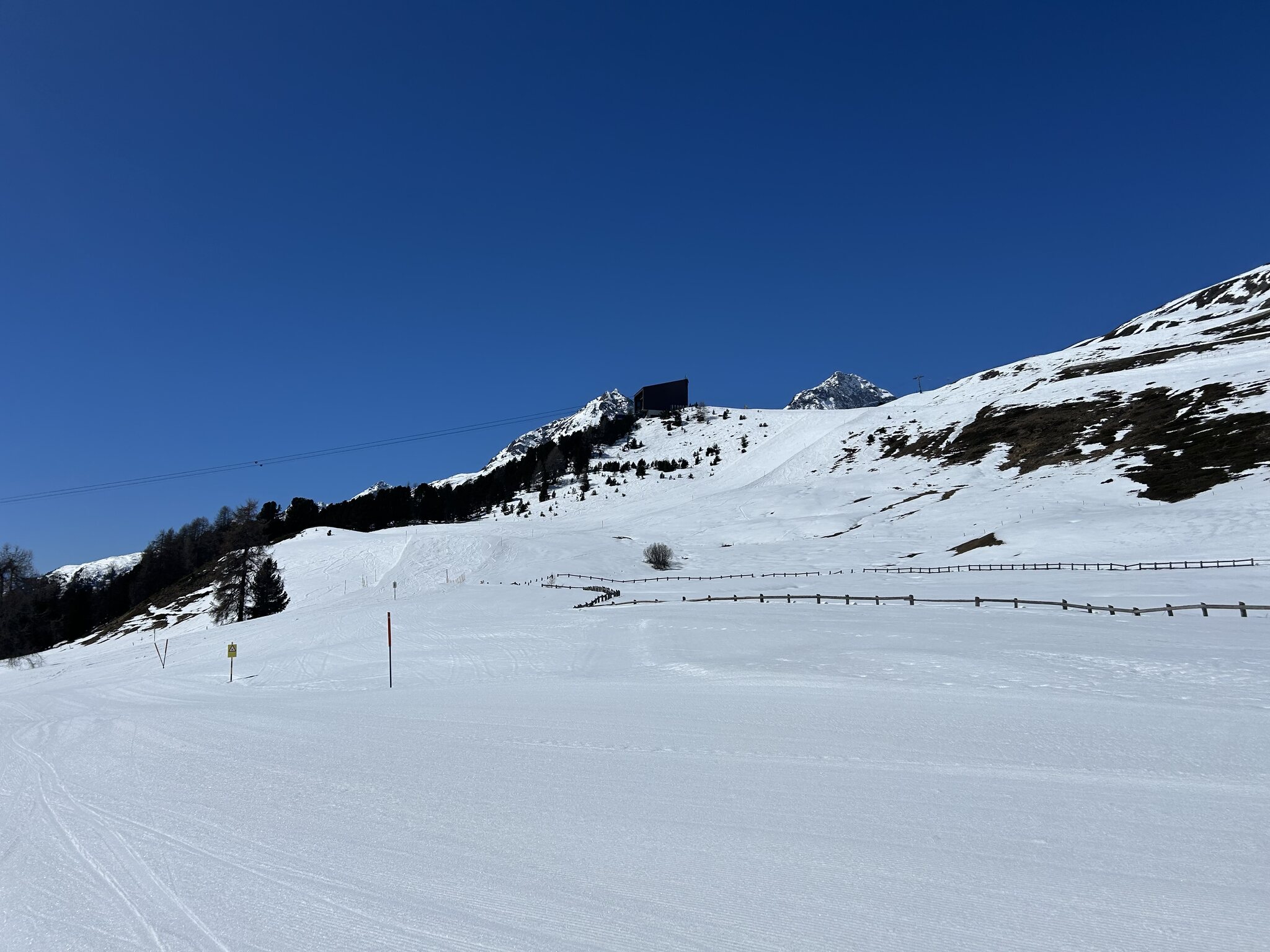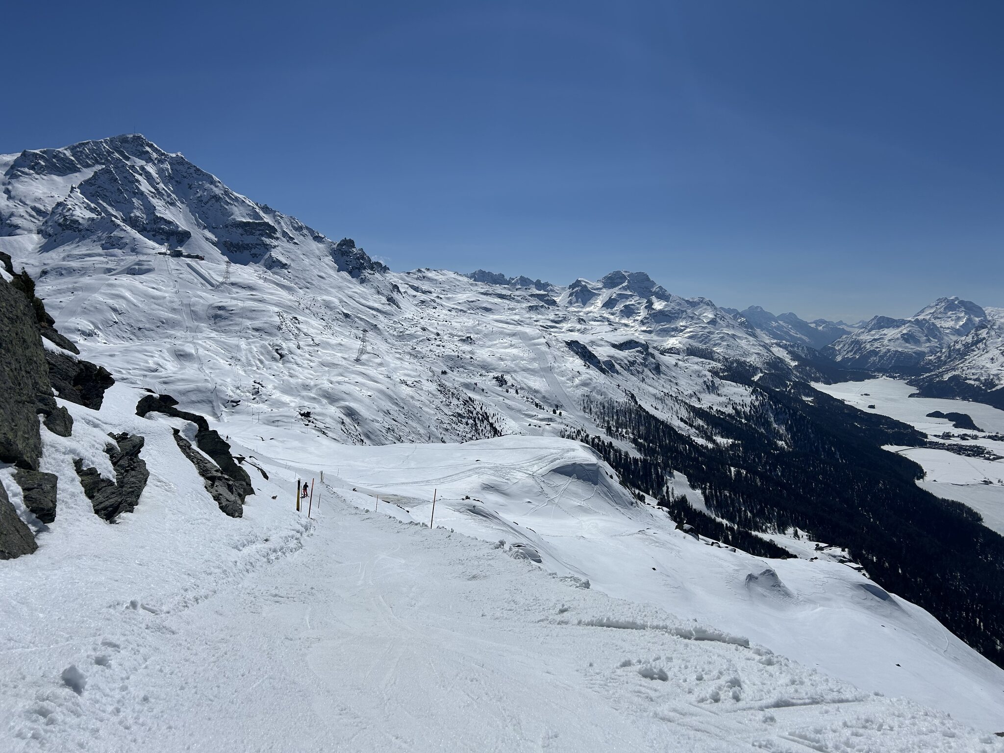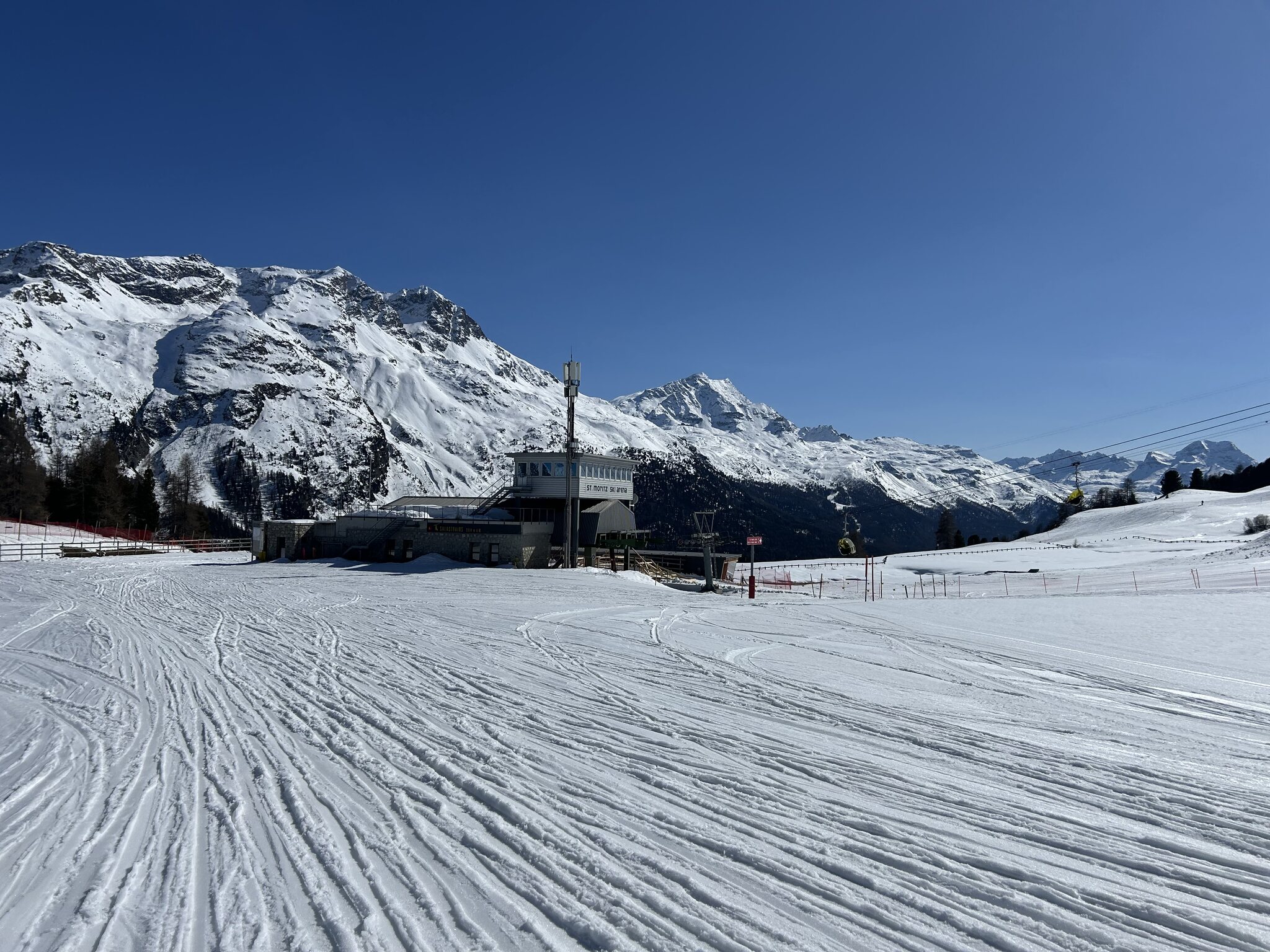Am Berg herrschte noch Vollbetrieb (ausgenommen die Abfahrt über die Fuorcla Surlej), wobei Gian d‘Alva inklusive Hahnensee ihren letzten Tag hatten. Im Gegensatz zur frühlingshaften Corviglia war hier noch deutlich mehr Winterfeeling. Mal abgesehen von den Talabfahrten gab es keinen Sulz sondern überwiegend harte und pulvrige Pisten. Nur selten waren einzelne Stellen abgefahren.