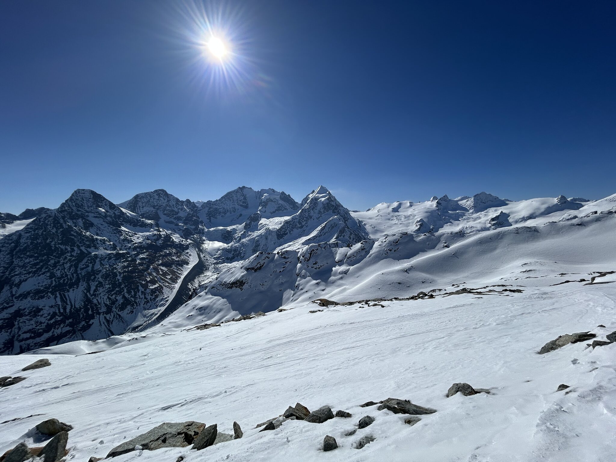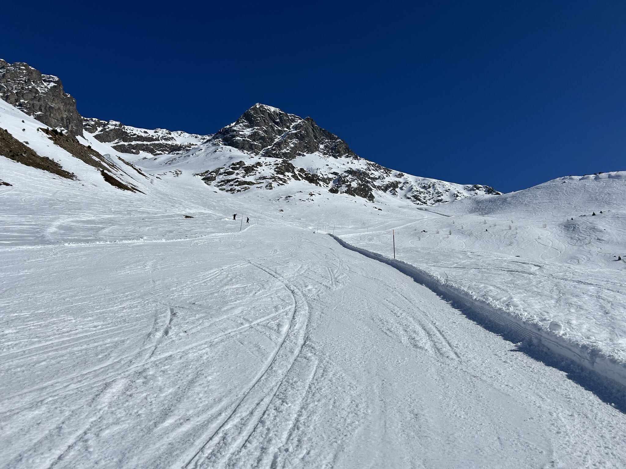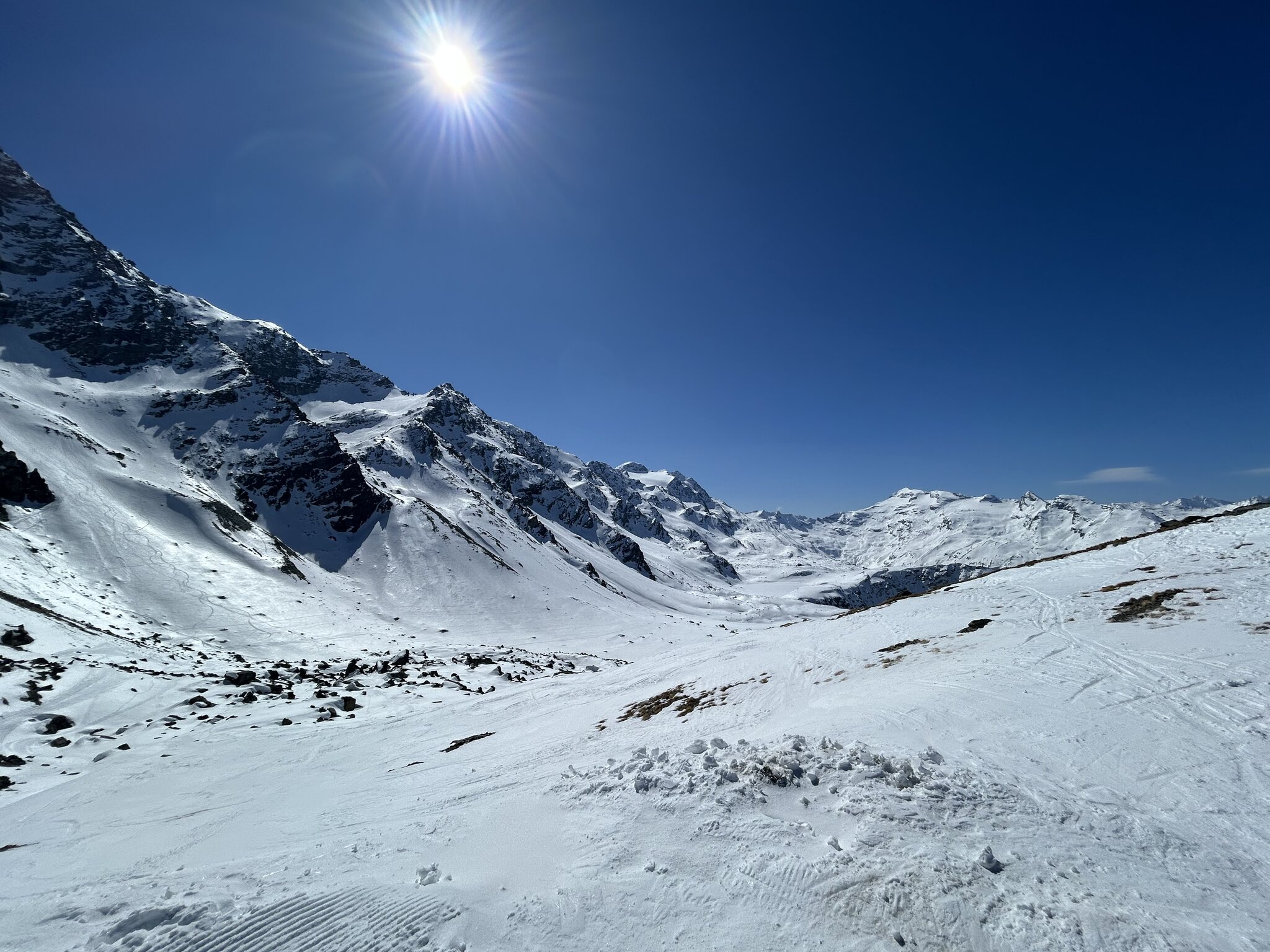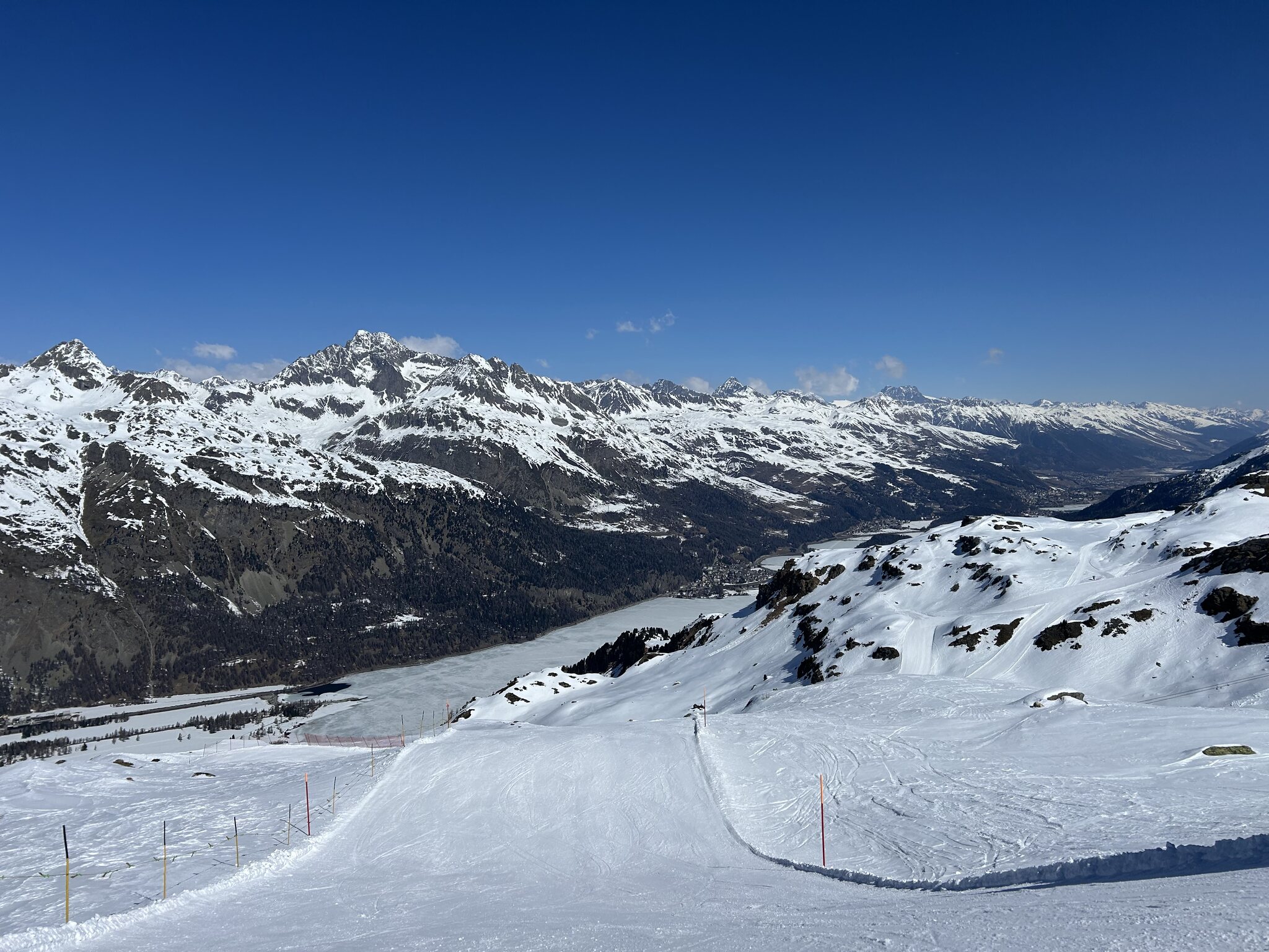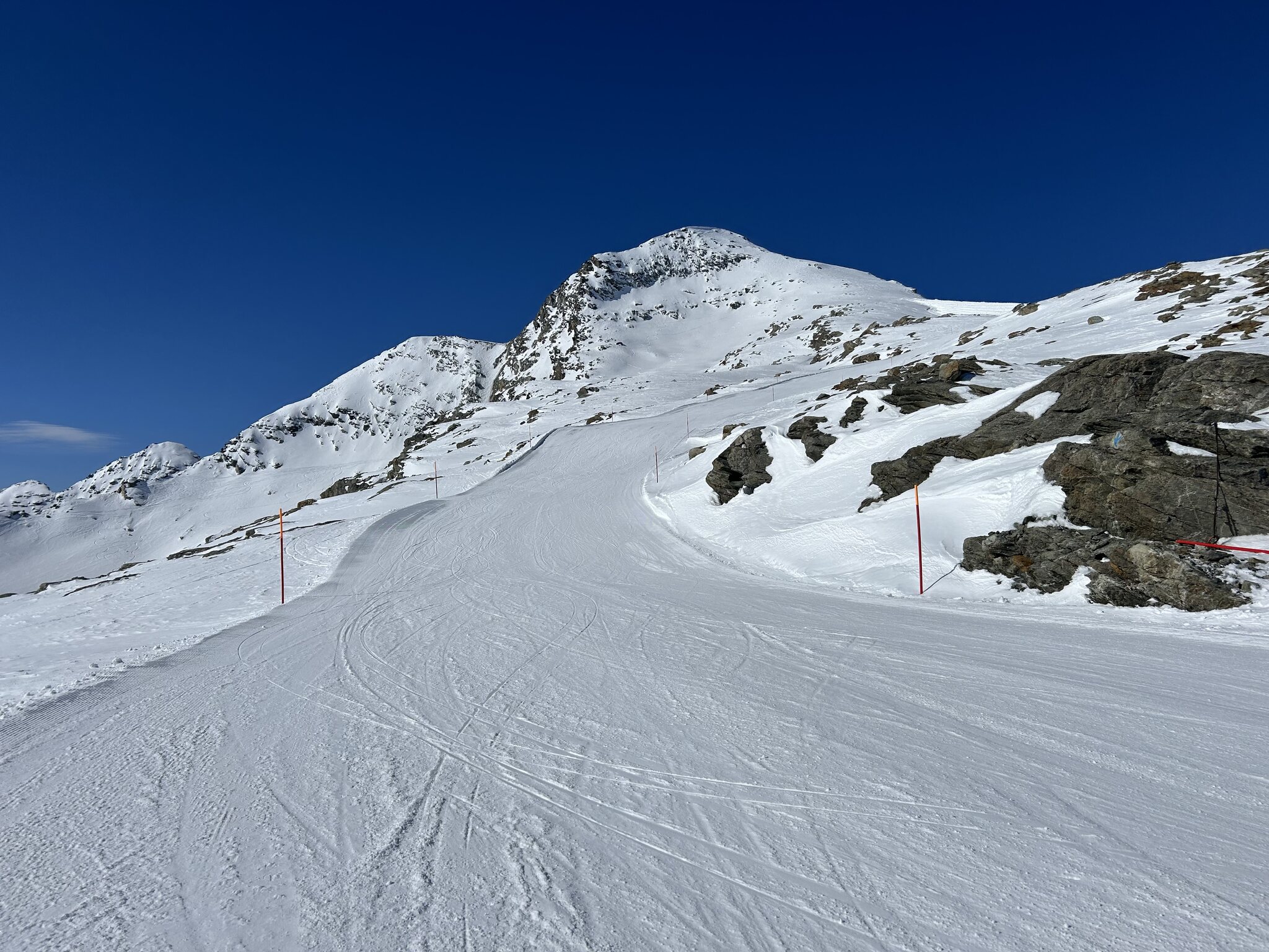 Am Berg herrschte noch Vollbetrieb (ausgenommen die Abfahrt über die Fuorcla Surlej), wobei Gian d‘Alva inklusive Hahnensee ihren letzten Tag hatten. Im Gegensatz zur frühlingshaften Corviglia war hier noch deutlich mehr Winterfeeling. Mal abgesehen von den Talabfahrten gab es keinen Sulz sondern überwiegend harte und pulvrige Pisten. Nur selten waren einzelne Stellen abgefahren.