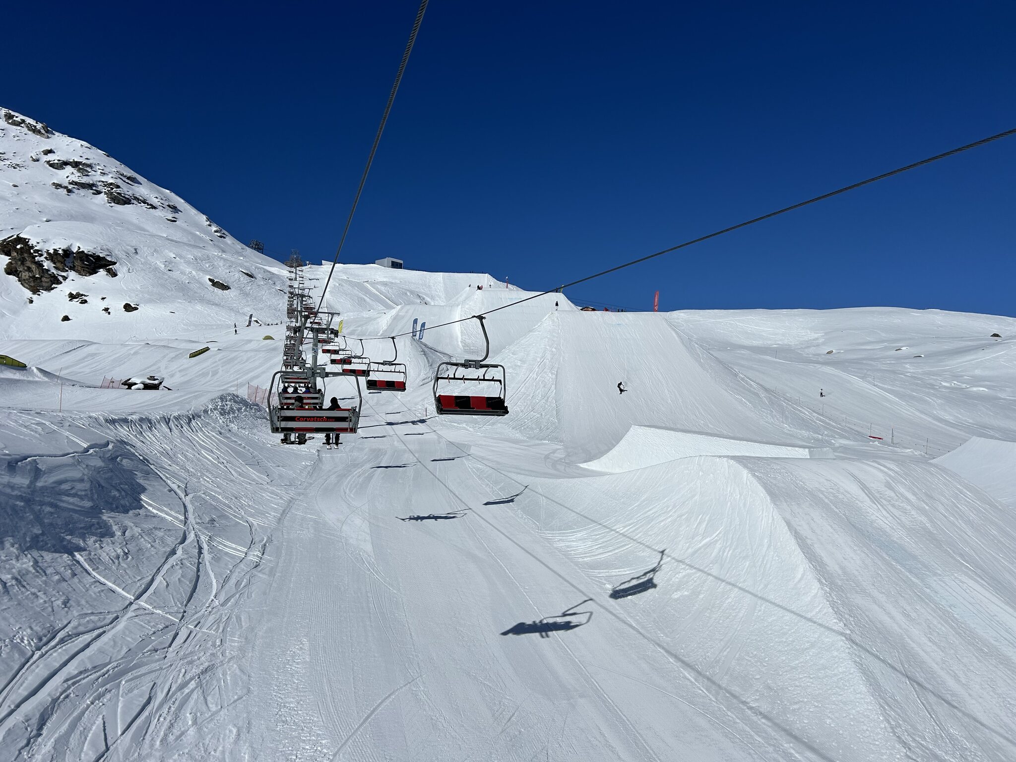 Der einzig gut frequentierte Lift war die 4-SB Mandra: zahlreiche (fast-) Profis und Teams zeigten hier spektakuläre Sprünge und Tricks - noch nie habe ich so viele gute Fahrer im Park gesehen.