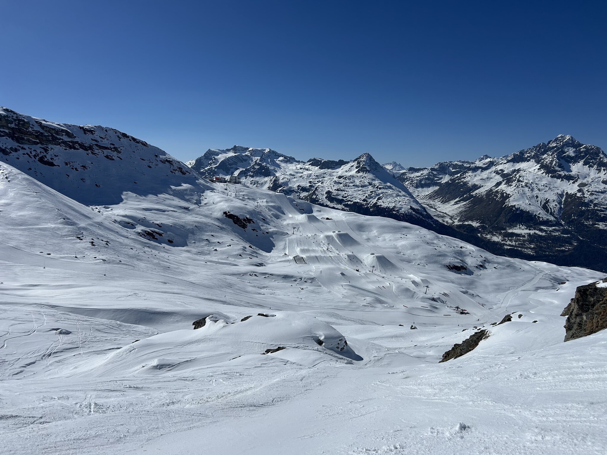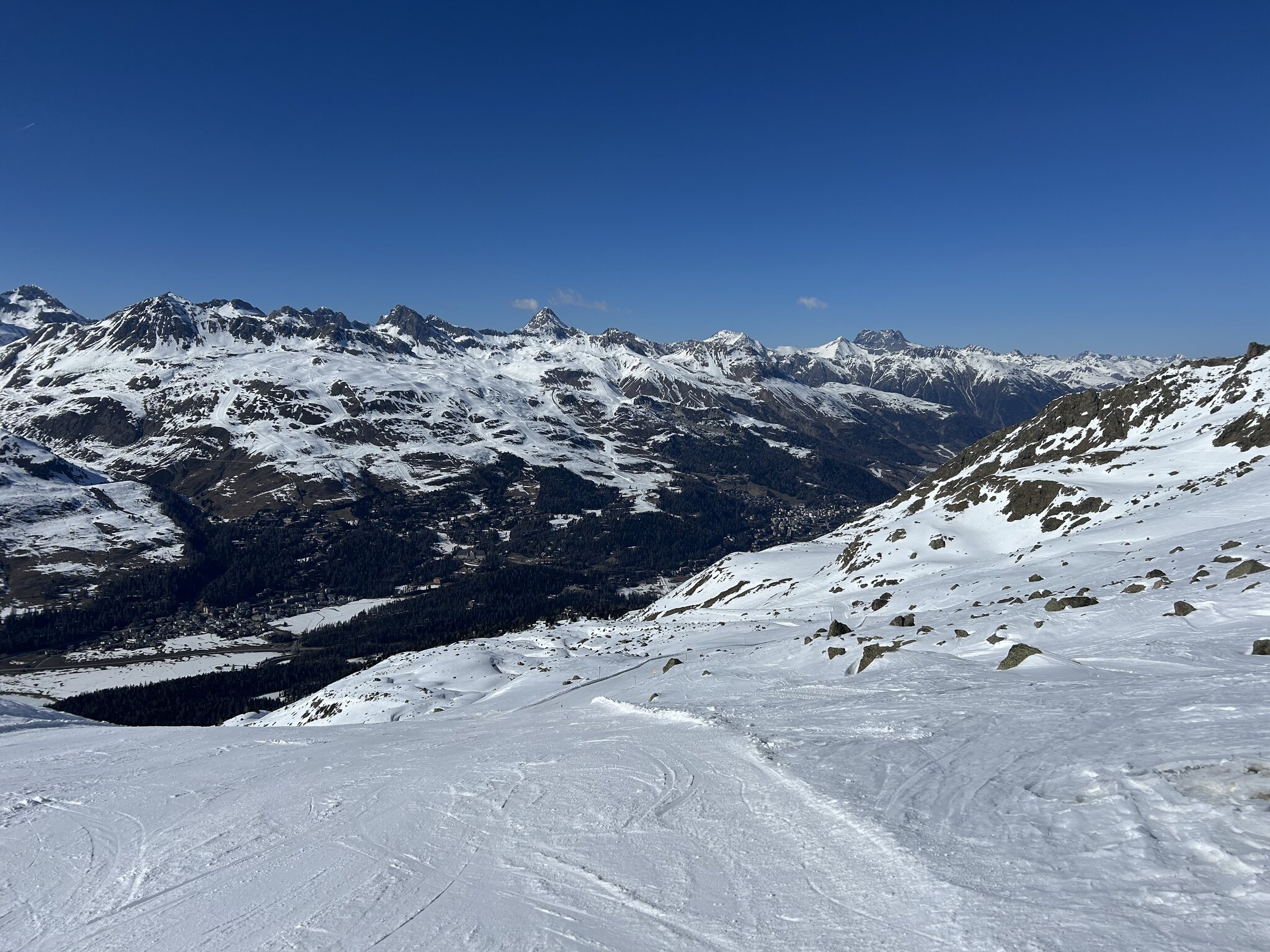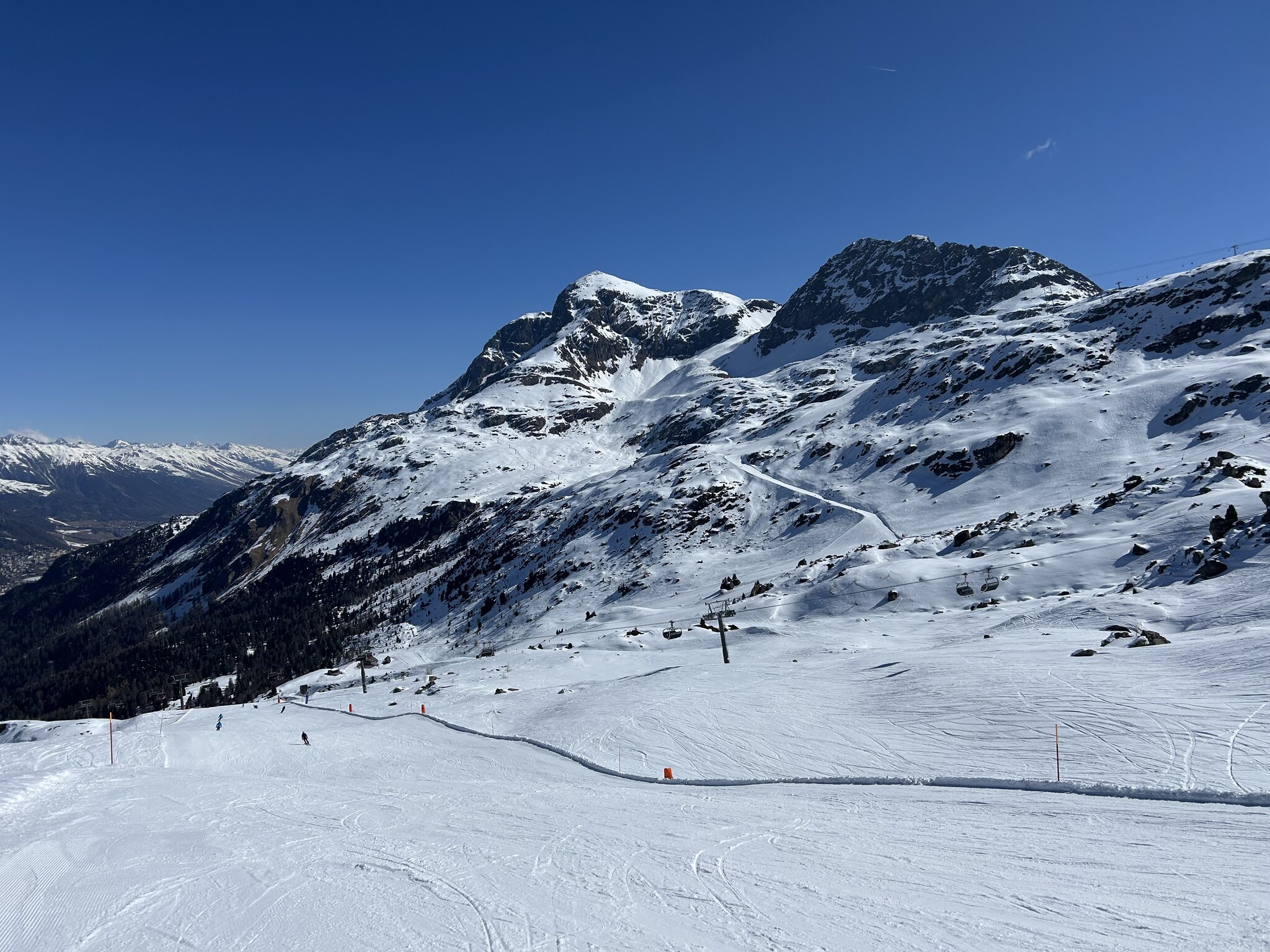 Das Skigebiet gefiel mir außerordentlich gut und zumindest in der Momentaufnahme dieses Wochenende besser als Corviglia. Ich komme wieder.