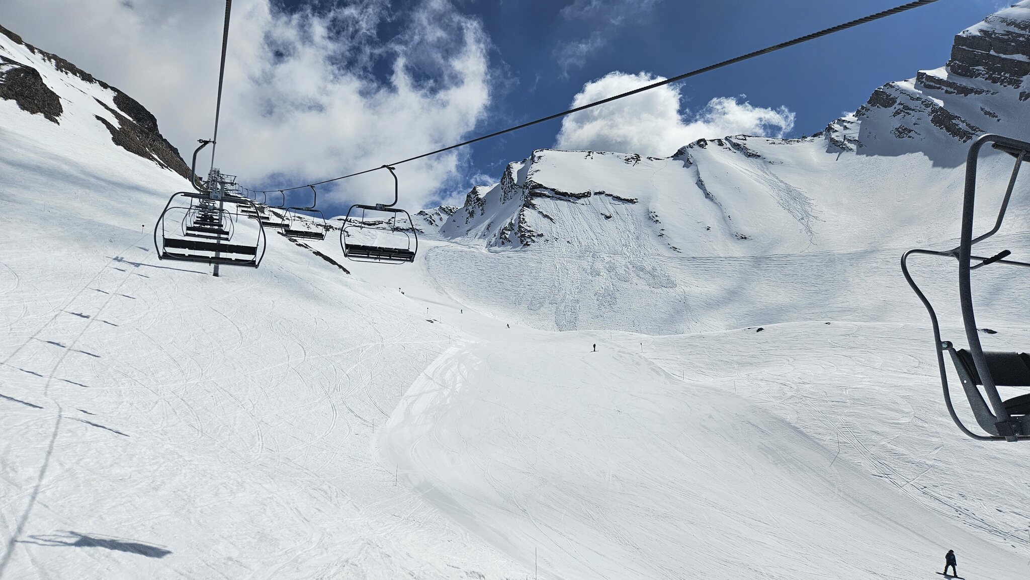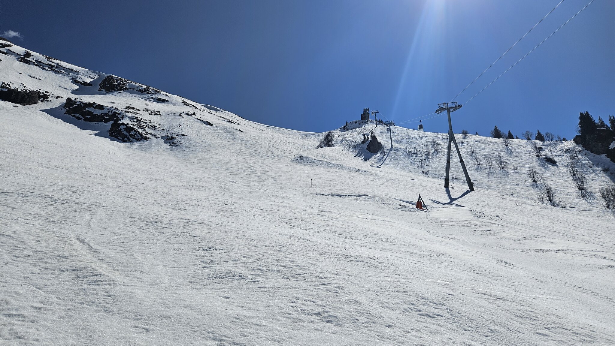 Weiter unten lief sogar noch der Skilift Stade mit der genial aufgefirnten Rennpiste welche ich gleich ein paar Mal gefahren bin