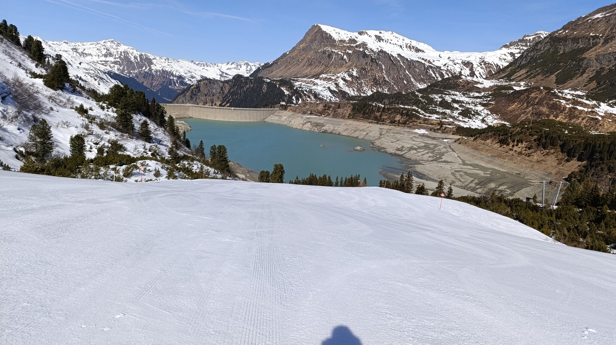 Eben erzählt mir einer in der Gondel, sie lassen den See ab für die Schneeschmelze...