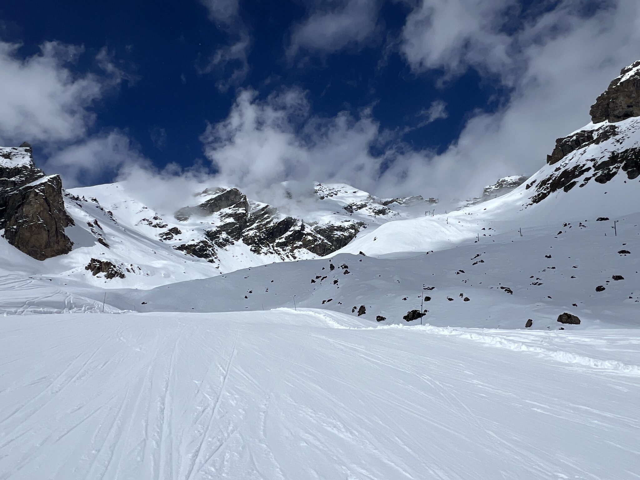 Heute vormittags in Arolla gewesen, die oberen Pisten am Fontanesses 3 noch durchgehend sehr gut in Schuss, untere Etage war morgens sehr hart und dann schnell sehr sulzig.