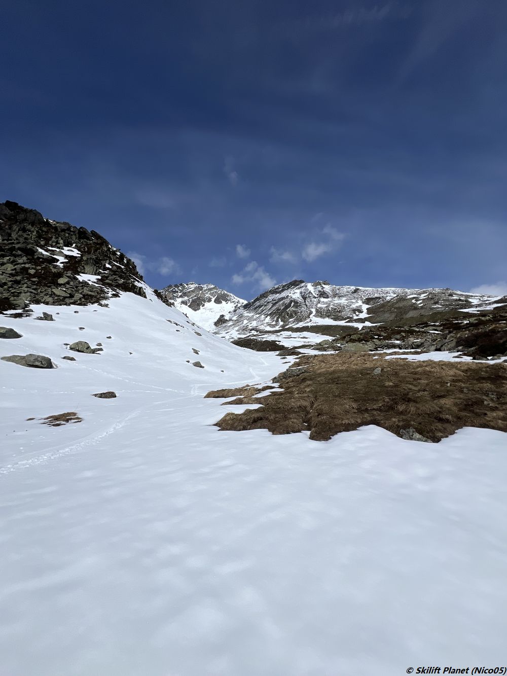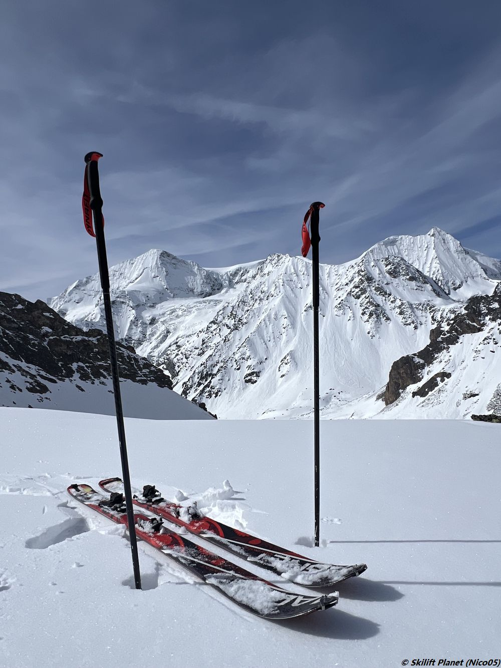 Heute ein wenig Skitouren oberhalb von Arolla, um den einzigen Schönwettertag der Woche zu genießen. Ich parkte das Auto an der Bergstation des SLK Guitza. Dann ein kurzer Aufstieg zu Fuß und dann Skitouren auf der gelben Guitza-Route bis zum Col de La Forcletta. Skiabfahrt über die gelbe Route Pra-Gra und zum schluß zu Fuß über die Almstraße zurück zur Bergstation des SLK Guitza. Sehr gute Skibedingungen, ich bin gegen 10:30 Uhr skiruntergefahren und es war noch sehr gut. Noch genug Schnee zum Skifahren, wirklich super. Viele Murmeltiere, Steinböcke und sogar ein Birkhuhn.