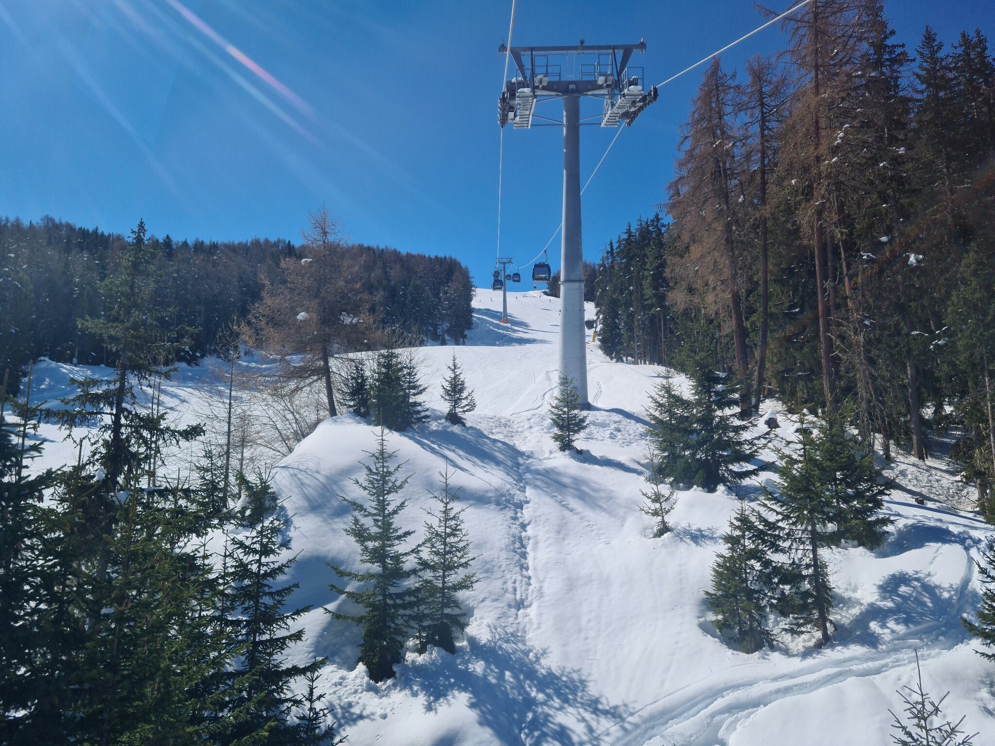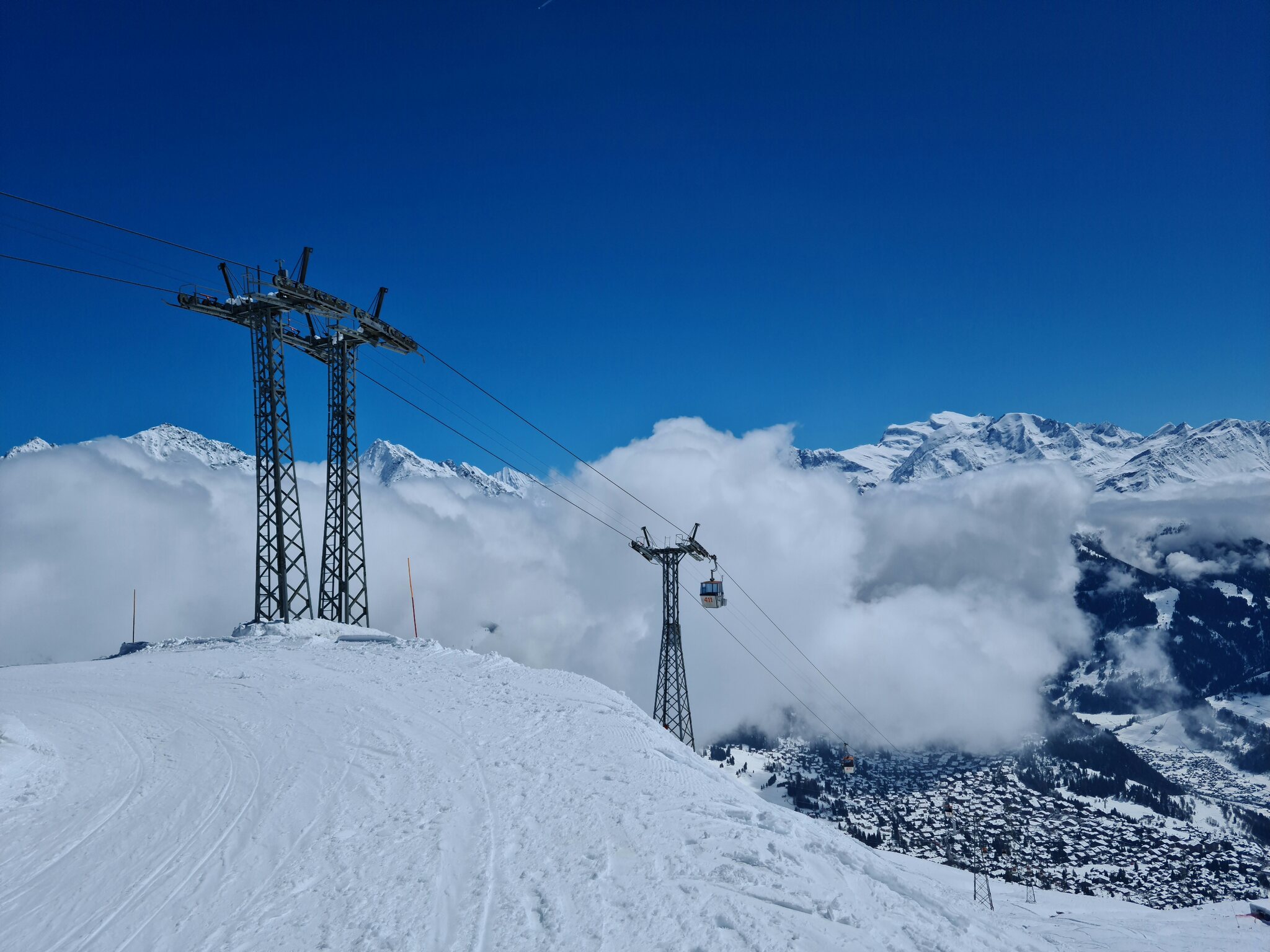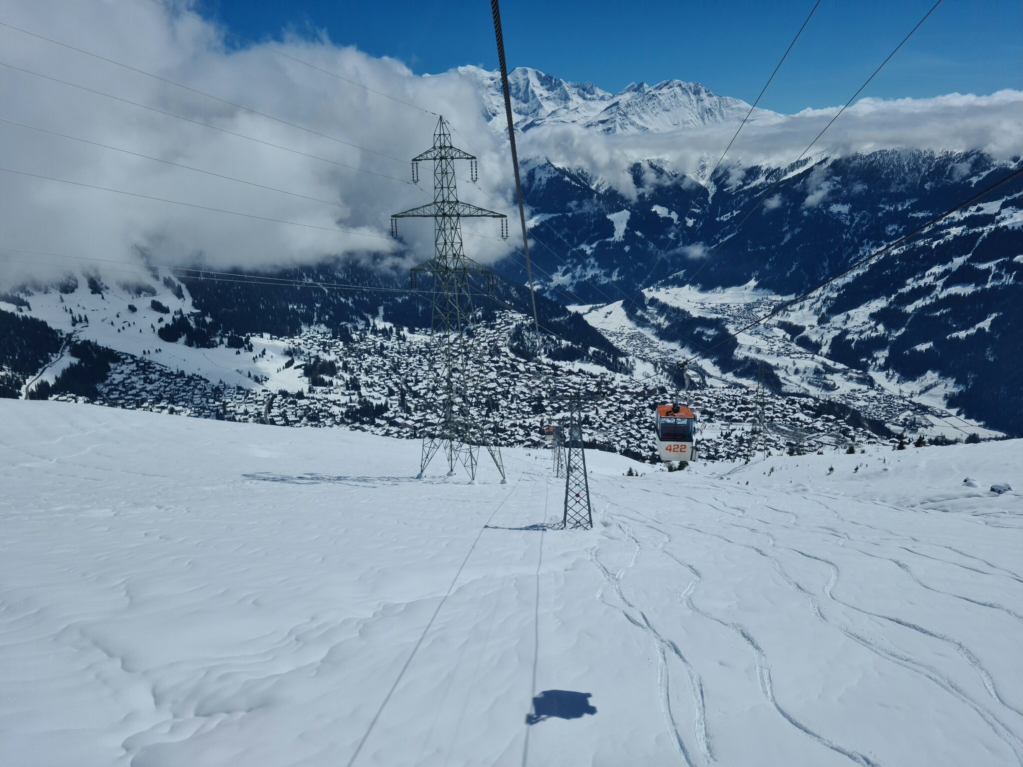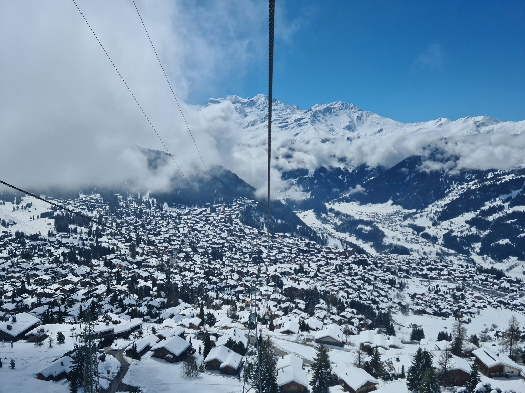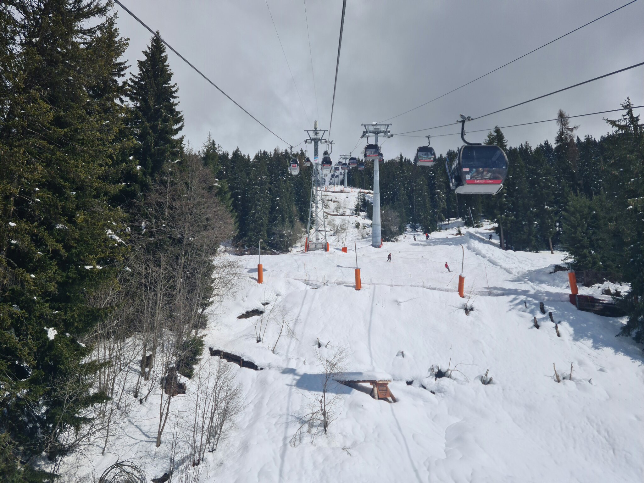 #1- In der Kabinenbahn Le Châble-Verbier. Vor ein paar Tagen hätte ich nicht gedacht, dass es so tief runter schneit.