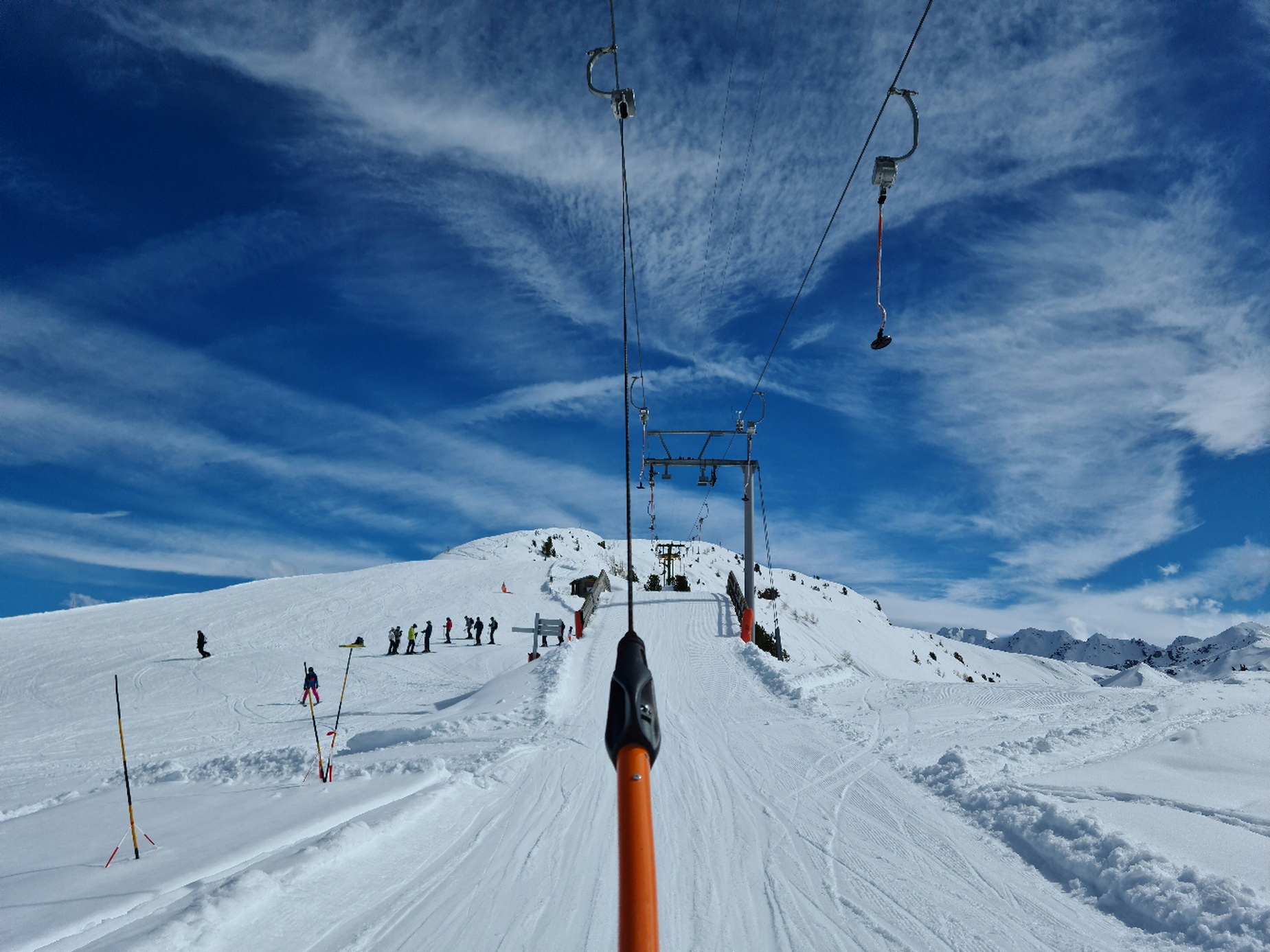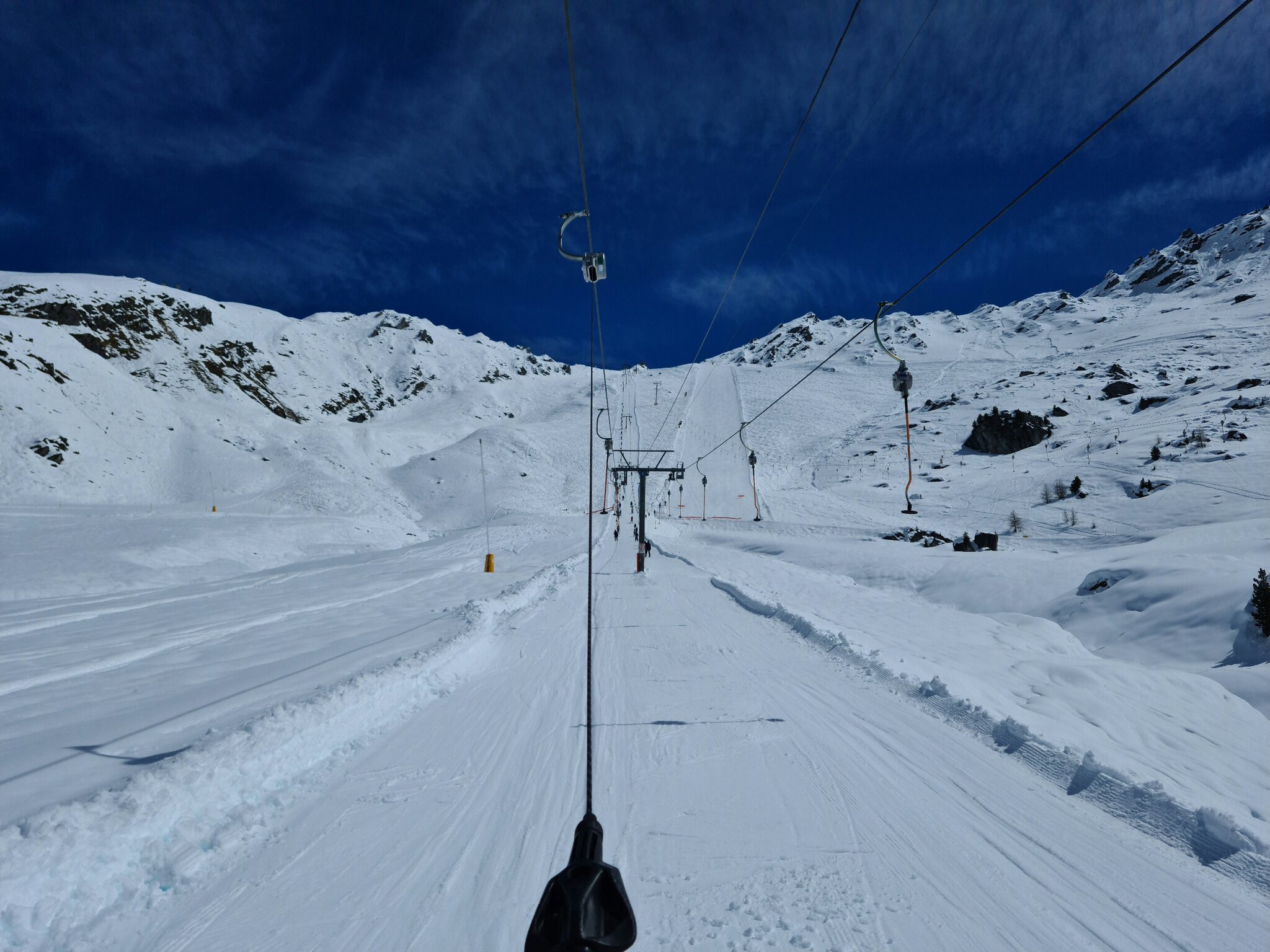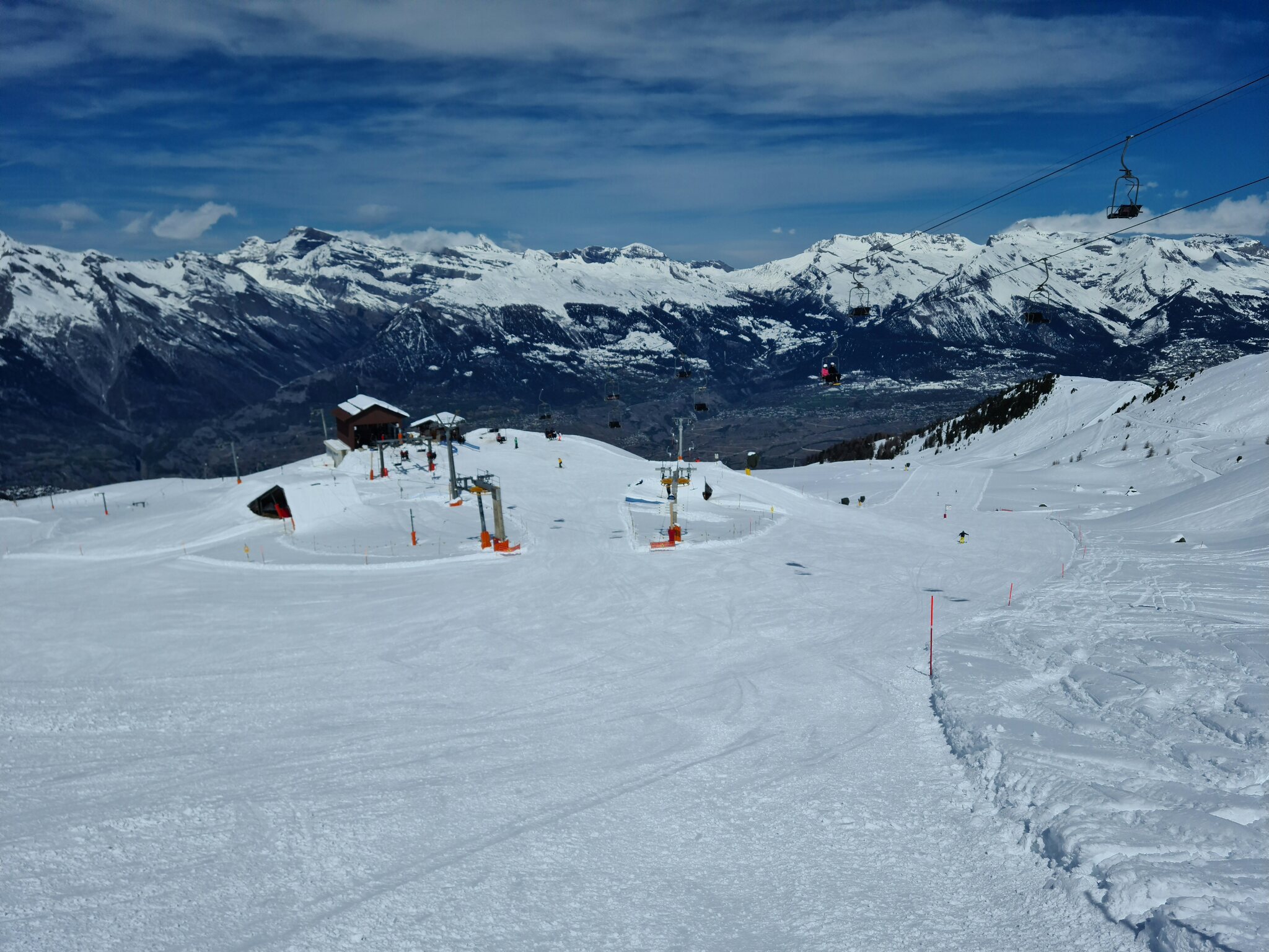 #13- Nach einer Fahrt mit dem Schlepplift Cheminée fuhr ich weiter in Richtung La Tsa. Genial, der Ausblick von Schlepplift zu Schlepplift, besonders mit den dahinterliegenden Schleppliften Les Chottes und Greppon Blanc!