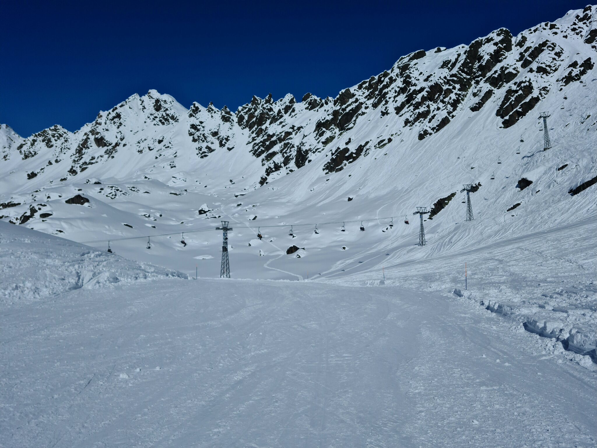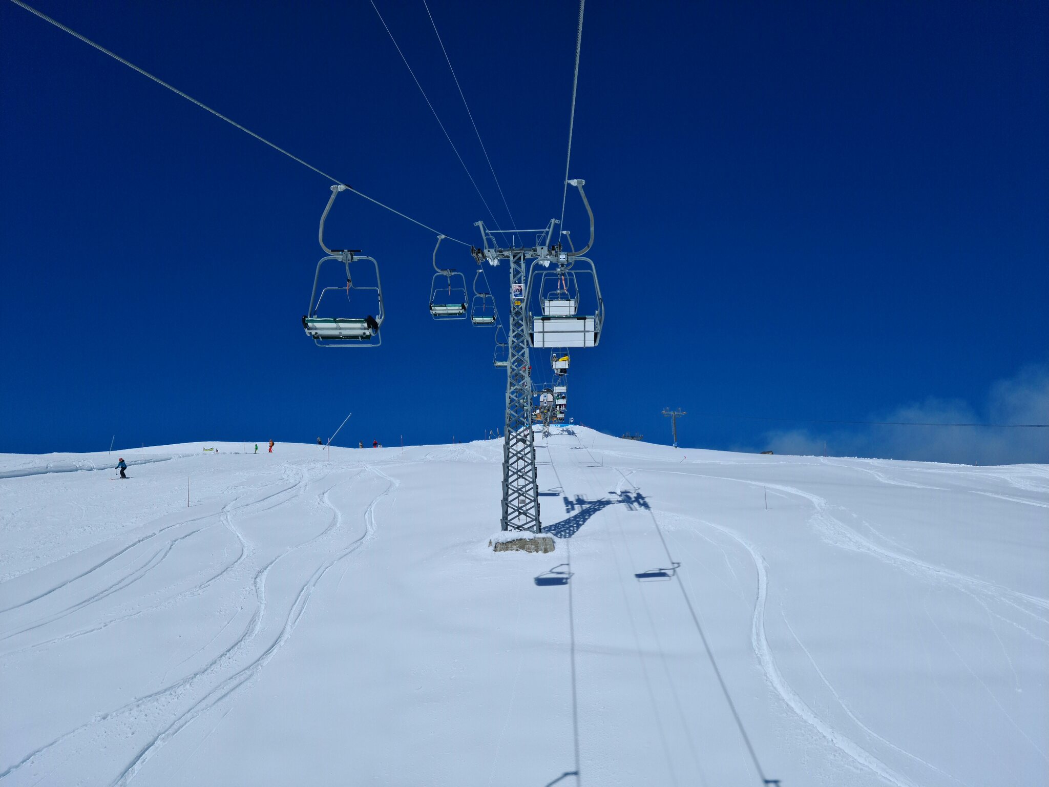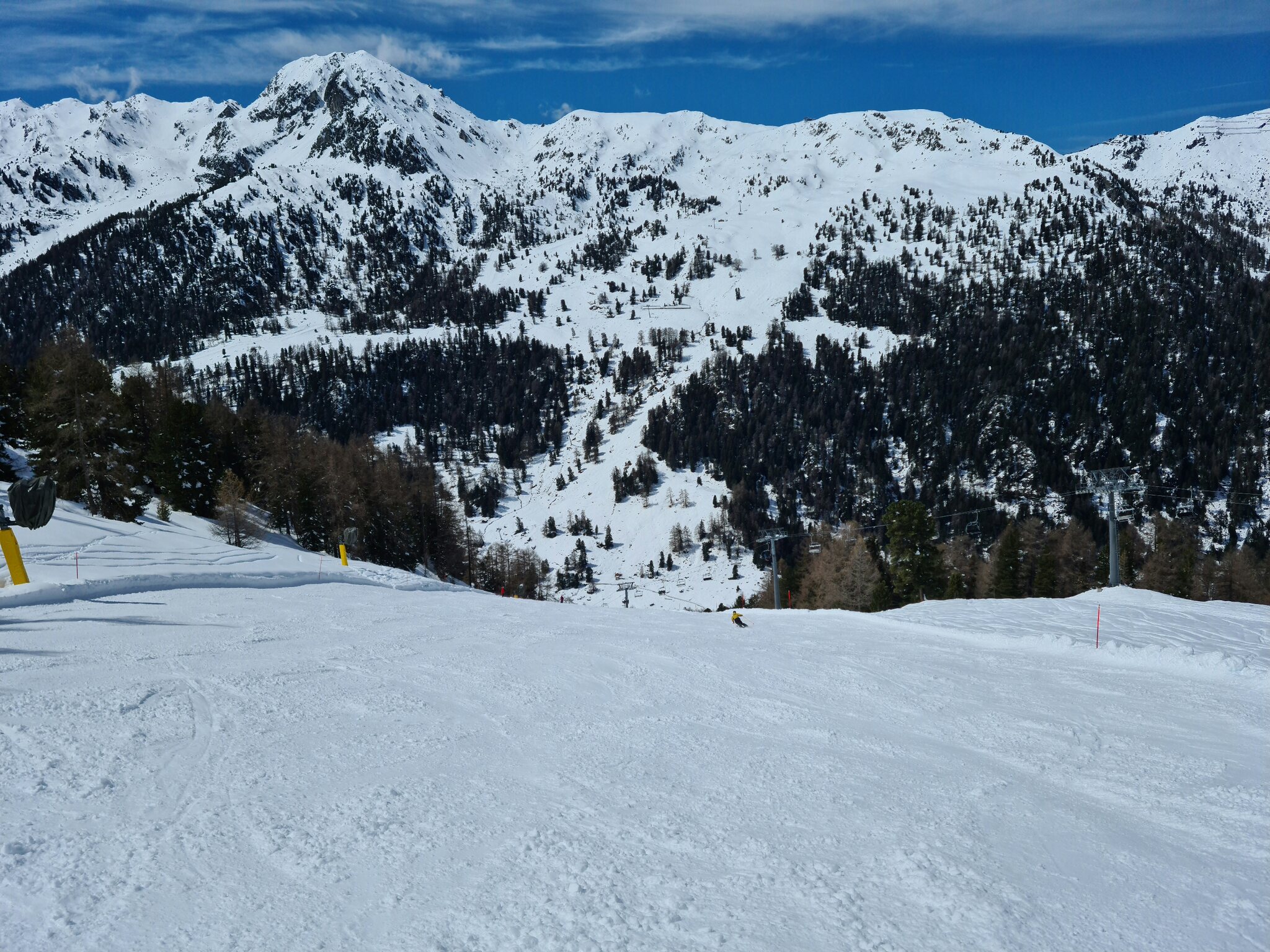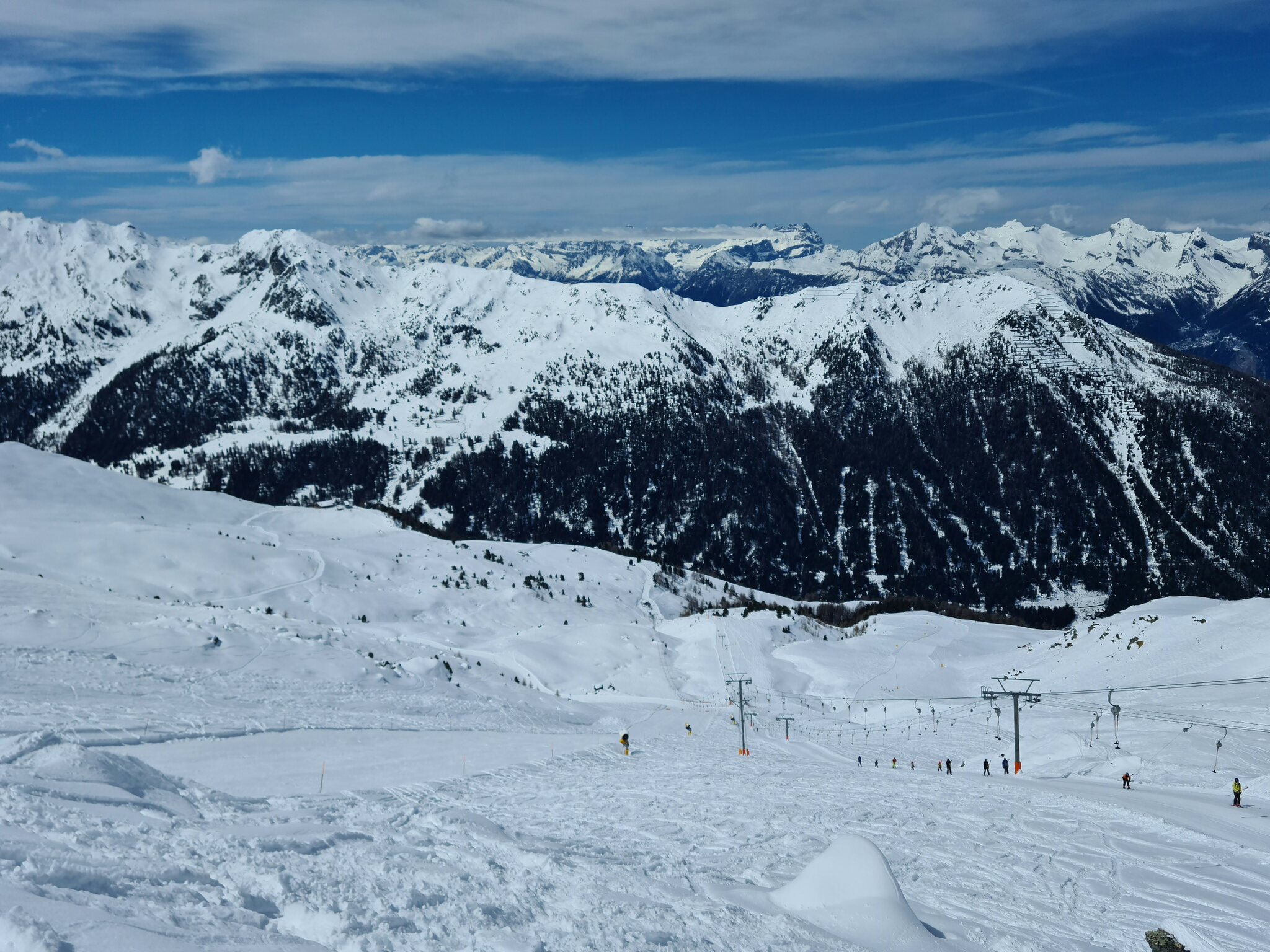 #13- Nach einer Fahrt mit dem Schlepplift Cheminée fuhr ich weiter in Richtung La Tsa. Genial, der Ausblick von Schlepplift zu Schlepplift, besonders mit den dahinterliegenden Schleppliften Les Chottes und Greppon Blanc!