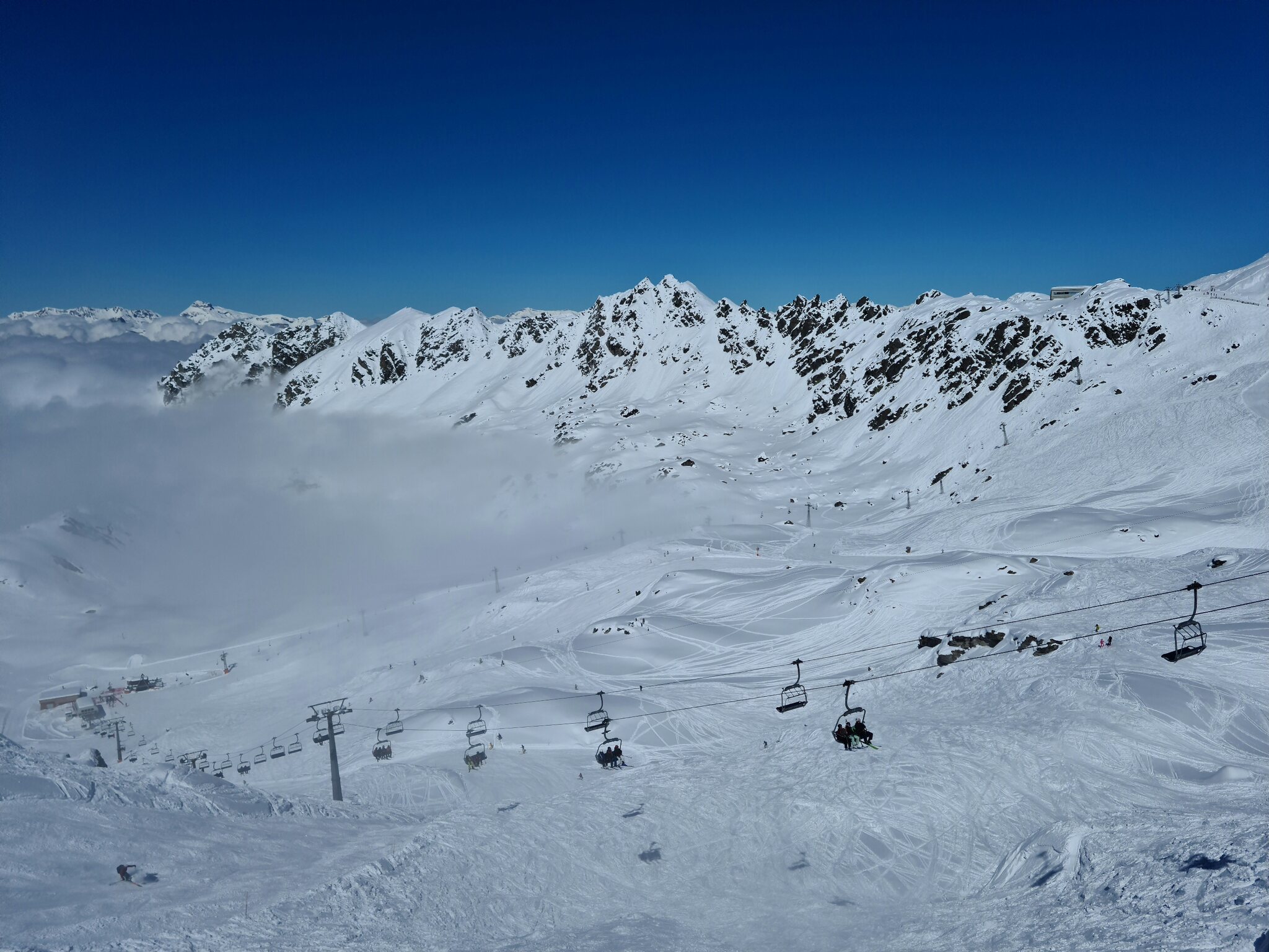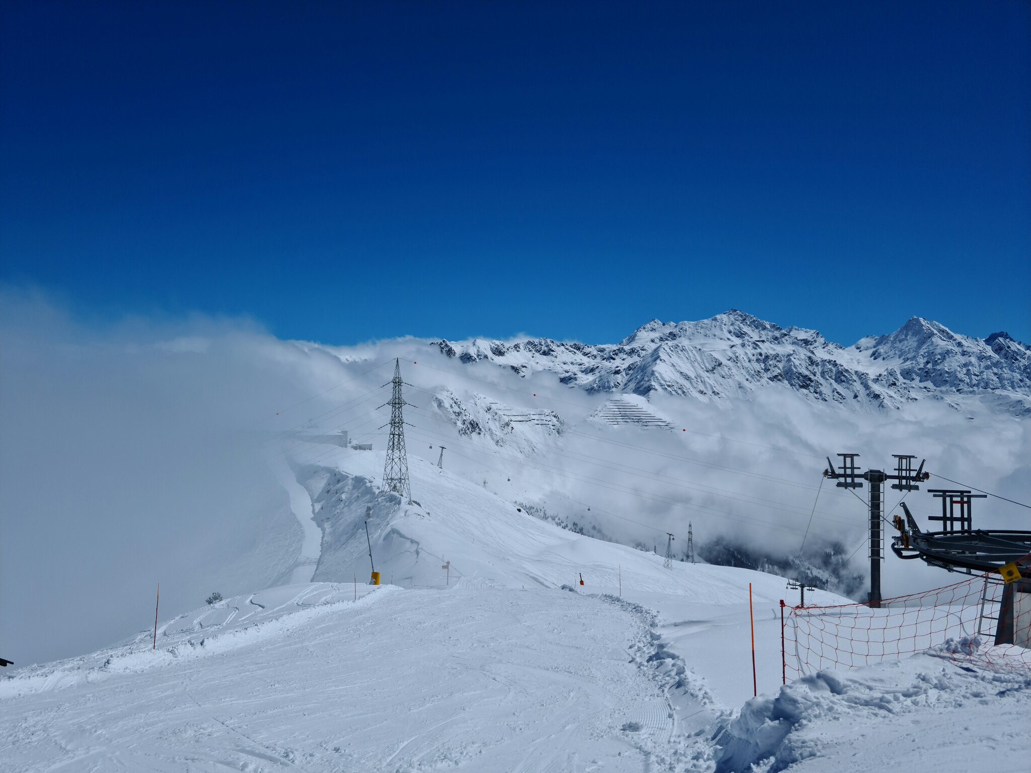 #12&13- Während ich auf der Südseite im Sonnenschein fahre, ist die Nordseite im Nebel. Also gleich nochmal zur Sesselbahn La Tournelle!