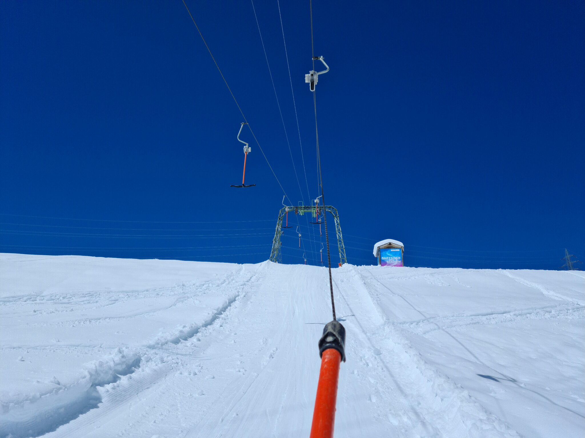 #10- Nach einer Bergfahrt mit der EUB ging es zum Schlepplift Joc. Er fährt, wie die meisten Schlepplifte in diesem Bereich, recht schnell. Und auch ein Lift von Bühler. ;)