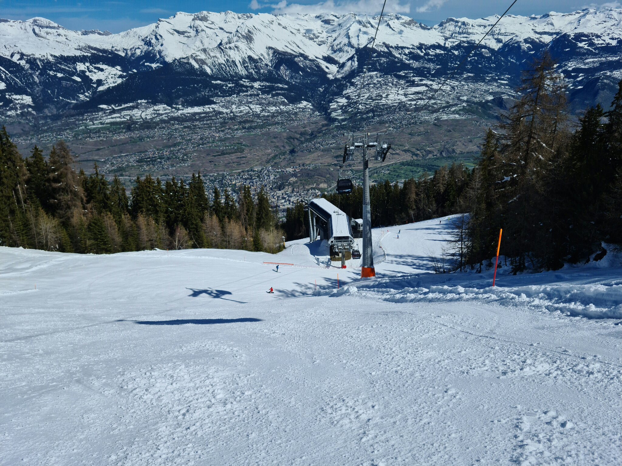 #2- Die Piste des Schlepplifts Cheminée. Sie war am Morgen noch sehr hart, zählte dafür am Nachmittag noch zu den Besten. Ach ja: Der Tiefblick ins Rhônetal ist natürlich auch da! :D