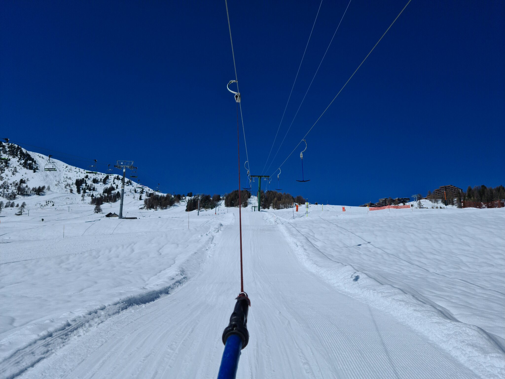 #15- Weiter geht's im Schlepplift Les Chottes. Er ist deutlich länger als der Schlepplift La Tsa, gefühlt aber auch flacher. Zusammen mit dem Schlepplift La Meina und der Sesselbahn Greppon Blanc 3 soll er aber 2026 durch eine Sechsersesselbahn ersetzt werden.