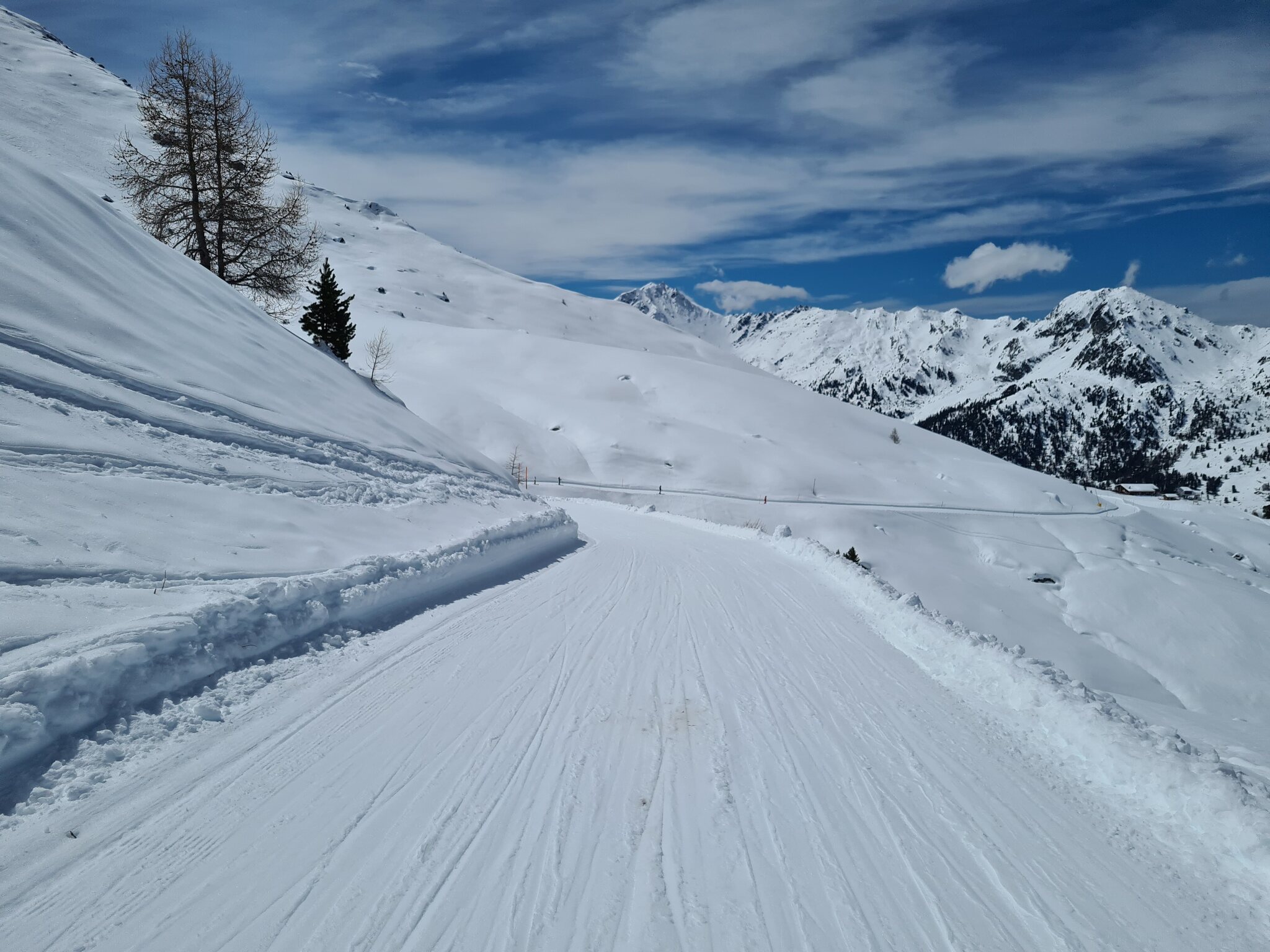 #2- Näher an Verbier wird die zwischenzeitlich steile Trassierung wieder flacher und die Schneedecke langsam dicker.
