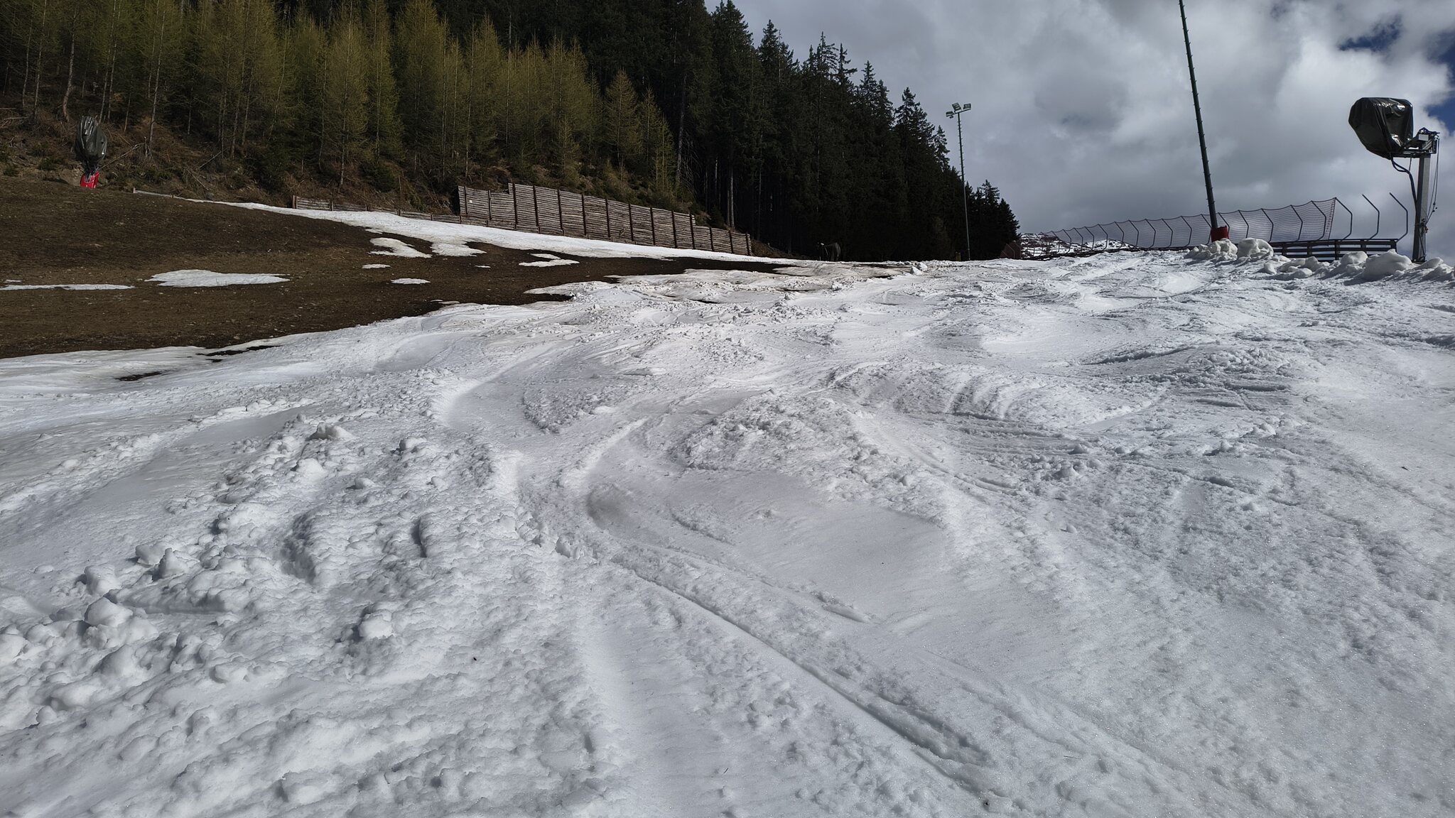 Krass wie schnell es überall den Schnee weggezogen hat. Der nur wenig vorhandene Naturschnee war gleich weg, aber wie schnell es die beschneiten Pisten weggefressen hat kommt mir dieses Jahr extrem schnell vor.