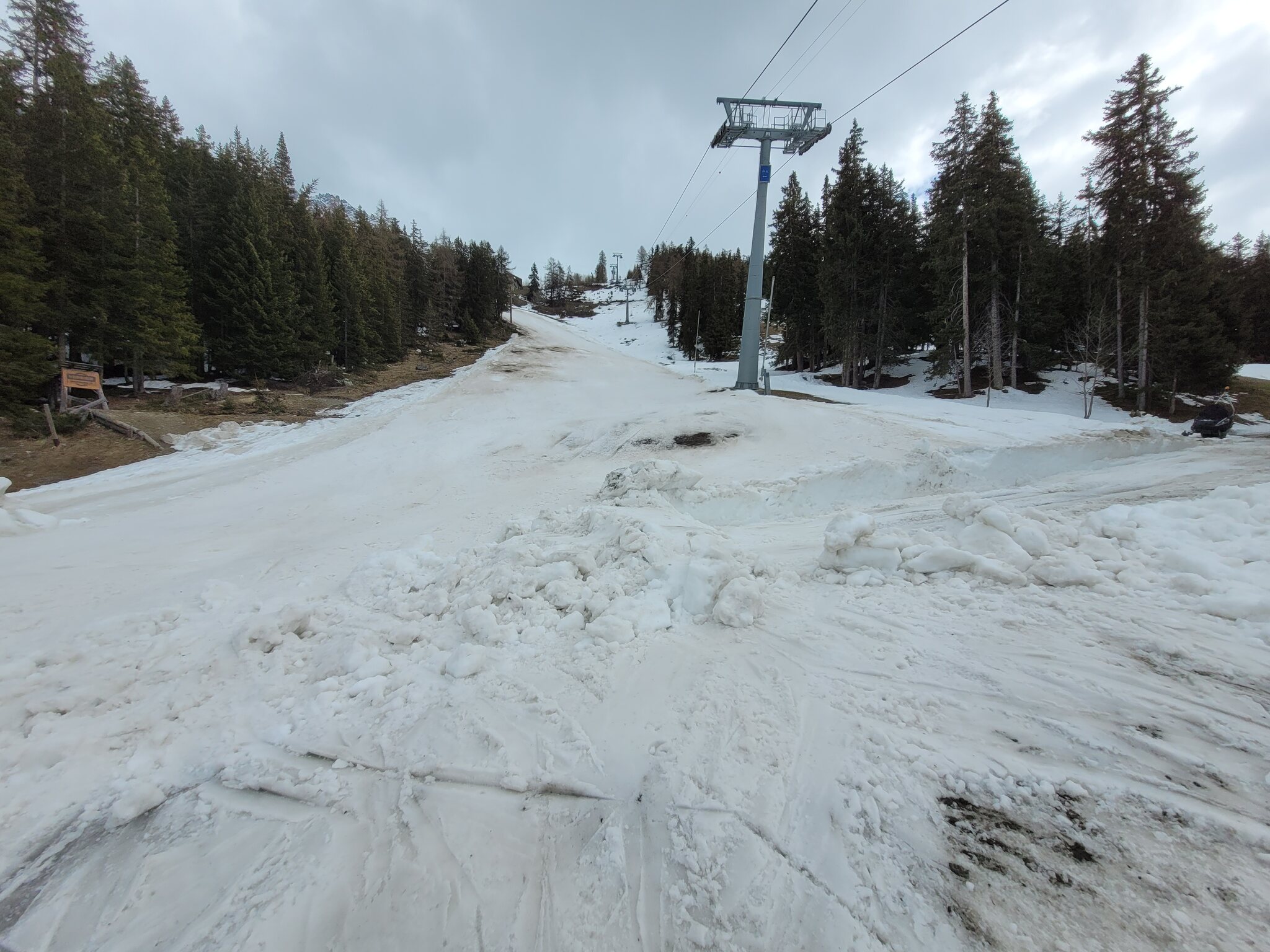 Da war dann an der gezeigten Stelle wirklich kaum noch Schnee und man glitt quasi über Wasser und das auf einer vllt 3-4 Ski-breiten Stelle, der Rest war weg.