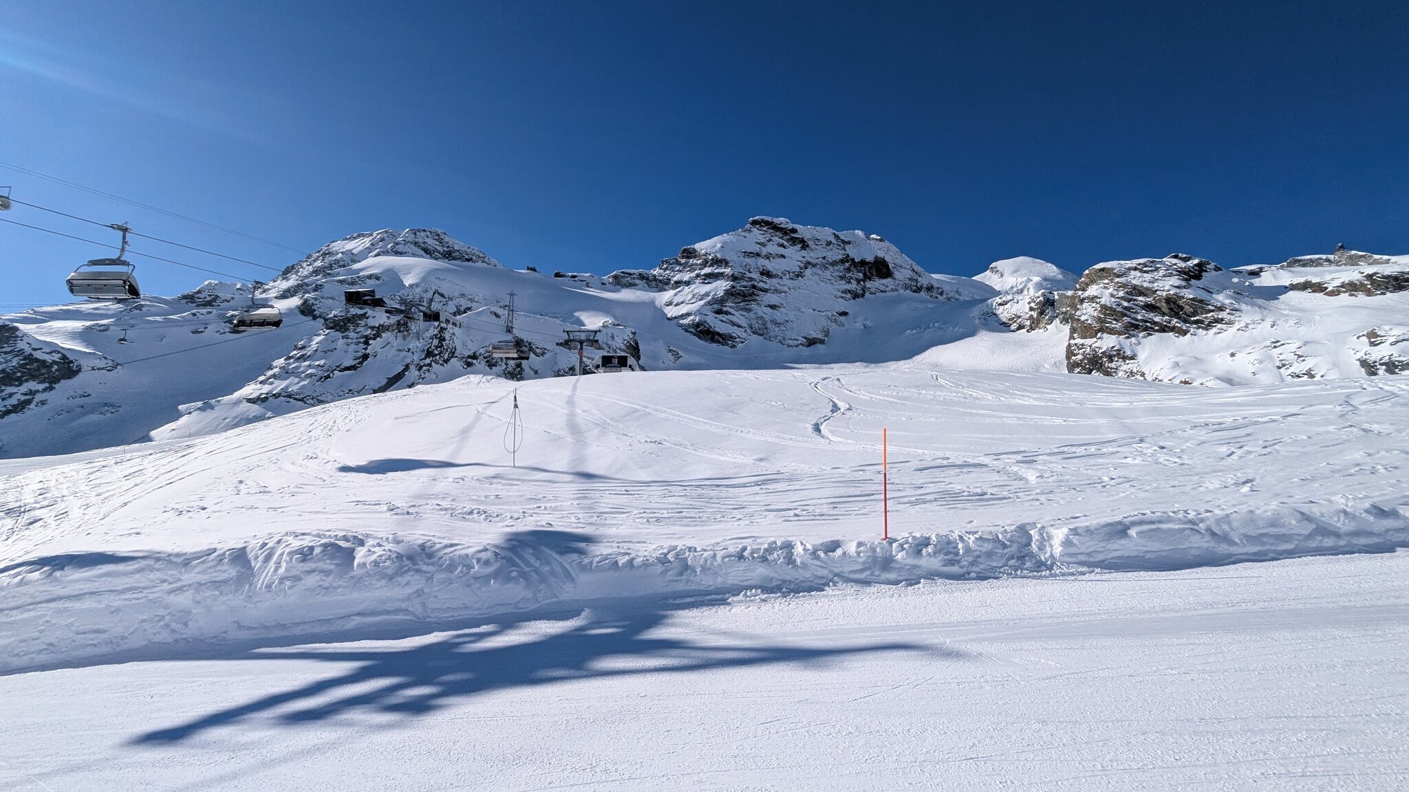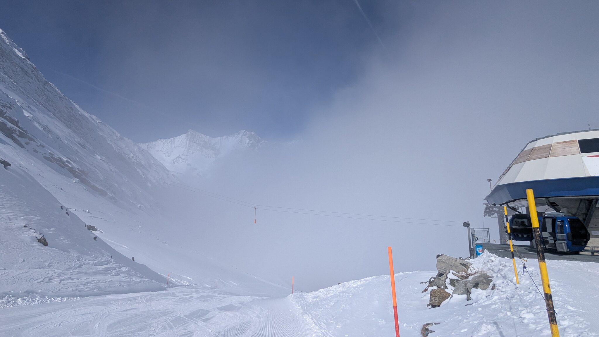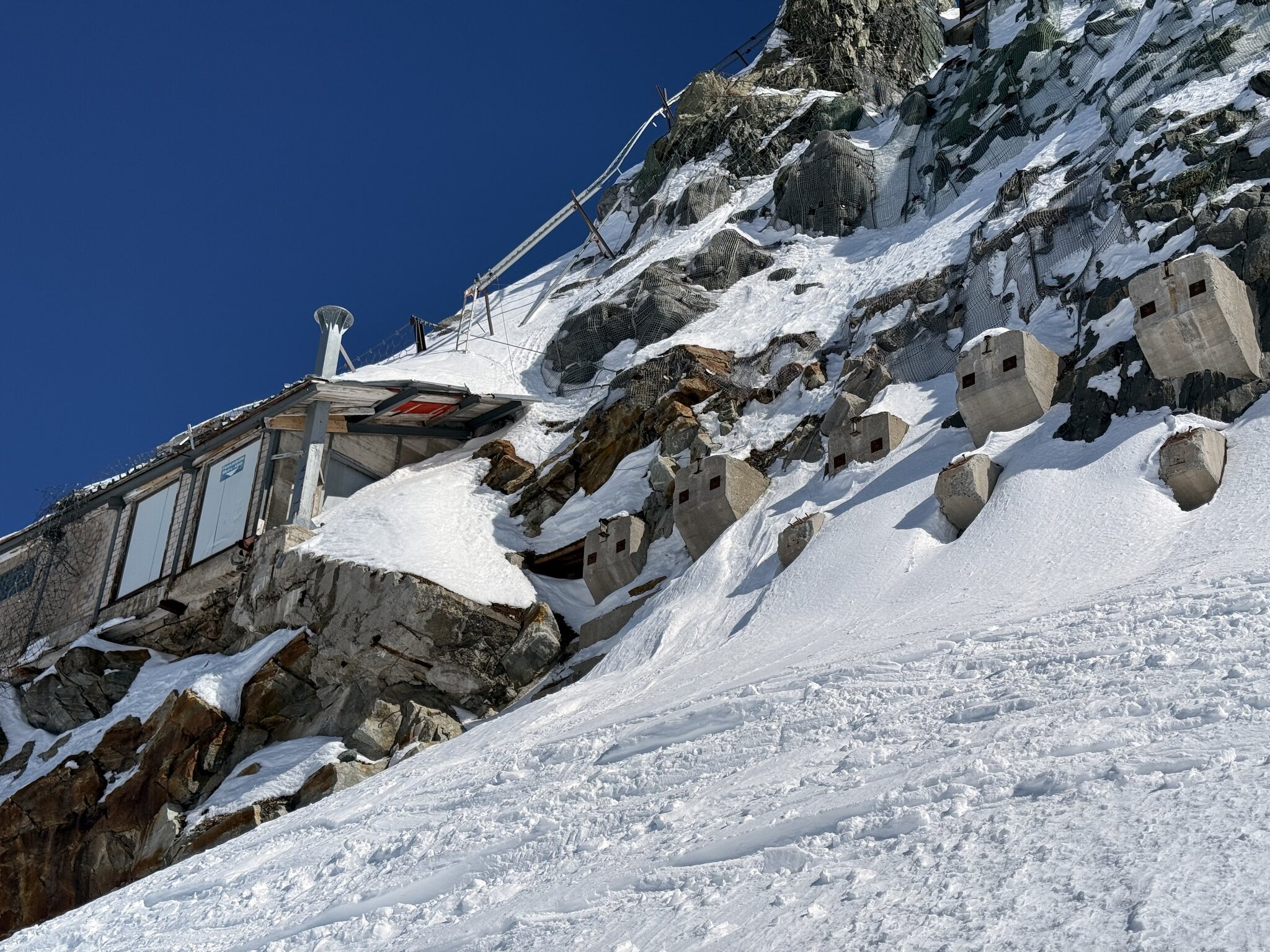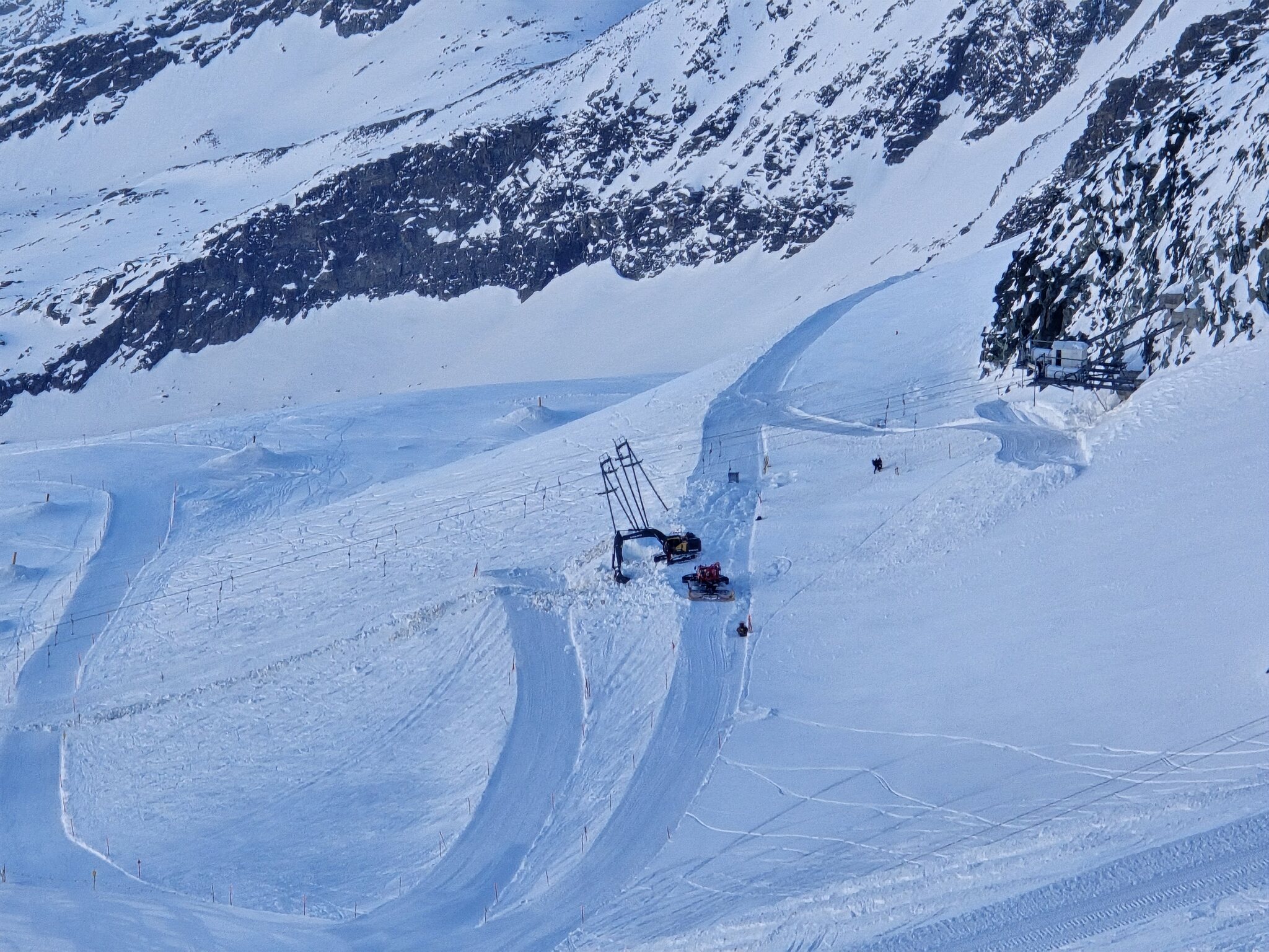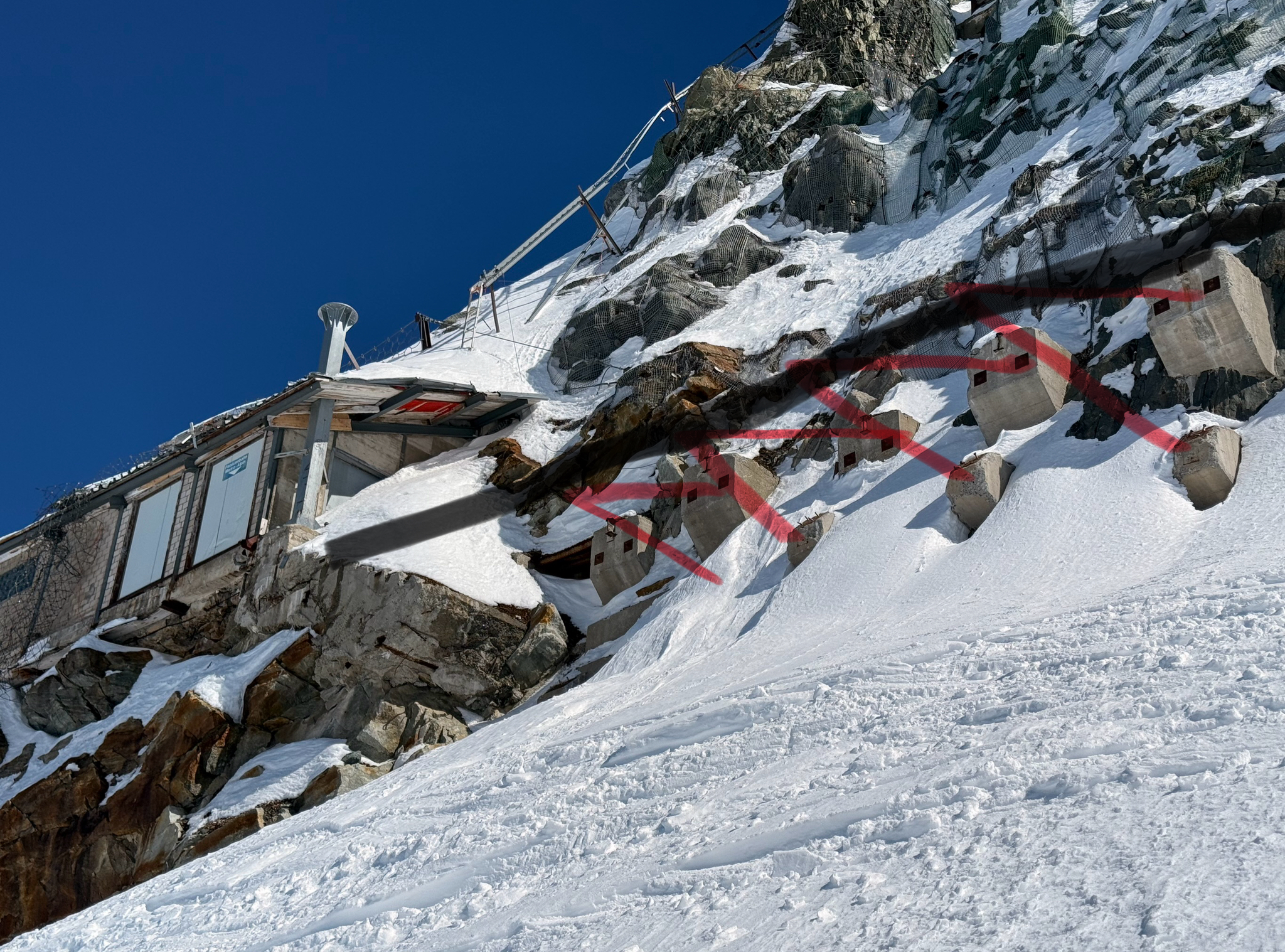 Eigentlich sollte ja jetzt mit Gletscherschwund auch die Lawinengefahr längs der nach rechts führenden ehemaligen blauen Piste besser sein.