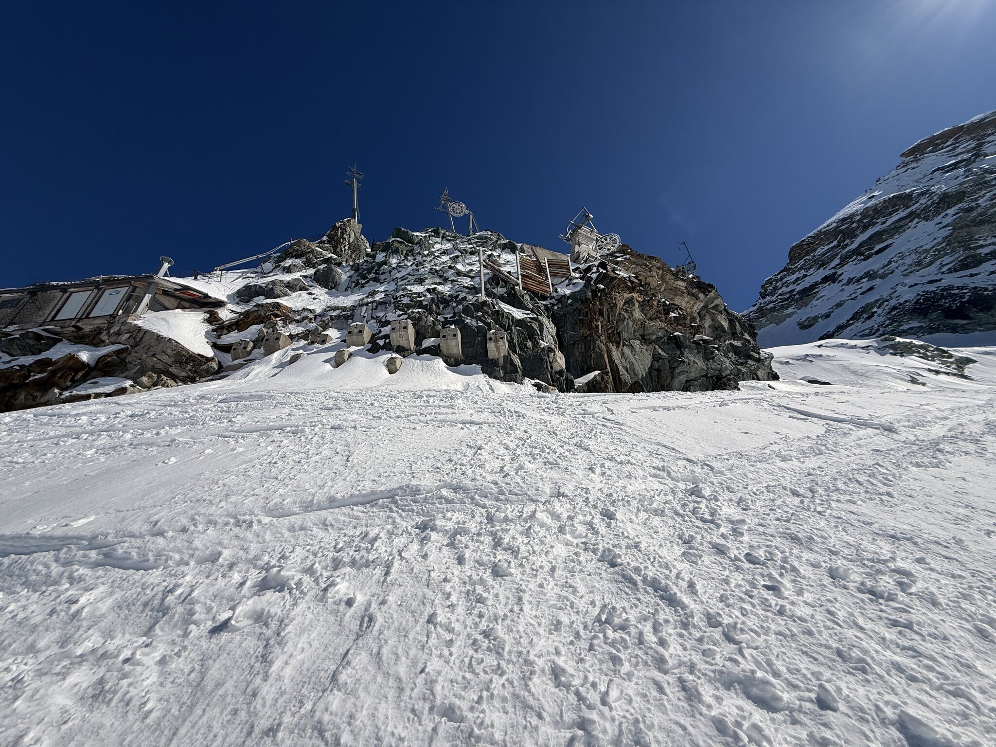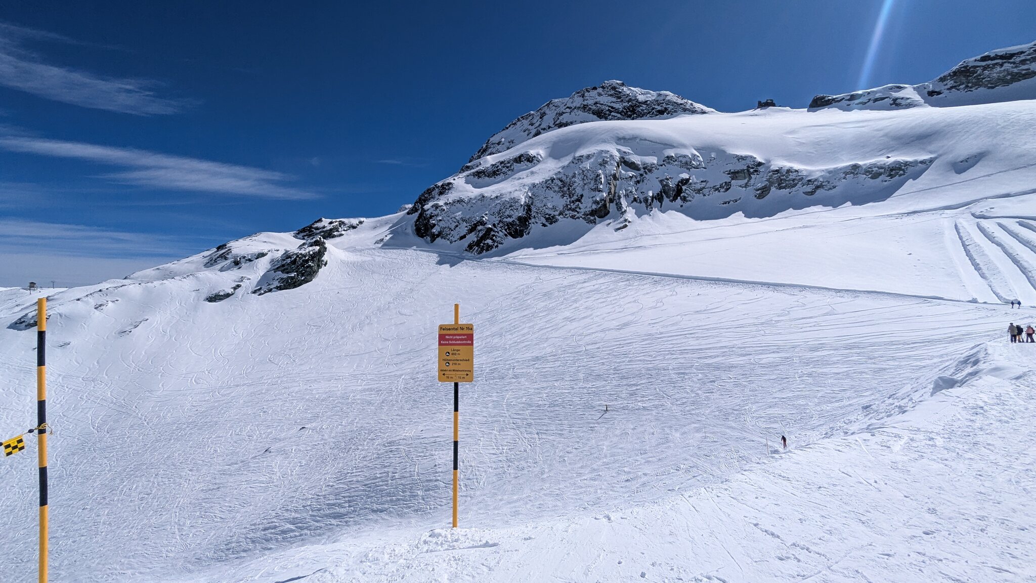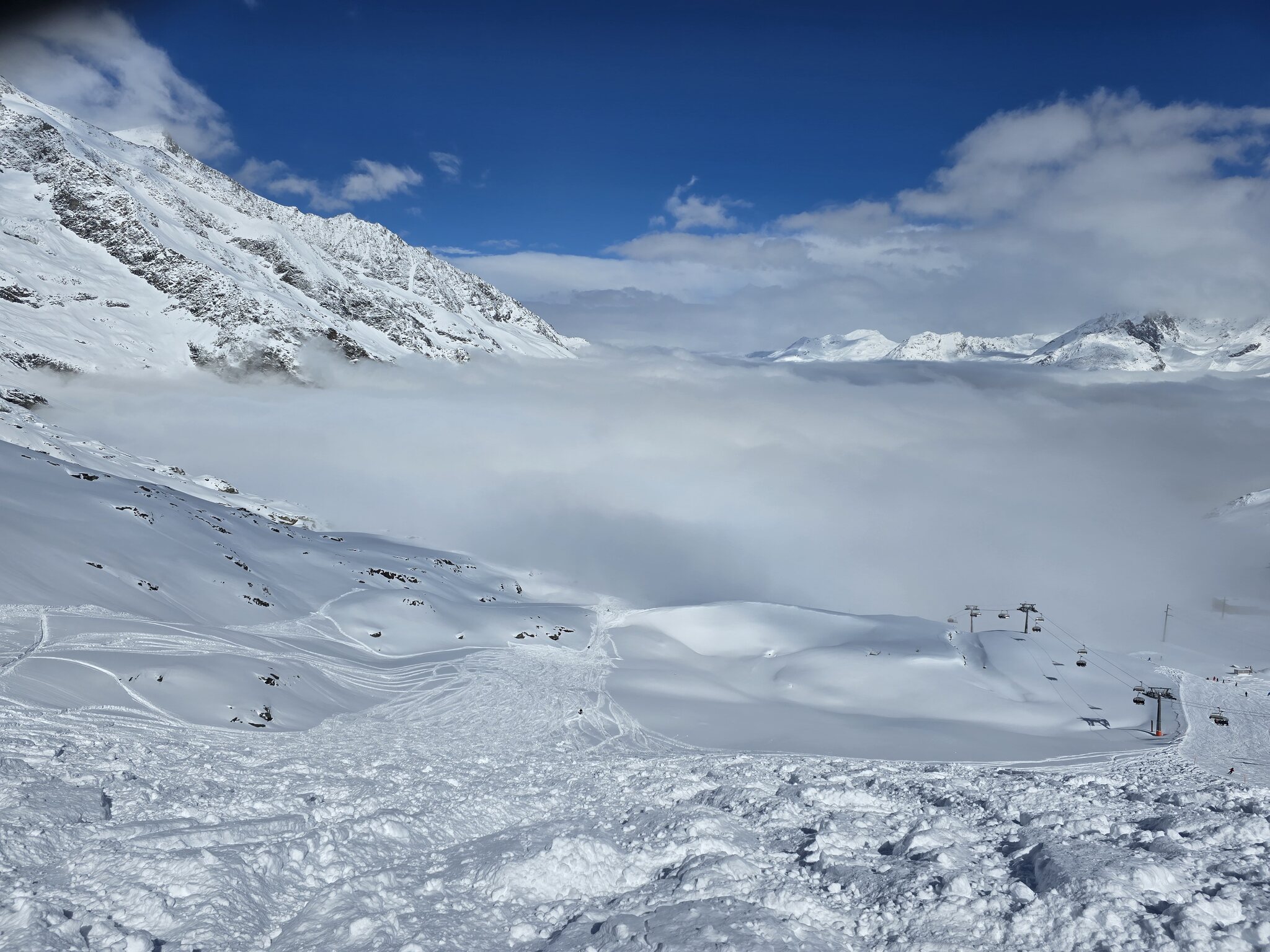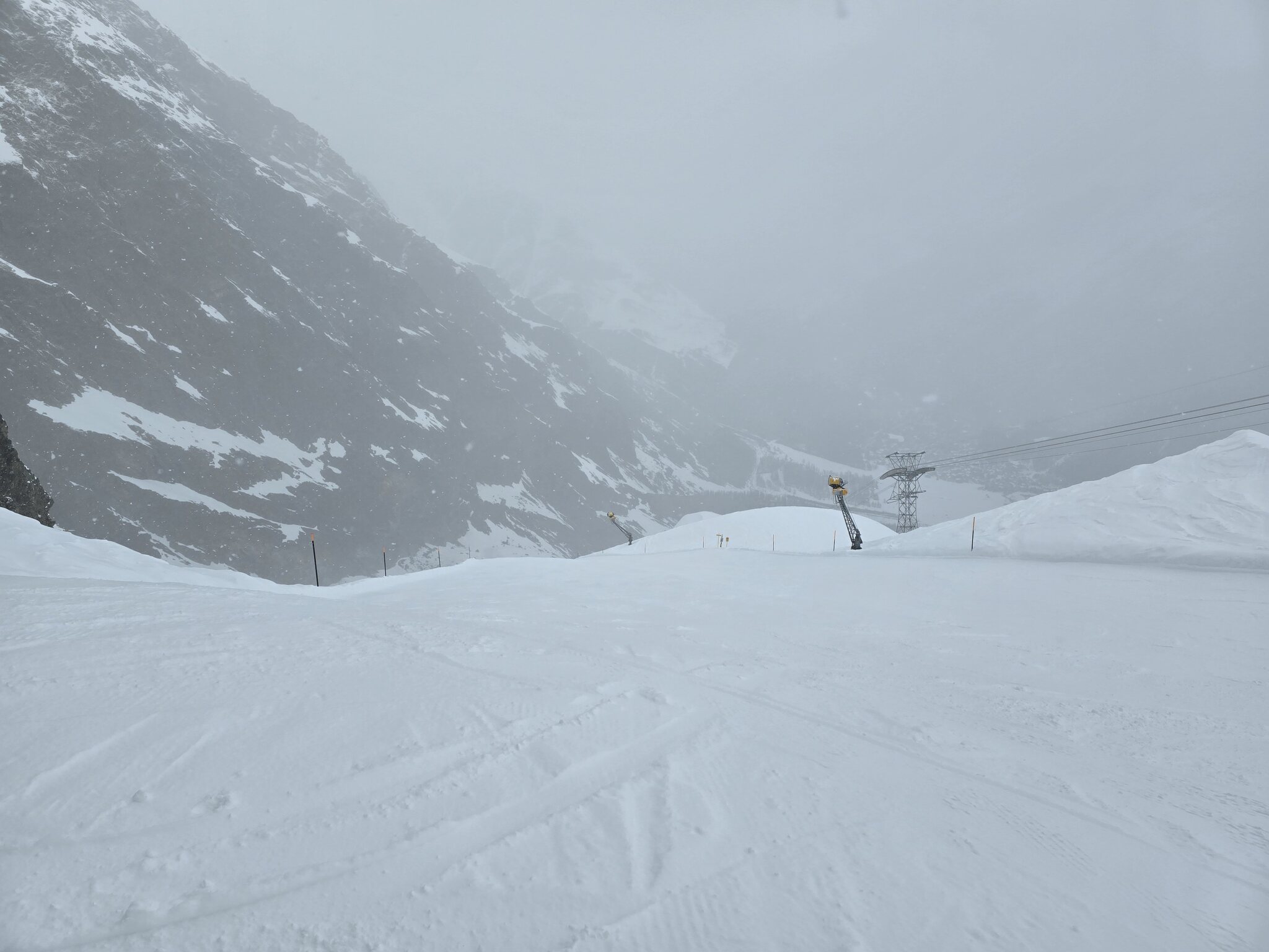 Eigentlich sollte ja jetzt mit Gletscherschwund auch die Lawinengefahr längs der nach rechts führenden ehemaligen blauen Piste besser sein.
