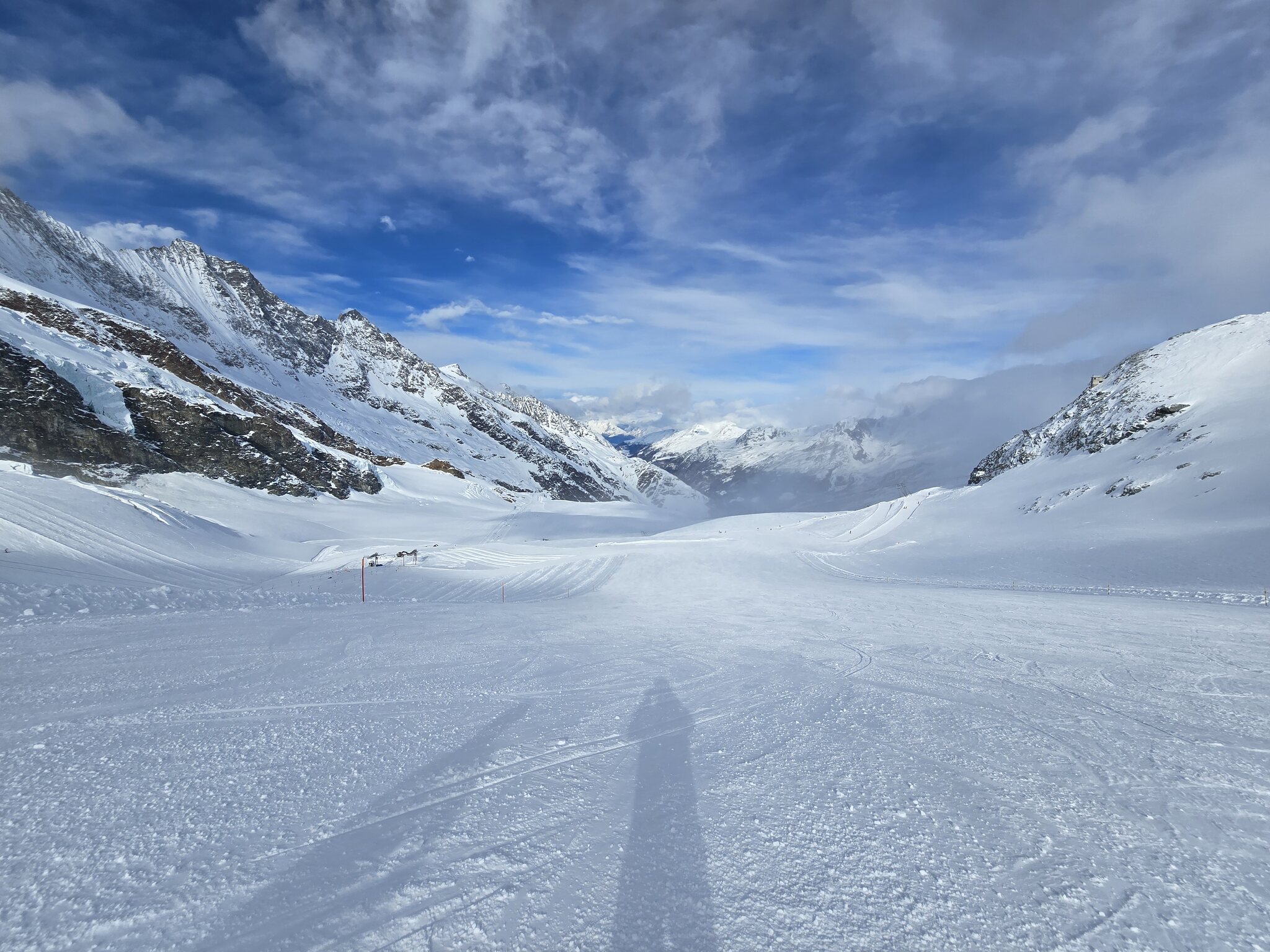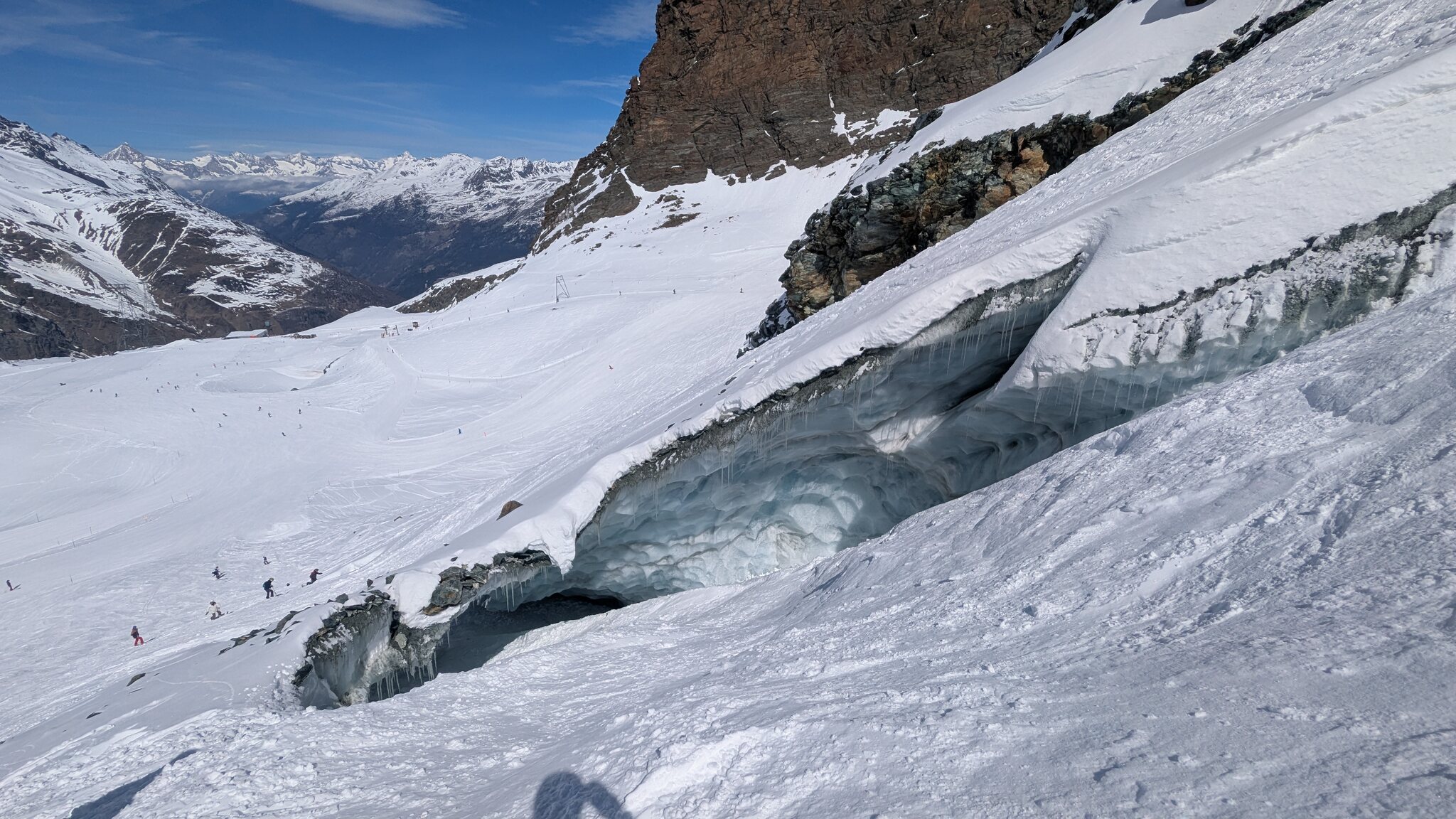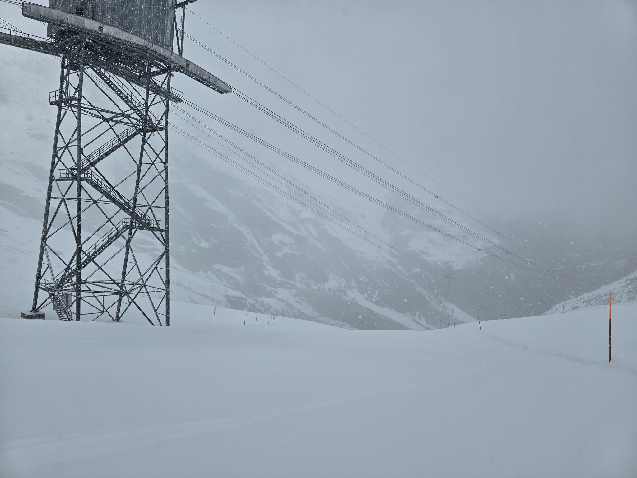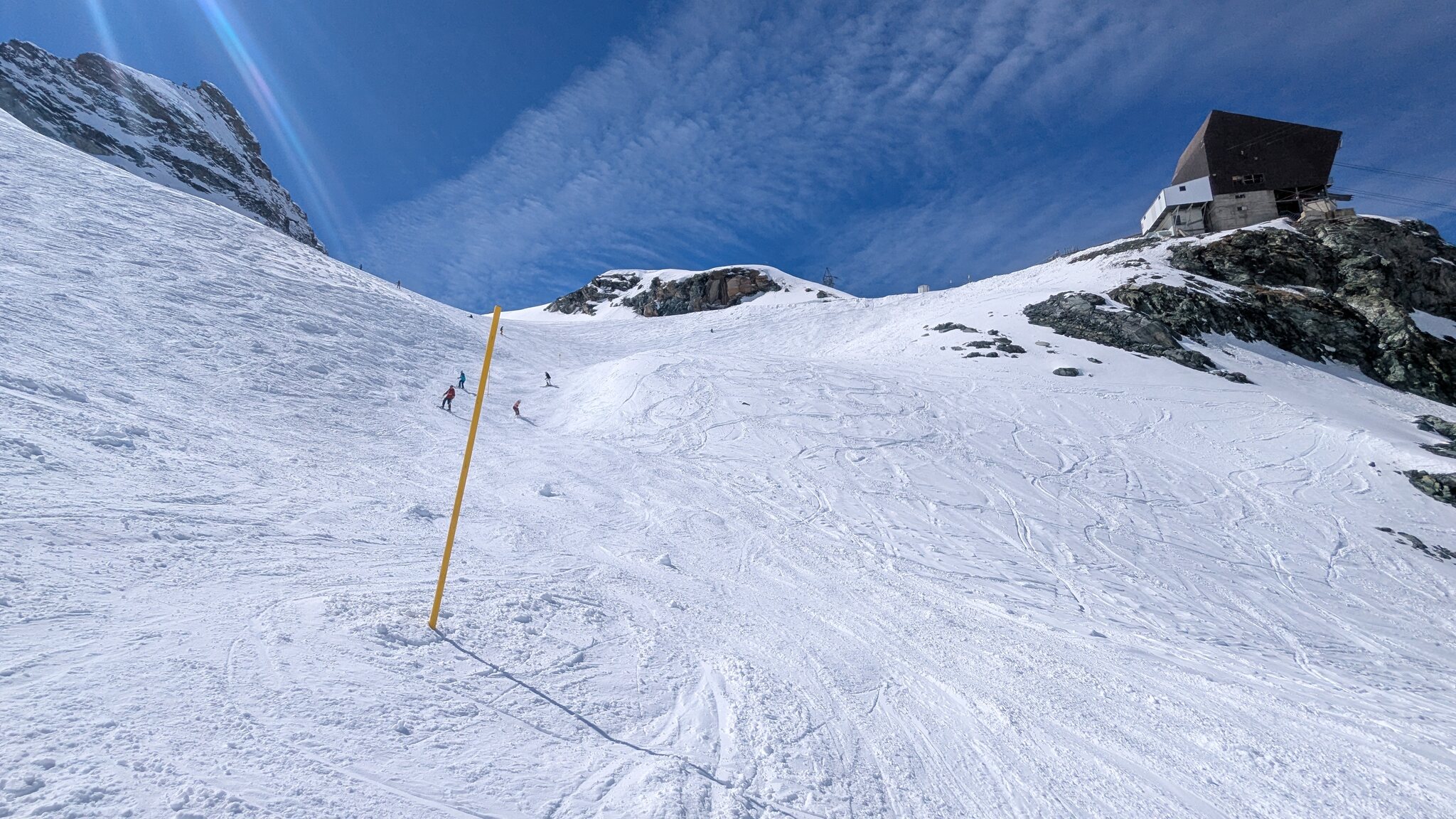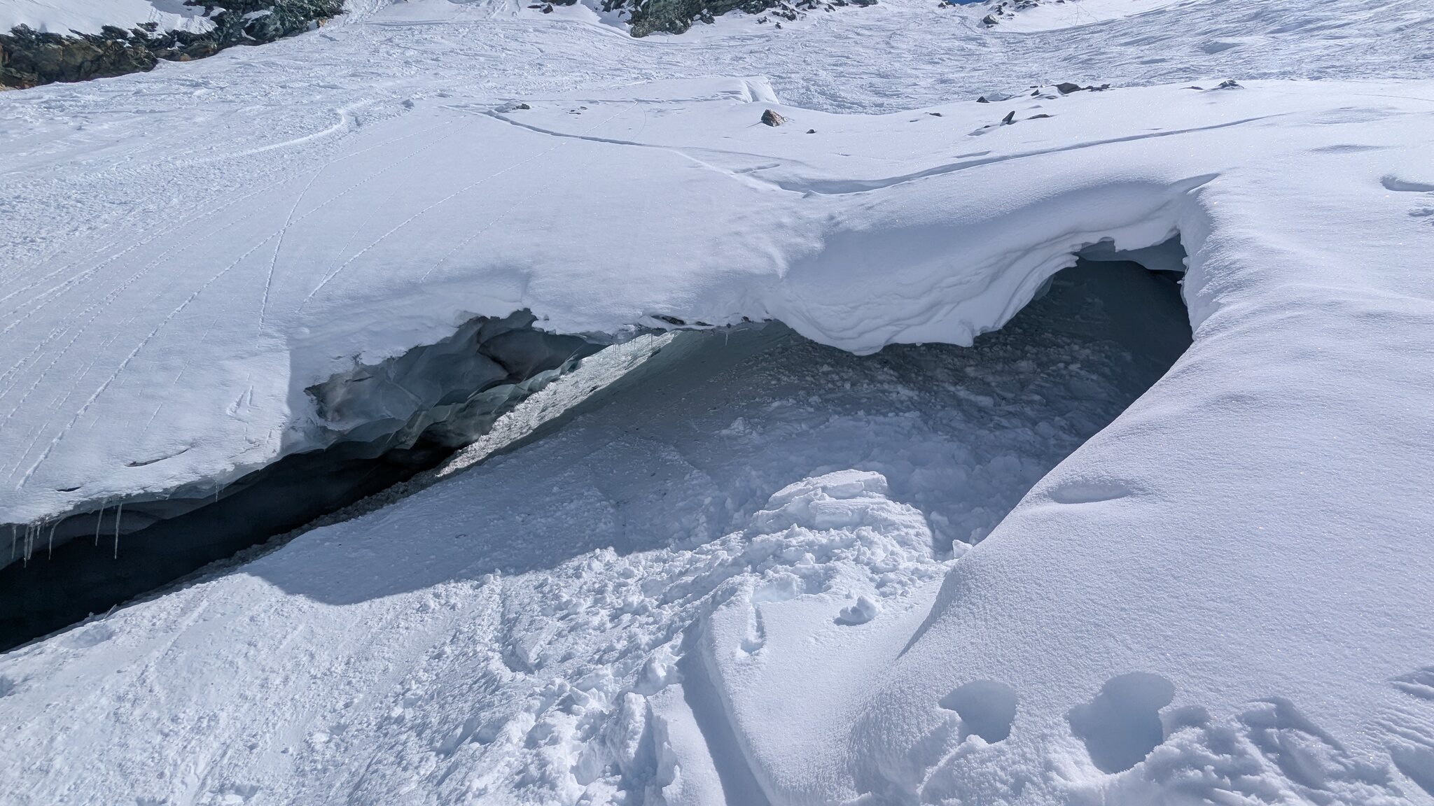 Eigentlich sollte ja jetzt mit Gletscherschwund auch die Lawinengefahr längs der nach rechts führenden ehemaligen blauen Piste besser sein.