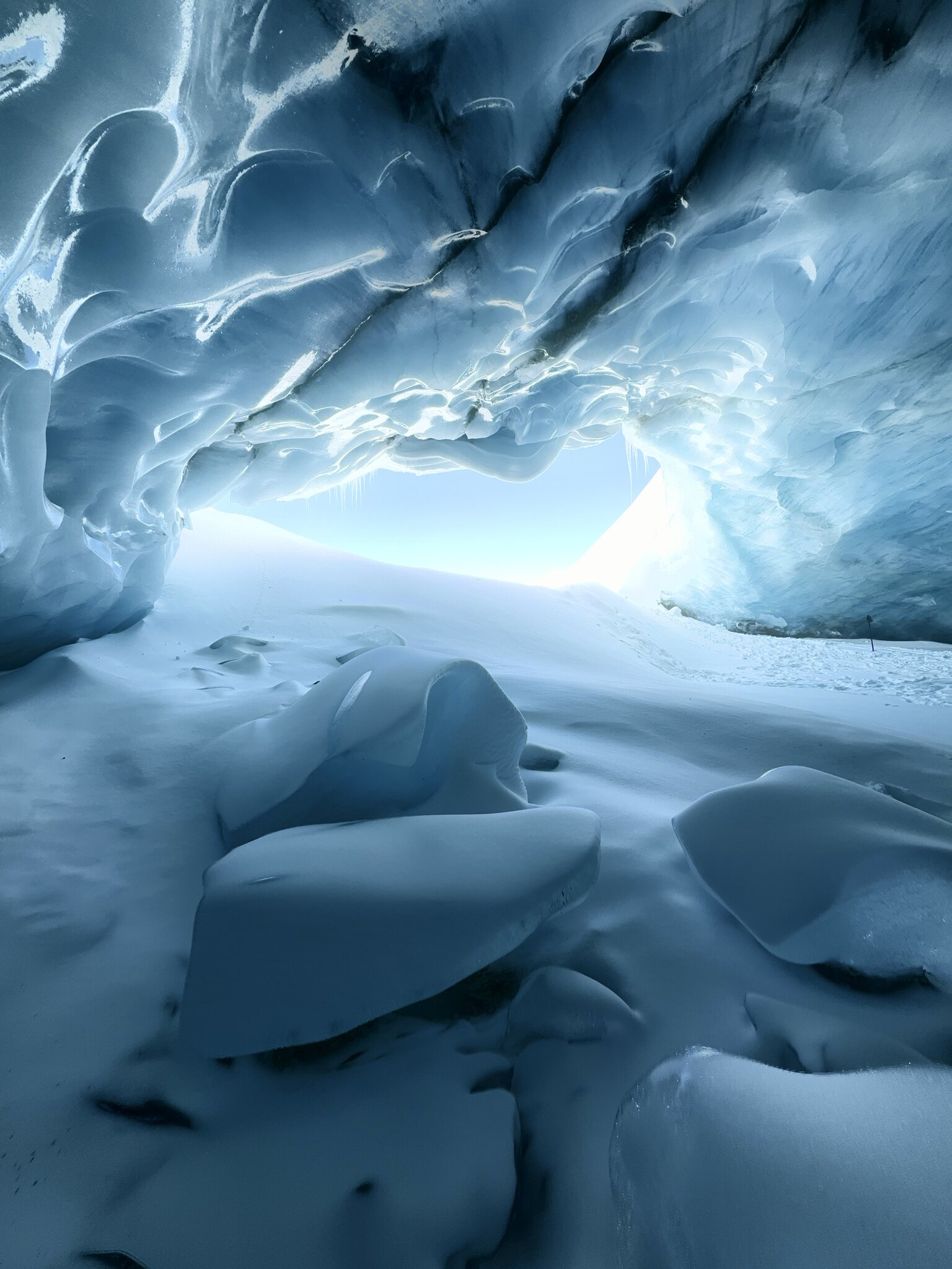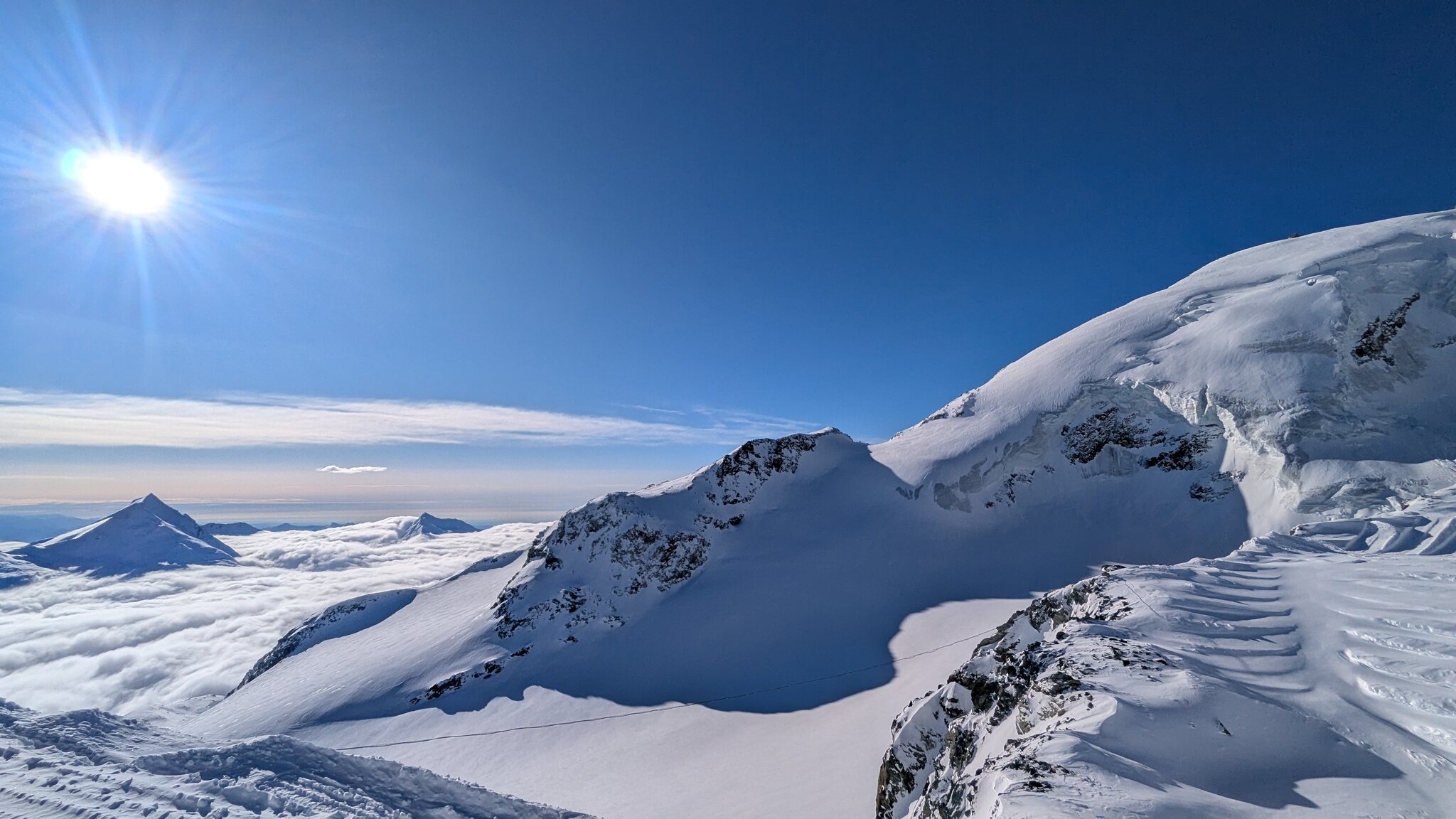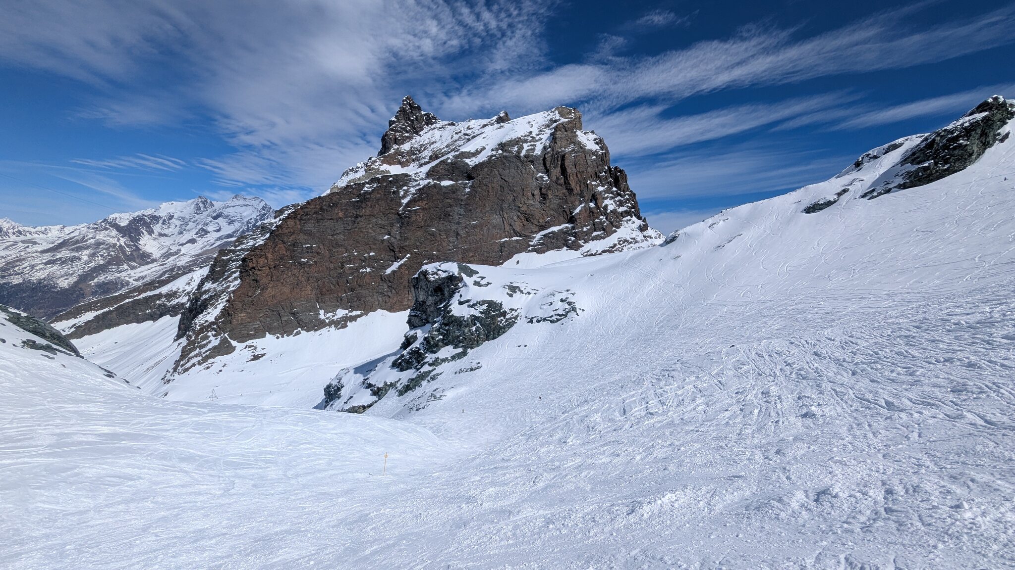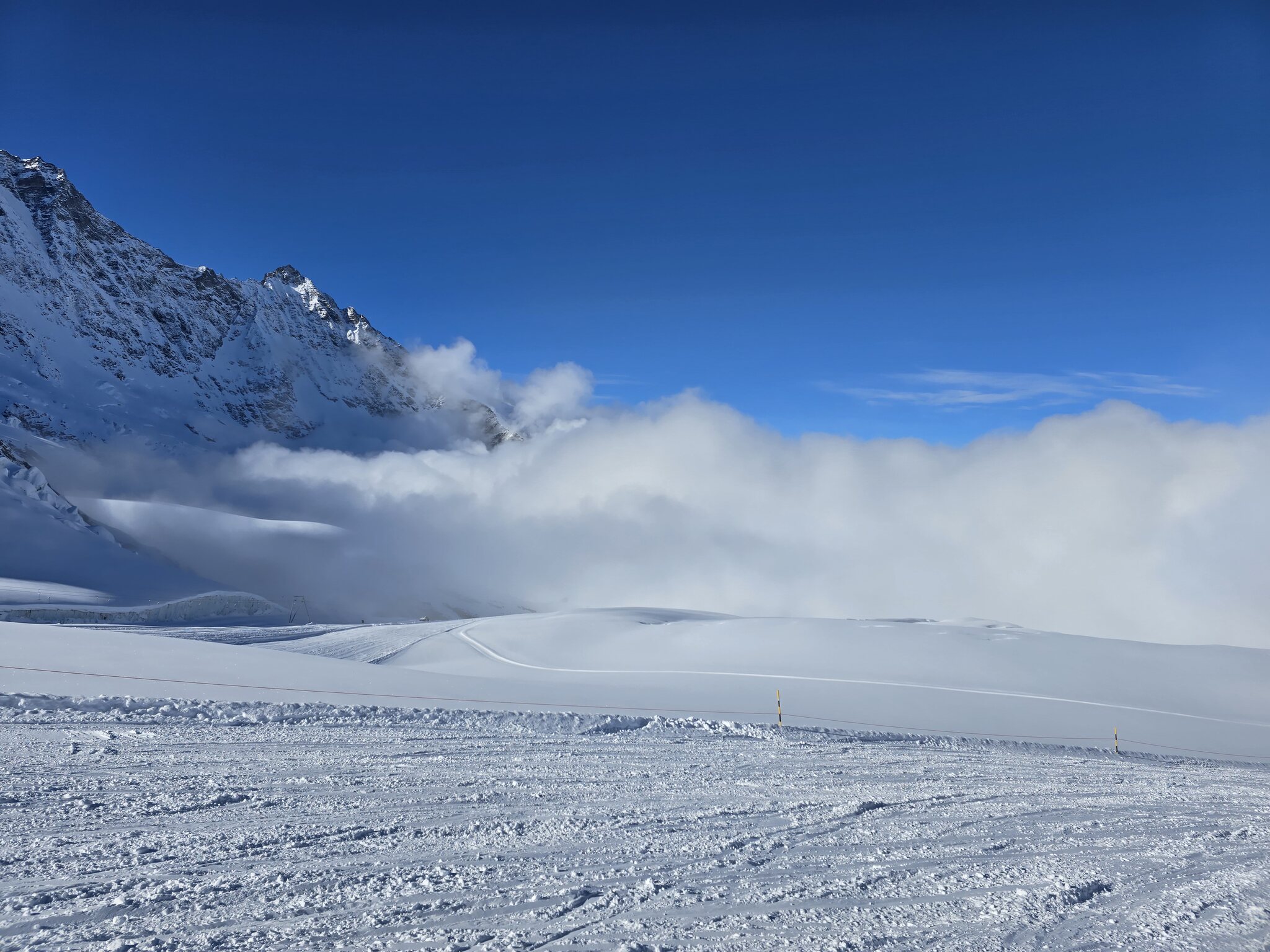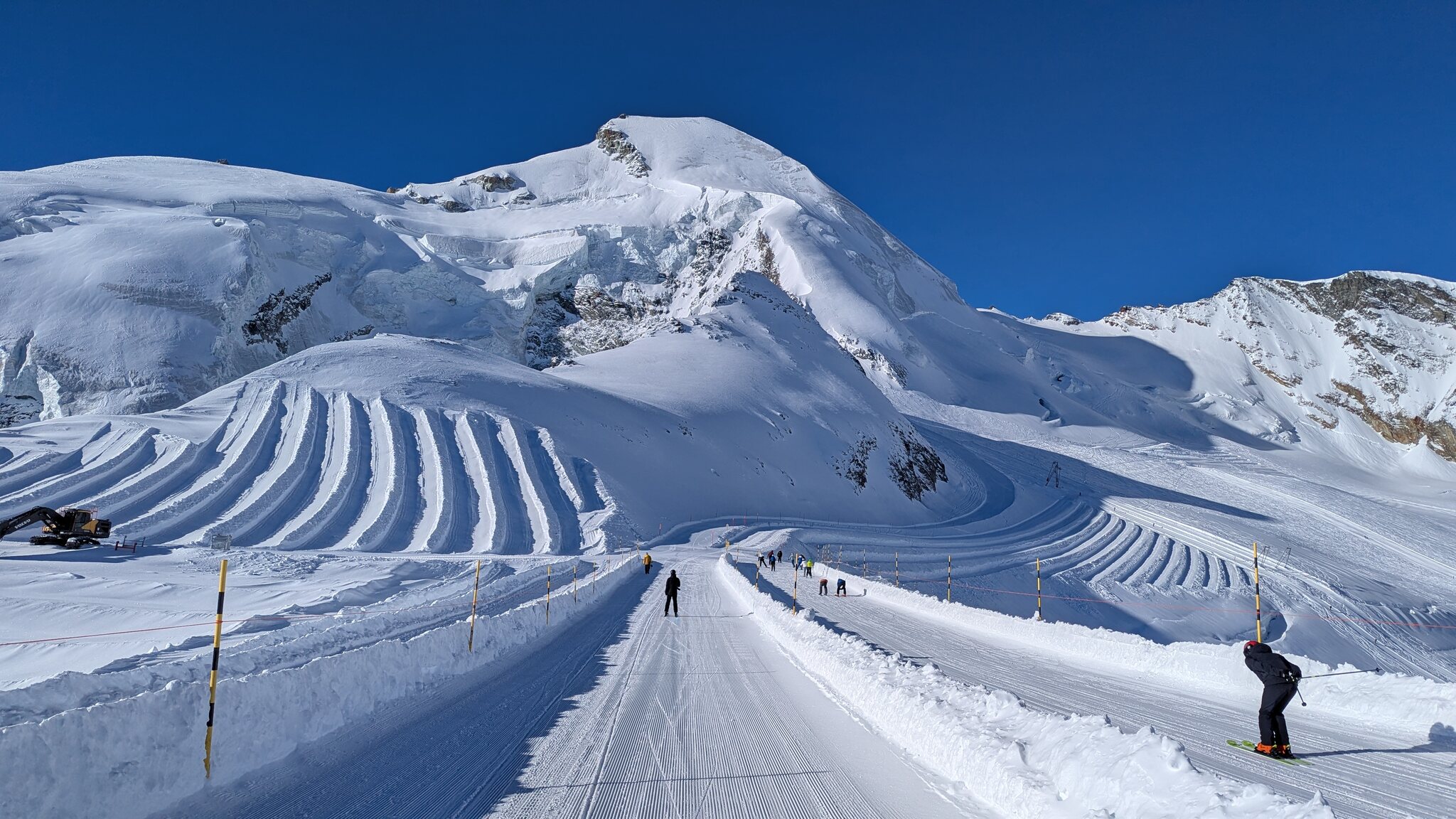 Eigentlich sollte ja jetzt mit Gletscherschwund auch die Lawinengefahr längs der nach rechts führenden ehemaligen blauen Piste besser sein.