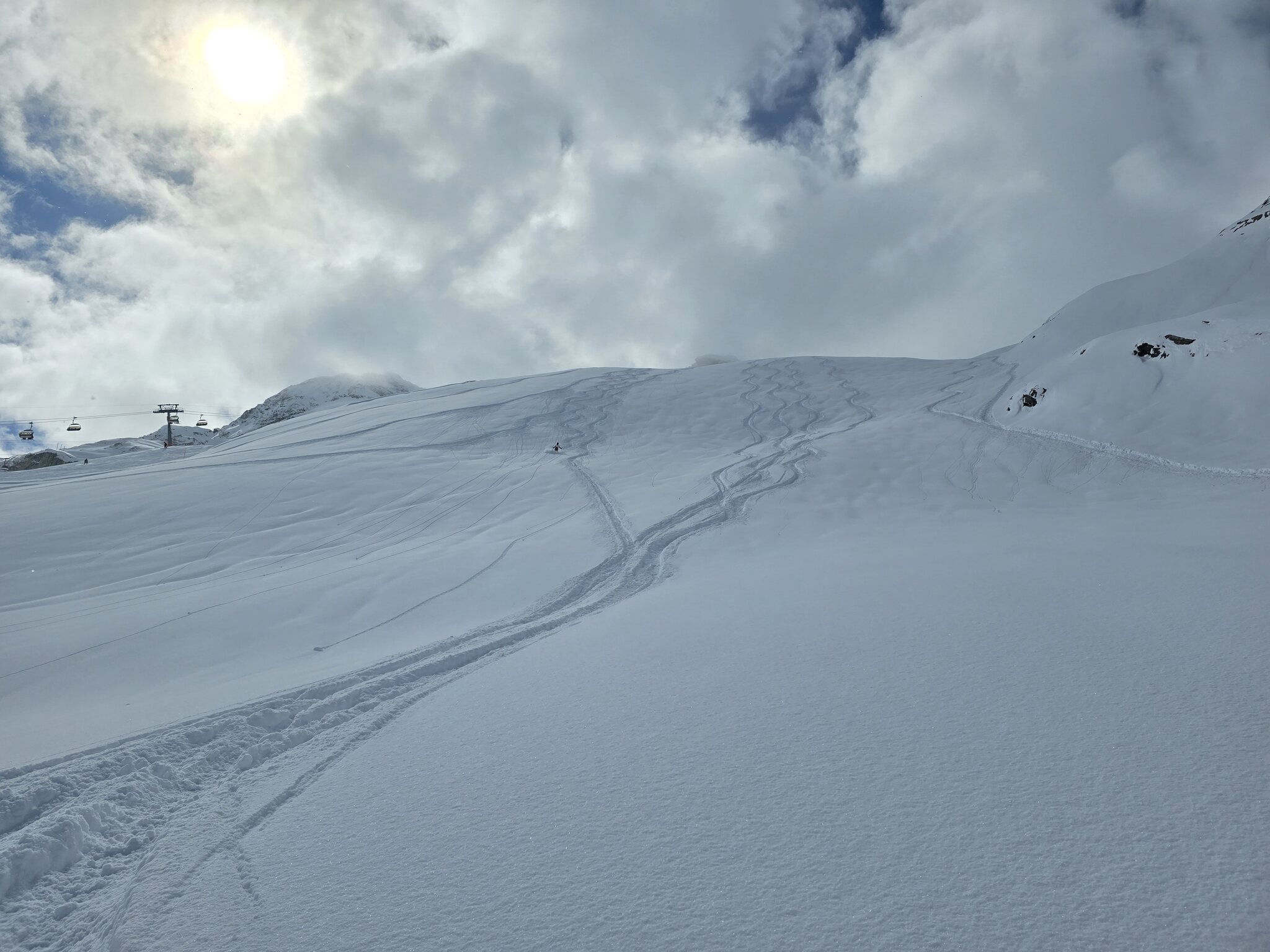 Nach dem Mittag sind wir hoch auf den Gletscher, wo das Wetter dann auch gut war. Die Piste ist aber etwas knollig, weshalb wir nach 4 Fahrten wieder nach unten sind und den Tag am Plattjen ausklingen lassen haben. Mittlerweile ist es im Skigebiet fast wolkenfrei, leider müssen wir uns nun aber auf den Weg nach Hause machen. Der Wind hat am Nachmittag zugelegt, noch halten aber alle Lifte durch
