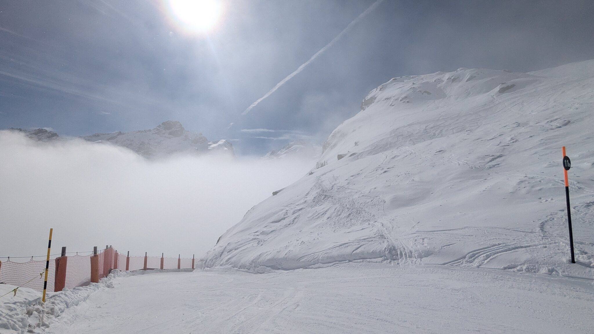 Piste am Längfluh, relativ leer aber nicht mehr so griffig.