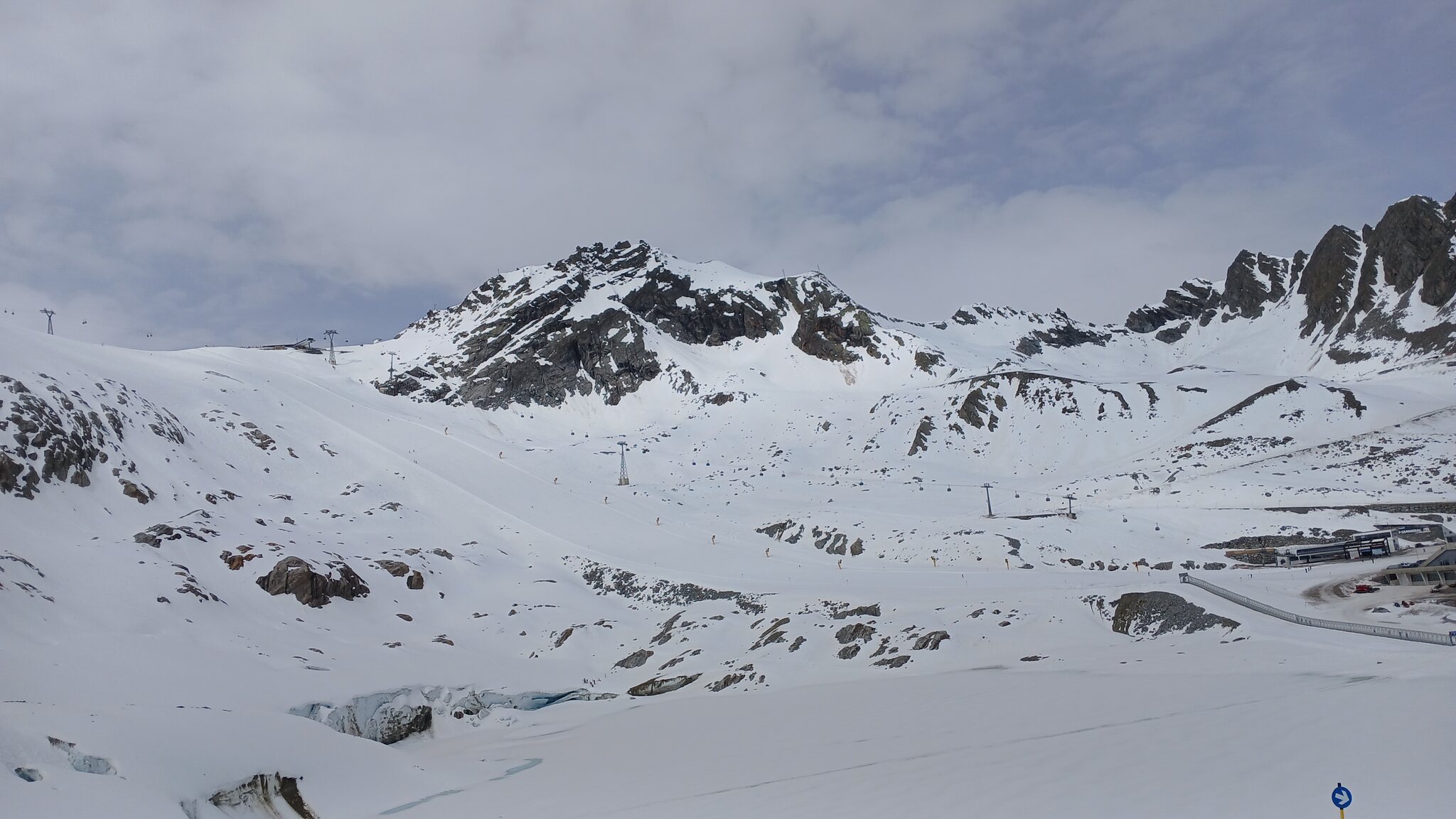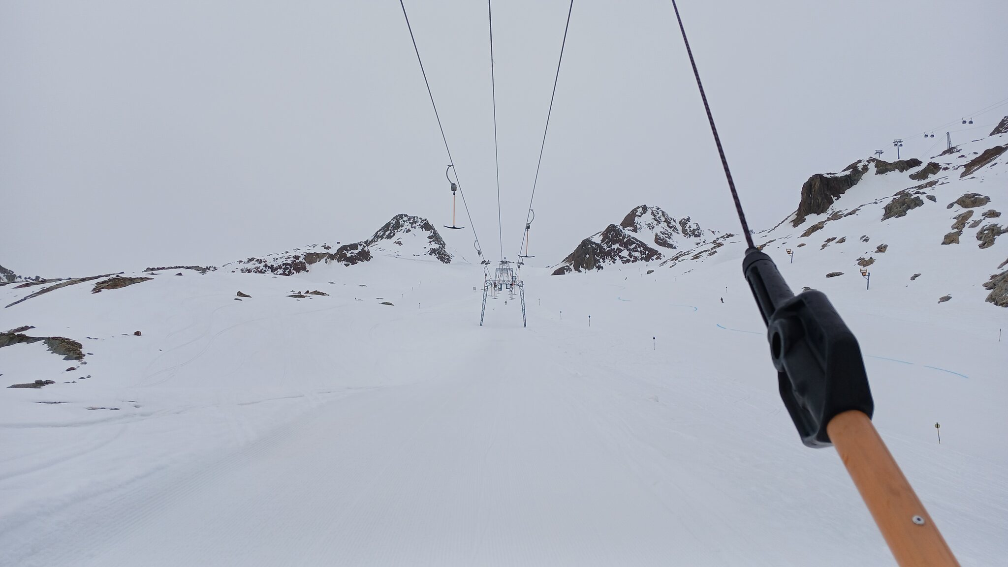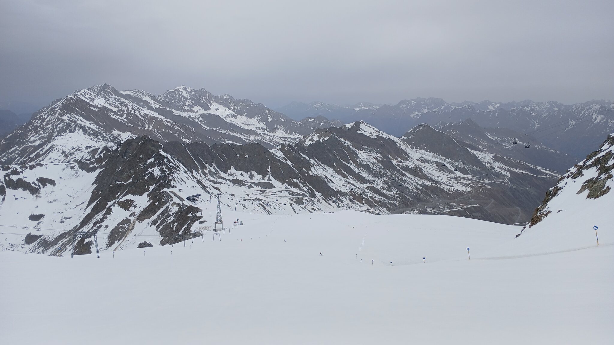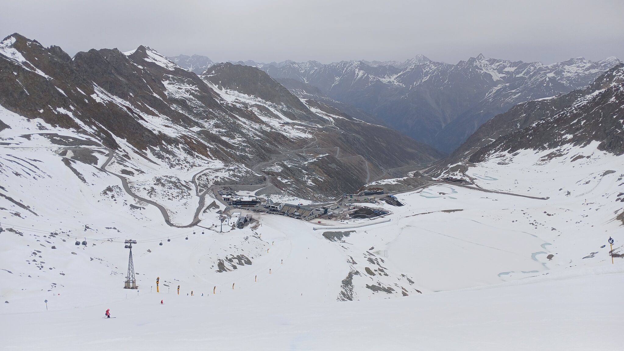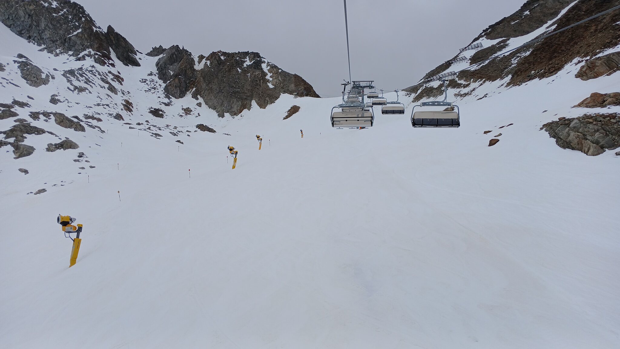 Sölden öffnet für ein Gletschergebiet ja immer recht spät. Da die "Pistenparkplätze" am Rettenbachferner abgesperrt waren, fuhr ich zum Tiefenbachferner. Hier öffnete die Seiterkarbahn "schon" um 08:50 Uhr