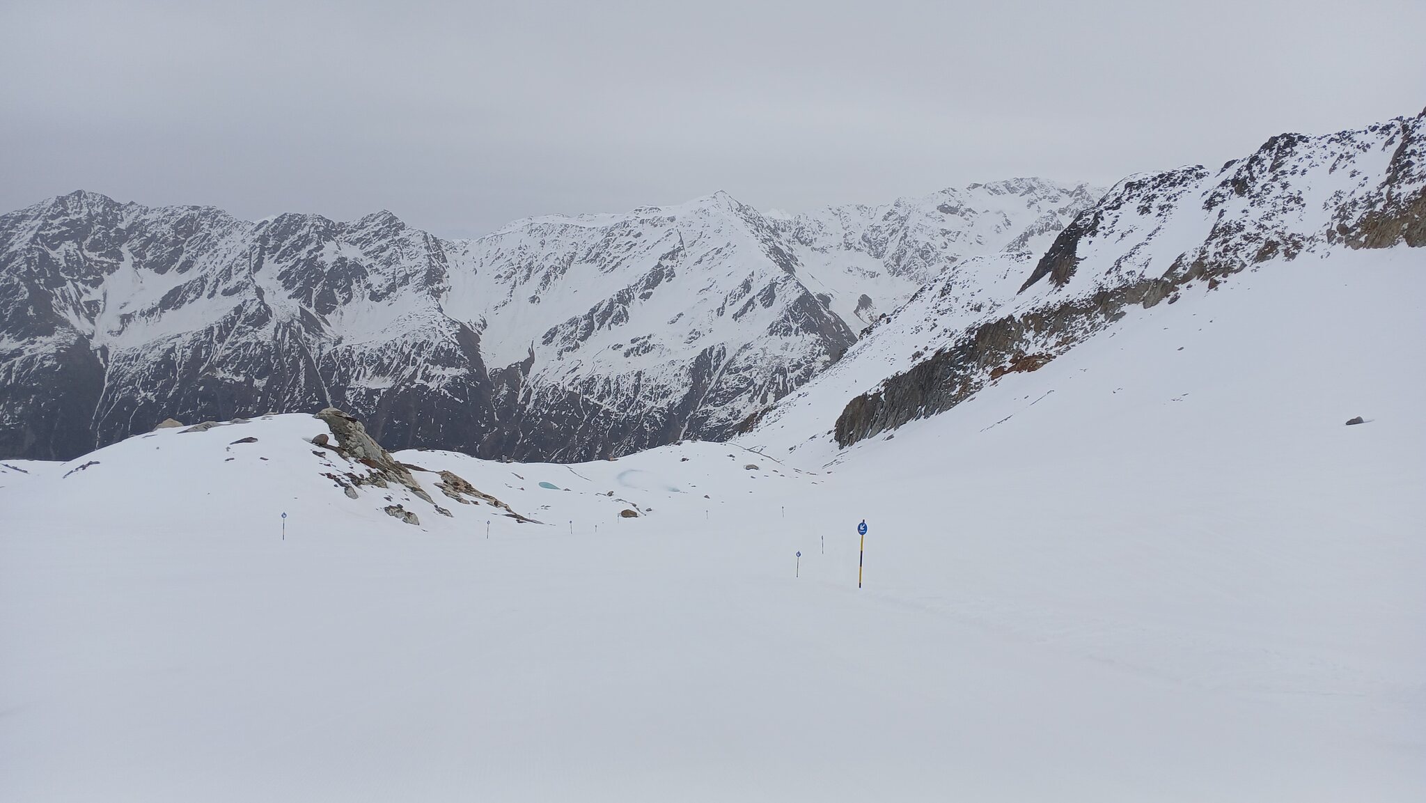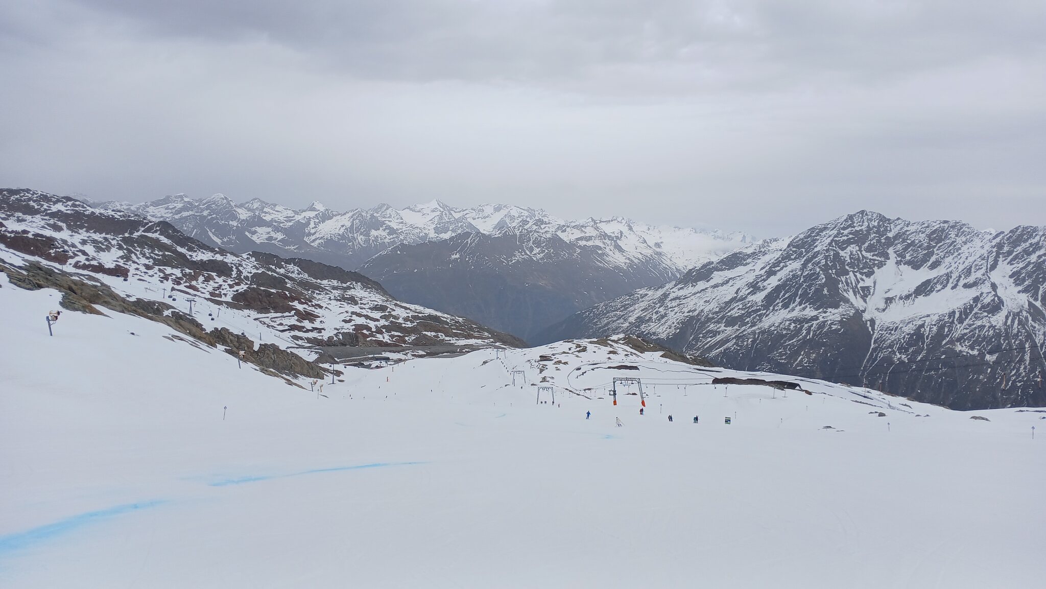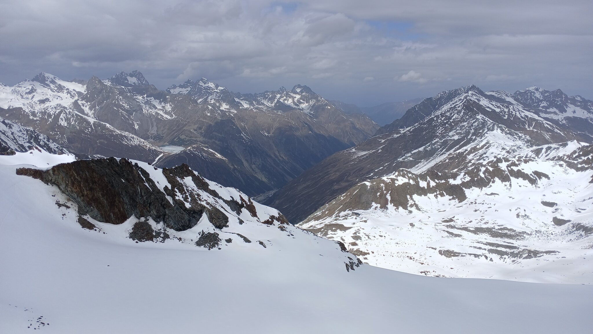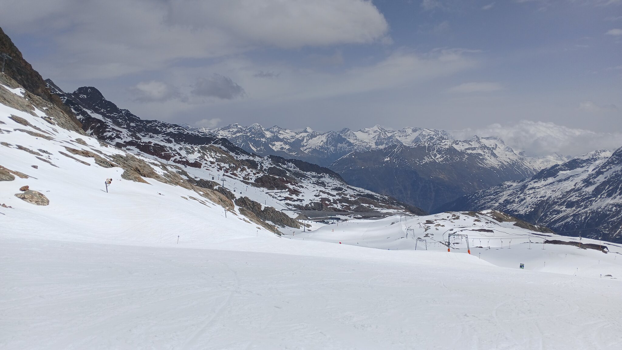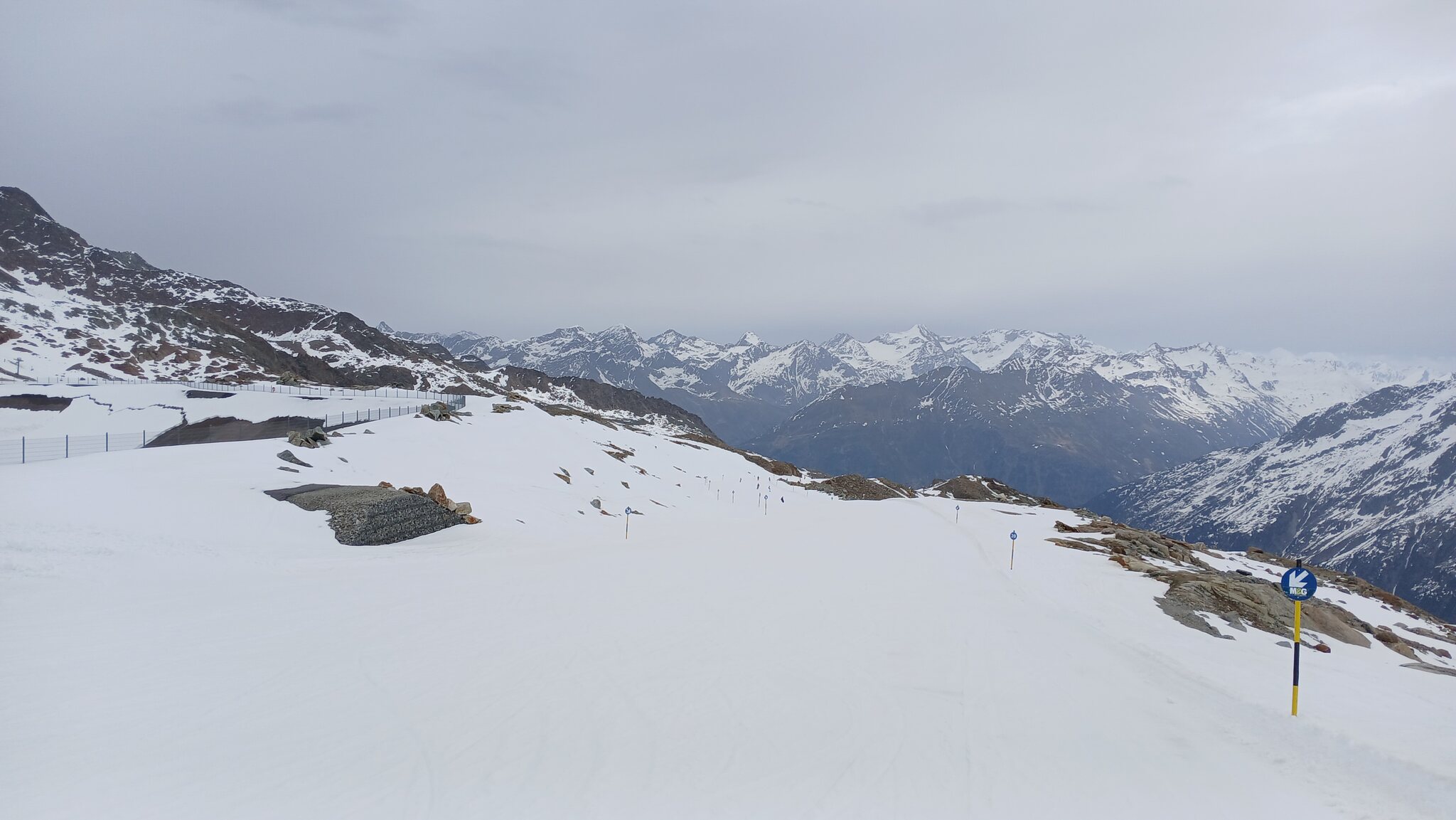 Ausblick von der Schneidbahn. In Richtung Osten hingen dichte Wolken an den Gipfeln. Glücklicherweise war dies in Sölden nicht der Fall