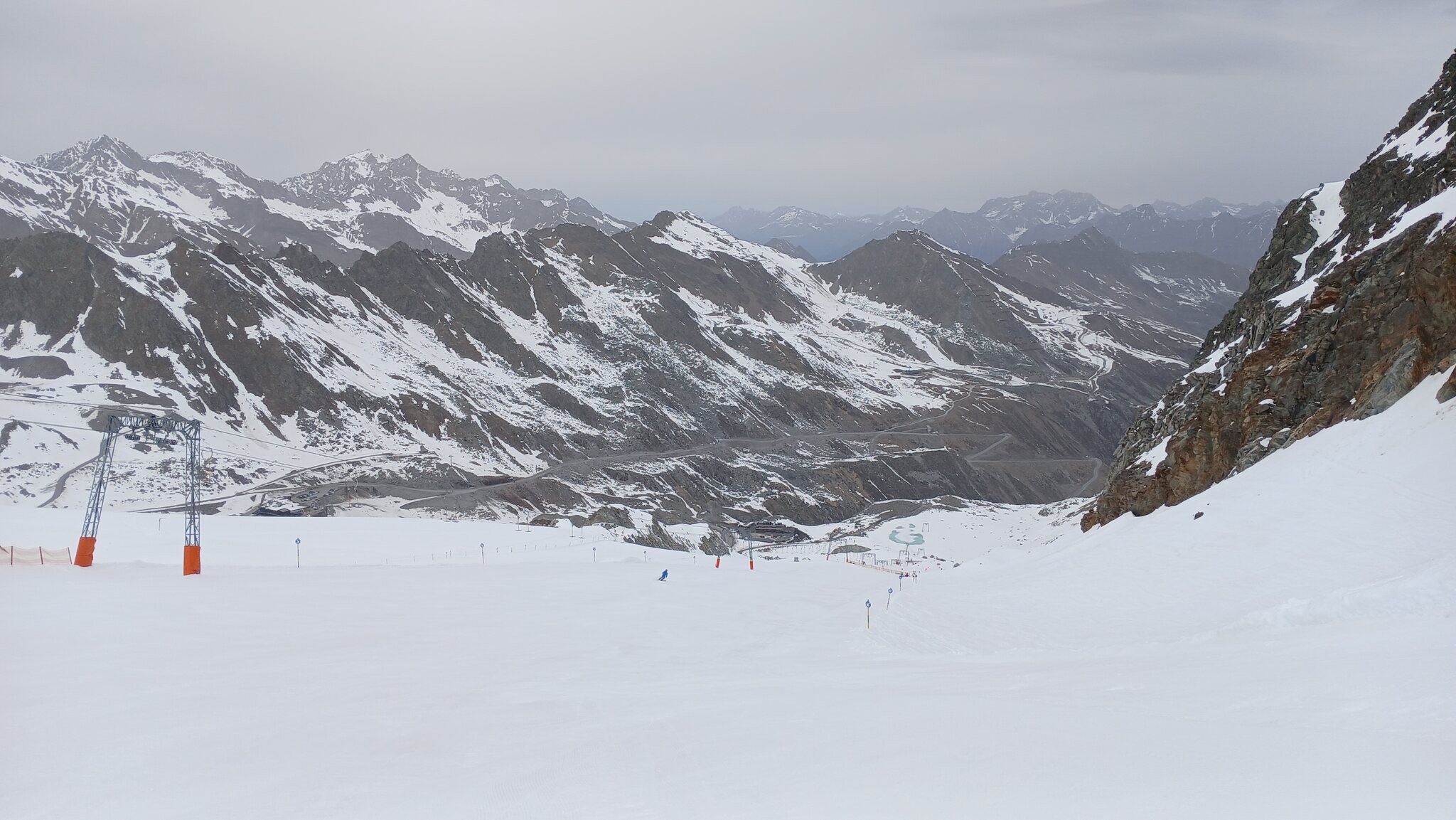 Im SL Seiterjöchl. Der obere Teil der Piste hat sich im Vergleich zu meinem letzten Besuch massiv entschärft. War hier der Gletscherrückgang hilfreich oder wurde maschinell nachgeholfen?