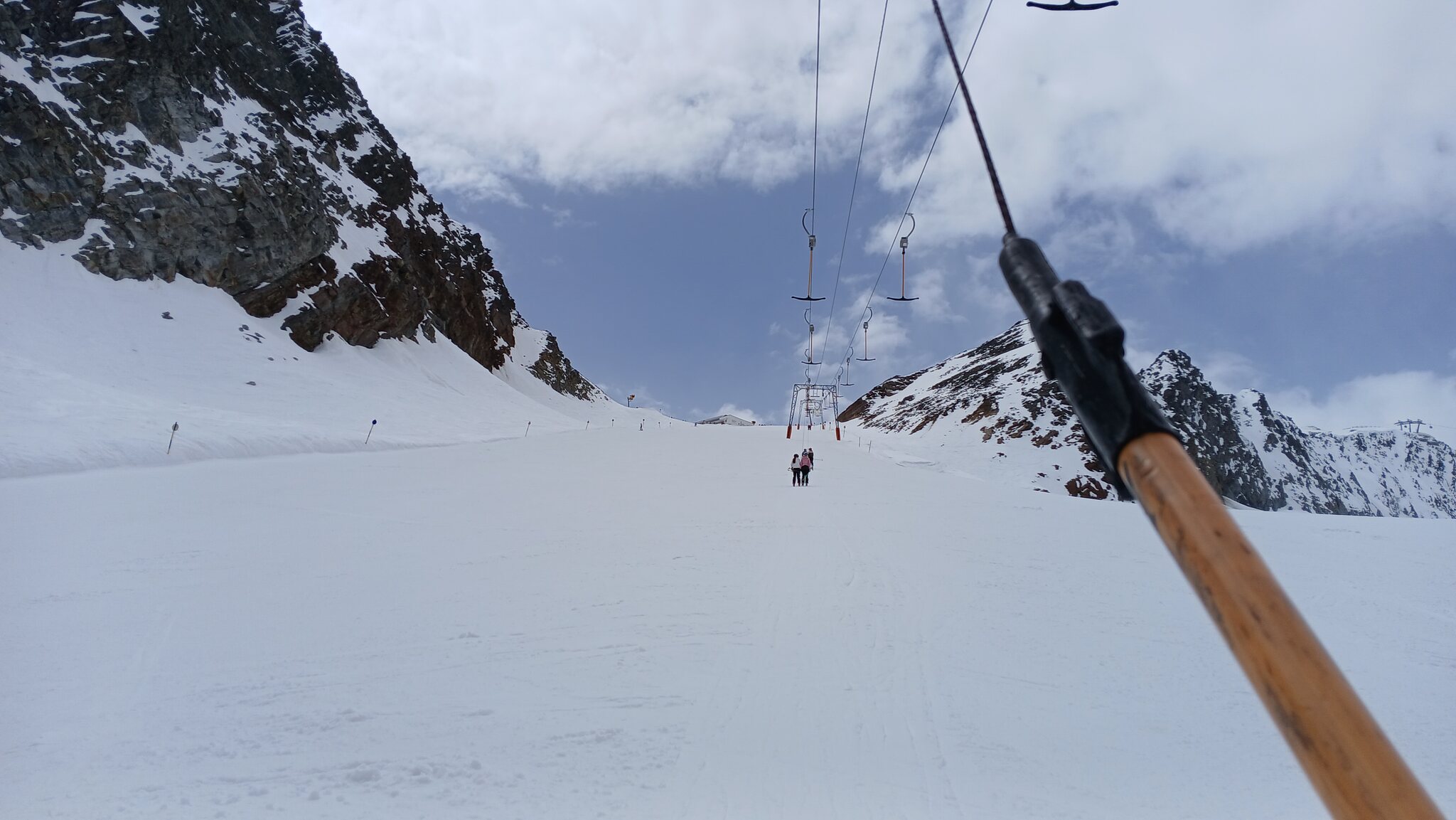 Die Seiterkarpiste ist oben noch breit, unten ist aber nur noch der schmale und "steile" Ziehweg geöffnet, was unangenehm war. Hier kamen auch ein paar Steine durch
